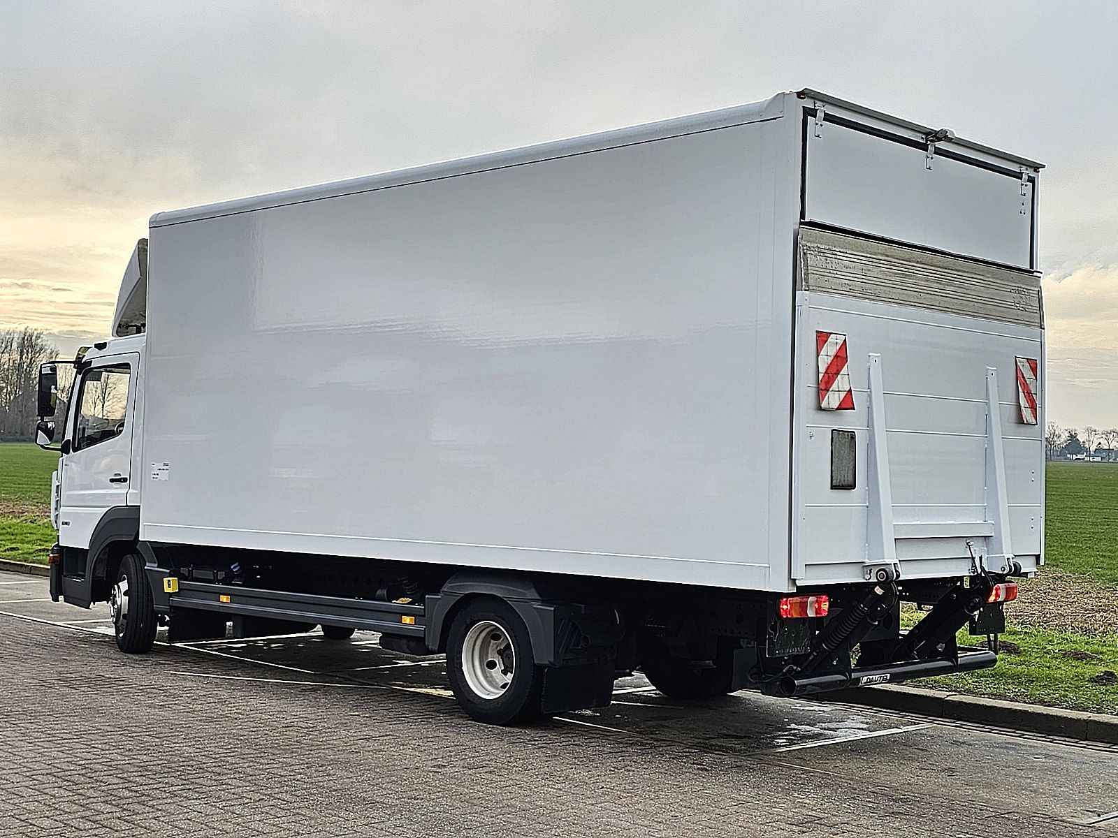 Aantal Assen: 2, Configuratie: 4x2, Eigen gewicht: 5070 kg, Totaalgewicht: 7490 kg, Diesel inhoud totaal: 100 liter, Schotel type: Fixed, Aantal sperren: 1, Lichtmetalen velgen, Vering type: luchtvering, Soort cabine: Korte cabine, Cruise control, Tachograaf, Digitale tachograaf, Airconditioning, Aantal airbags: 1, Elektrische ramen, Elektrische spiegels, Radio/cassette, Kleur: Wit, Verwarmde spiegels, Achteruitrij camera, Soort lampen: Halogeen, Laneassist, Stoelverwarming, Bluetooth, Motorvermogen: 130 Kw (174 Hp), Brandstof: diesel, Euro: 6, Soort versnellingsbak: Telligent, Merk versnellingsbak: Mercedes Benz, Versnellingen: 6, Stuurbekrachtiging, ABS (Anti Blokkeer Systeem), ASR (Anti Slip Regeling), Start accu, Bouwjaar opbouw: 2021, Centrale vergrendeling, Stoelopstelling: 1+1, Stoelbekleding: stof, Stoel verstelling: Handmatig, Laadklep, Soort laadklep: achtersluit klep, Capaciteit laadklep: 1000 kg, Merk laadklep: Dautel DFL 1000, Materiaal laadklep: aluminium, Plateau grootte: 180 x 252