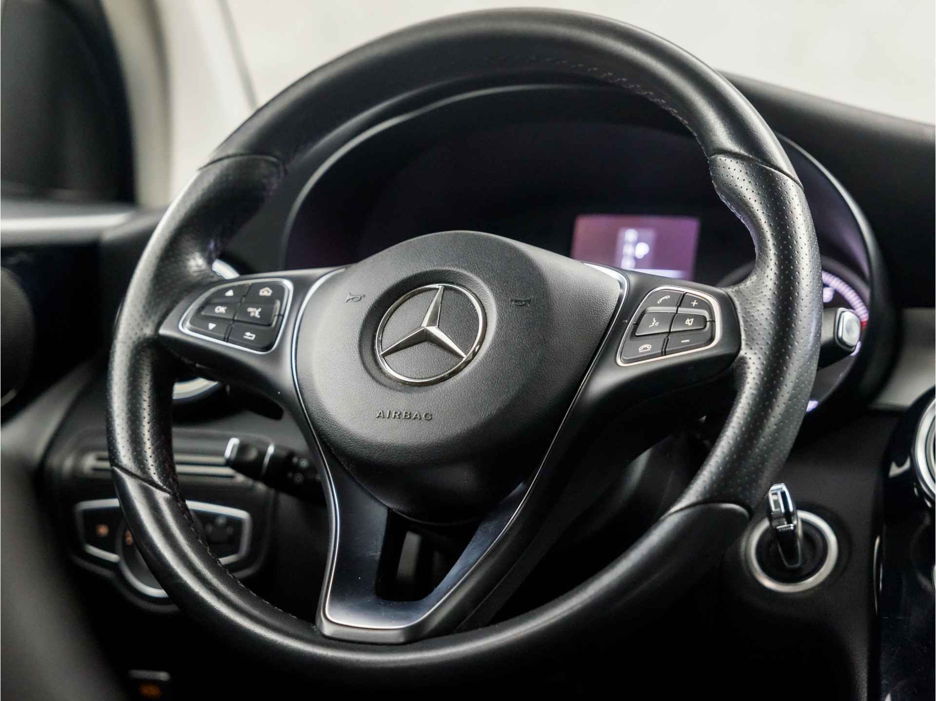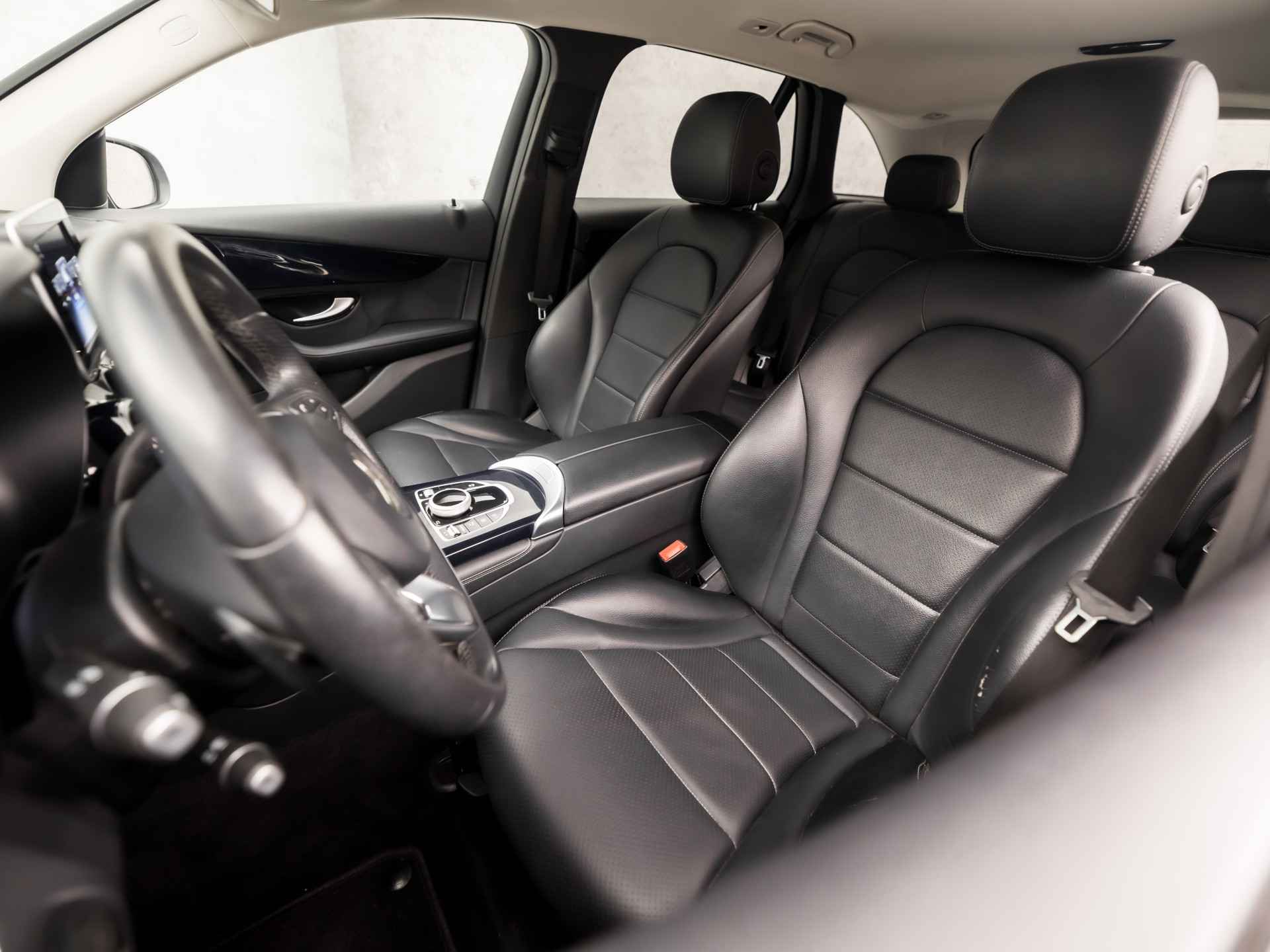 De auto is voorzien van een trekhaak en is een uitstekende caravantrekker. Wat is de onderhoudsstatus van deze auto? U checkt het snel, simpel en overal via uw smartphone. Een goede veiligheidsvoorziening is de spraakbediening en stuurbediening voor belangrijke functies. De auto is natuurlijk voorzien van een navigatiesysteem met harde schijf en het audio-installatiesysteem biedt glasheldere geluidskwaliteit. Aan boord van deze Mercedes-Benz GLC-klasse is een achteropkomend verkeer waarschuwing voor extra veiligheid. Natuurlijk is er ook automatische airconditioning aanwezig. Natuurlijk behoren sportstuur met schakelpaddels, parkeersensoren voor en achter, regensensor, cruise control, automatisch dimmende buitenspiegels en isofix-aansluiting ook tot de uitrusting van deze complete auto.
