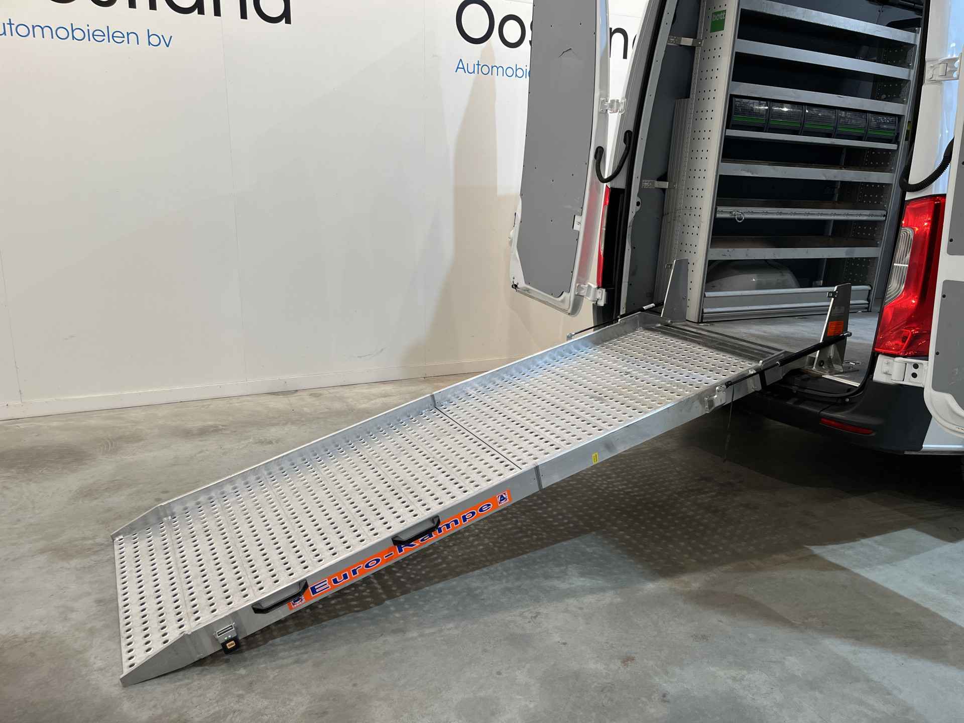Deze servicebus is voorzien van een complete werkplaatsinrichting met een inrichting van Bott, oprijplateau, 220v.-omvormer, een compressor en werkbank met bankschroef.