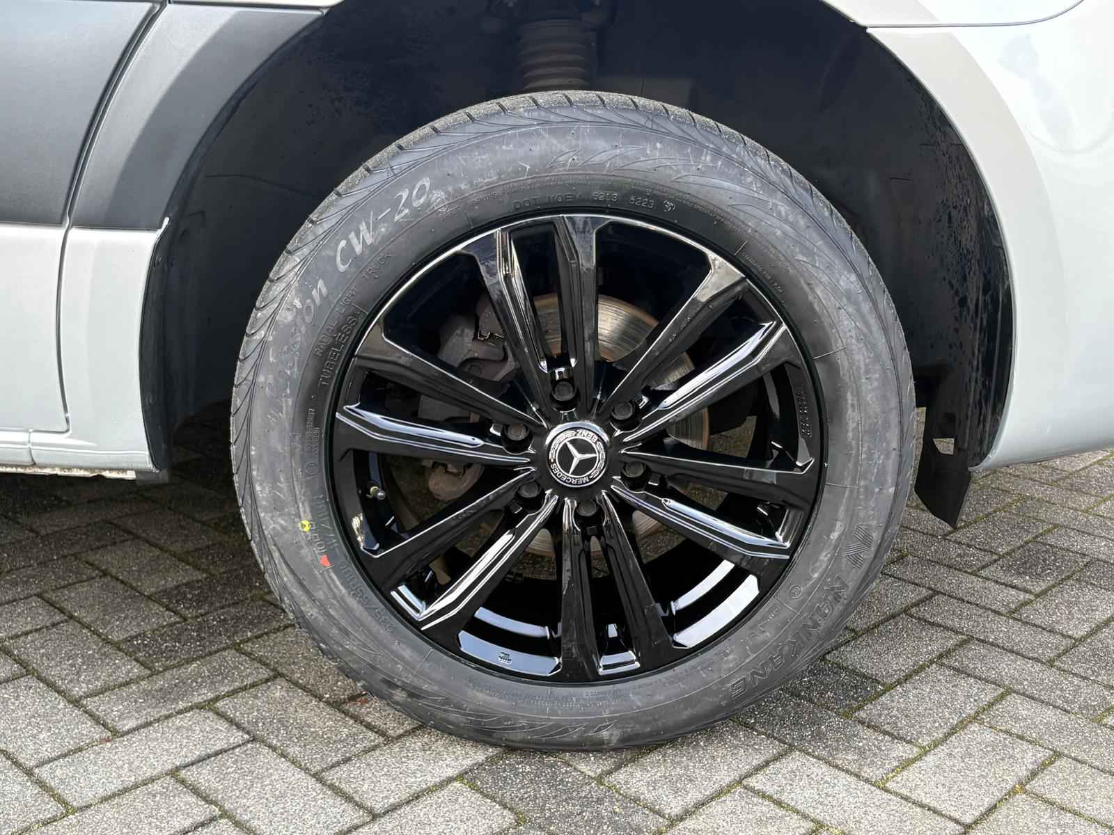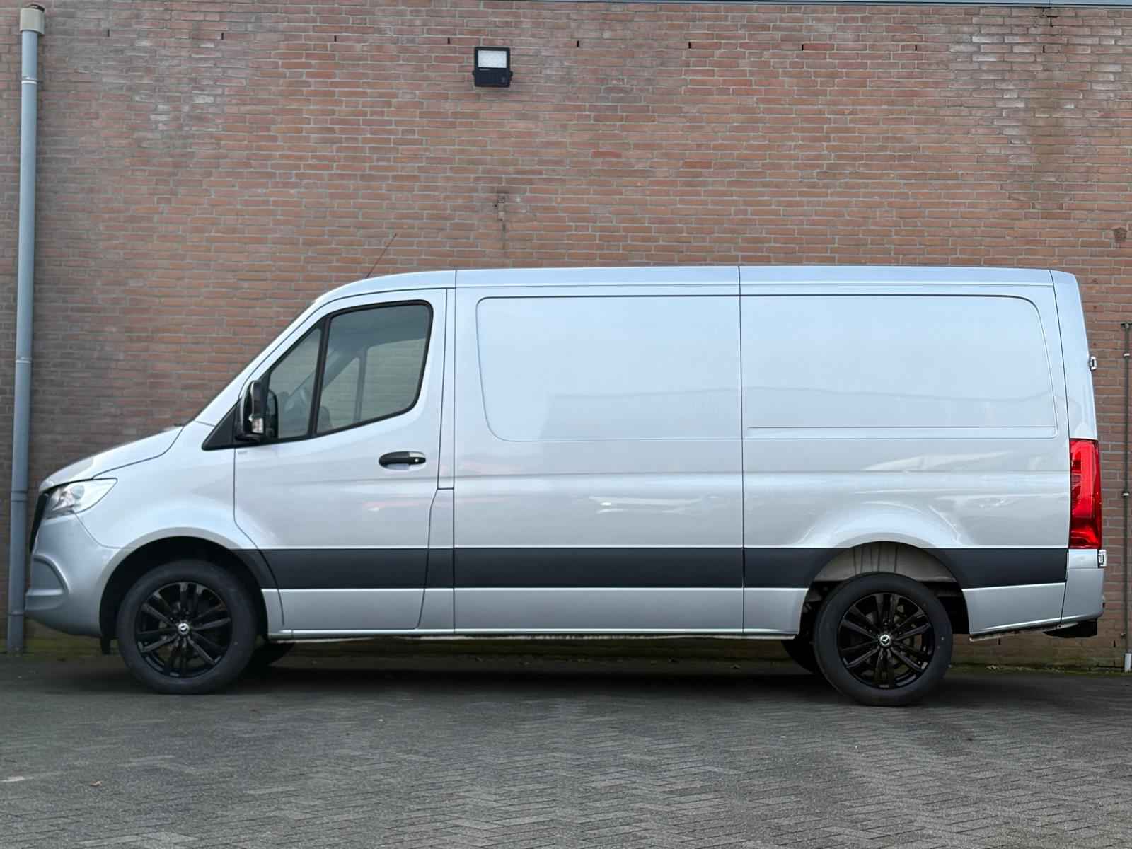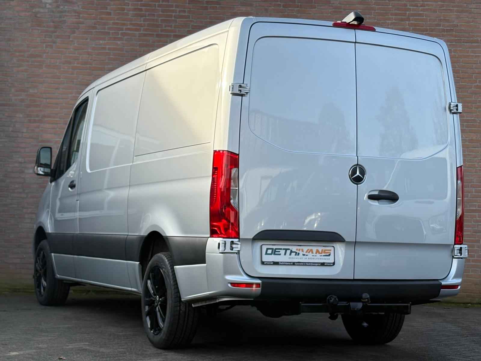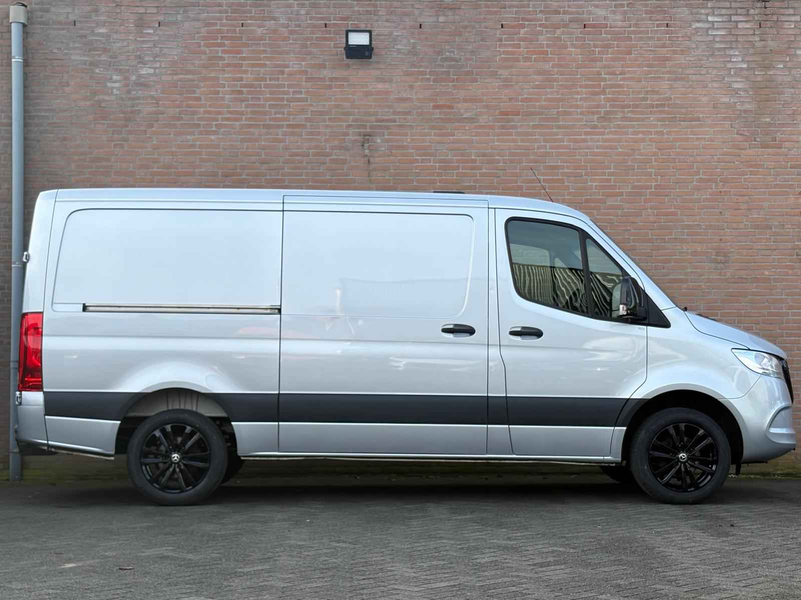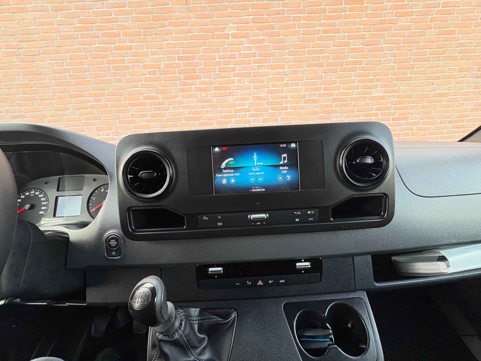Lease v,a, €427,- per maand. Afmetingen laadruimte 326x178x165. 3.500kg trekhaakgewicht mogelijk. Meerprijs 18" licht metalen velgen €1.491,- ex BTW. Af fabriek voorzien van: 977 Lakkleur iridiumzilver MB 9775 BA3 Actief Brake Assist System C6L Multifunctioneel stuurwiel CL1 In hoek en hoogte verstelbaar stuurwiel E1D Digitale radio (DAB) E3M MBUX-multimediasysteem met 7 inch touchscreen E43 Aanhangwagenstekkerdoos 13-polig F68 Buitenspiegel verwarmbaar en elektrisch verstelbaar FF5 Opbergvak boven voorruit FR8 Achteruitrijcamera H1B Bediening tachograaf voor, onder interieurhemel H21 Warmtewerend glas rondom met bandfilter op voorruit HH9 Semi-automatische airconditioning Tempmatic HI1 Temperatuurzone 1 (koud/comfort) IL6 Metallic - lak IR4 Wielbasis 3665 mm (modelserievormende code) J65 Buitentemperatuurmeter JA8 Zijwindassistent JD6 Intelligente tachograaf EU JG0 Schakelmomentaanduiding JH3 Communicatiemodule (LTE) voor digitale services JI7 Nieuw af te leggen afstand onderhoudsinterval 60000 km LA2 Rijlichtassistent LE1 Adaptief remlicht MJ8 ECO start-/stopsysteem MT2 Emissieklasse Euro 6D-TEMP N1 gr. III/N2 MU3 Motor OM654 DE 20 LA 110 kW (150 pk) Q22 Trekhaak kogelkop vast SA5 Airbag bestuurder SB3 Geveerde bestuurdersstoel T16 Schuifdeur rechts V43 Houten vloer VF7 Stof Maturin zwart W54 Dubbele achterdeur 270 graden
