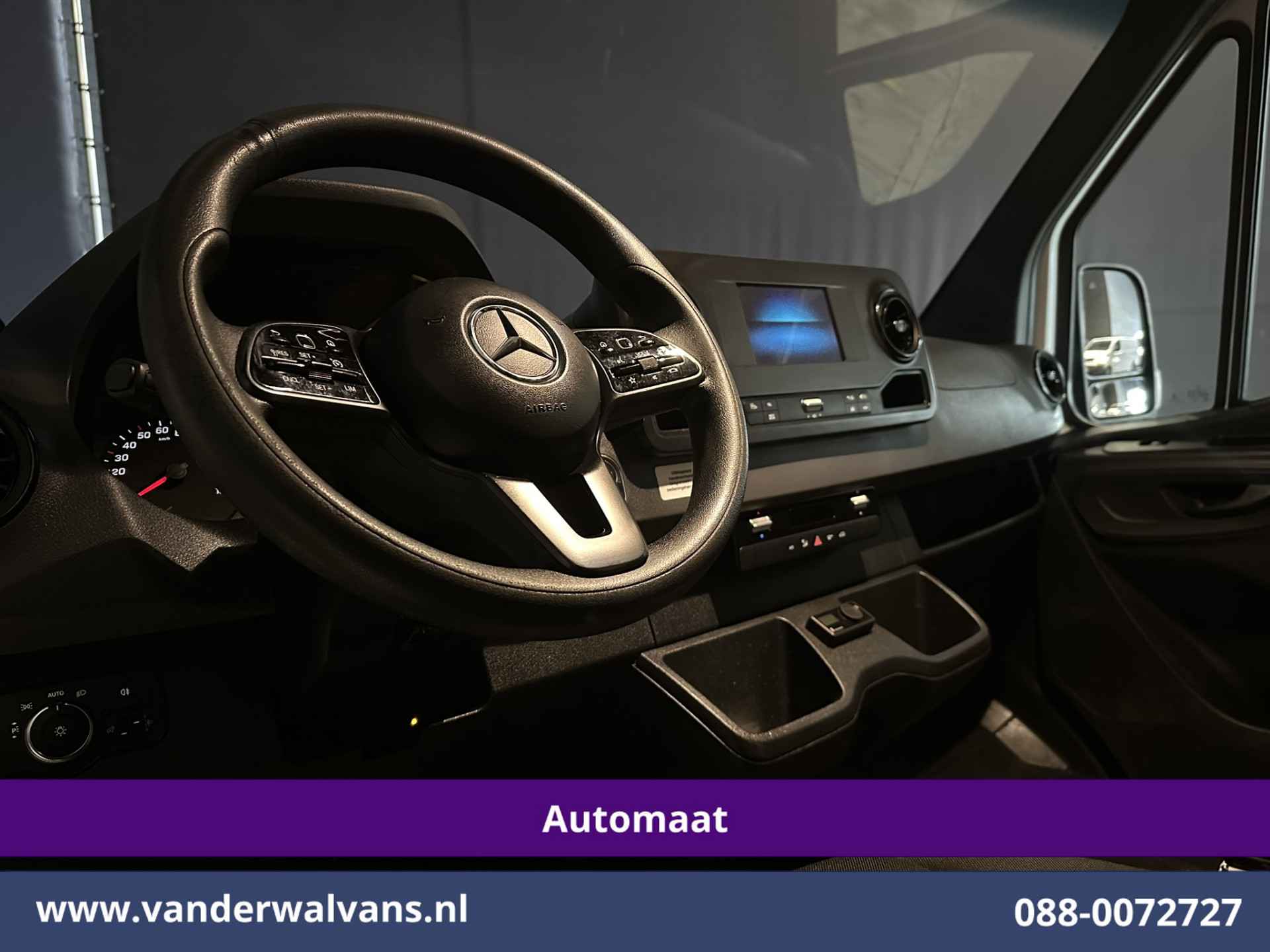 164pk sterke Sprinter Automaat L2H2 Euro6 met airconditioning en 3500kg trekhaak. Dealer onderhouden en voorzien van camera, Apple Carplay, Android Auto, cruisecontrol, parkeersensoren en bluetooth telefoonvoorbereiding.