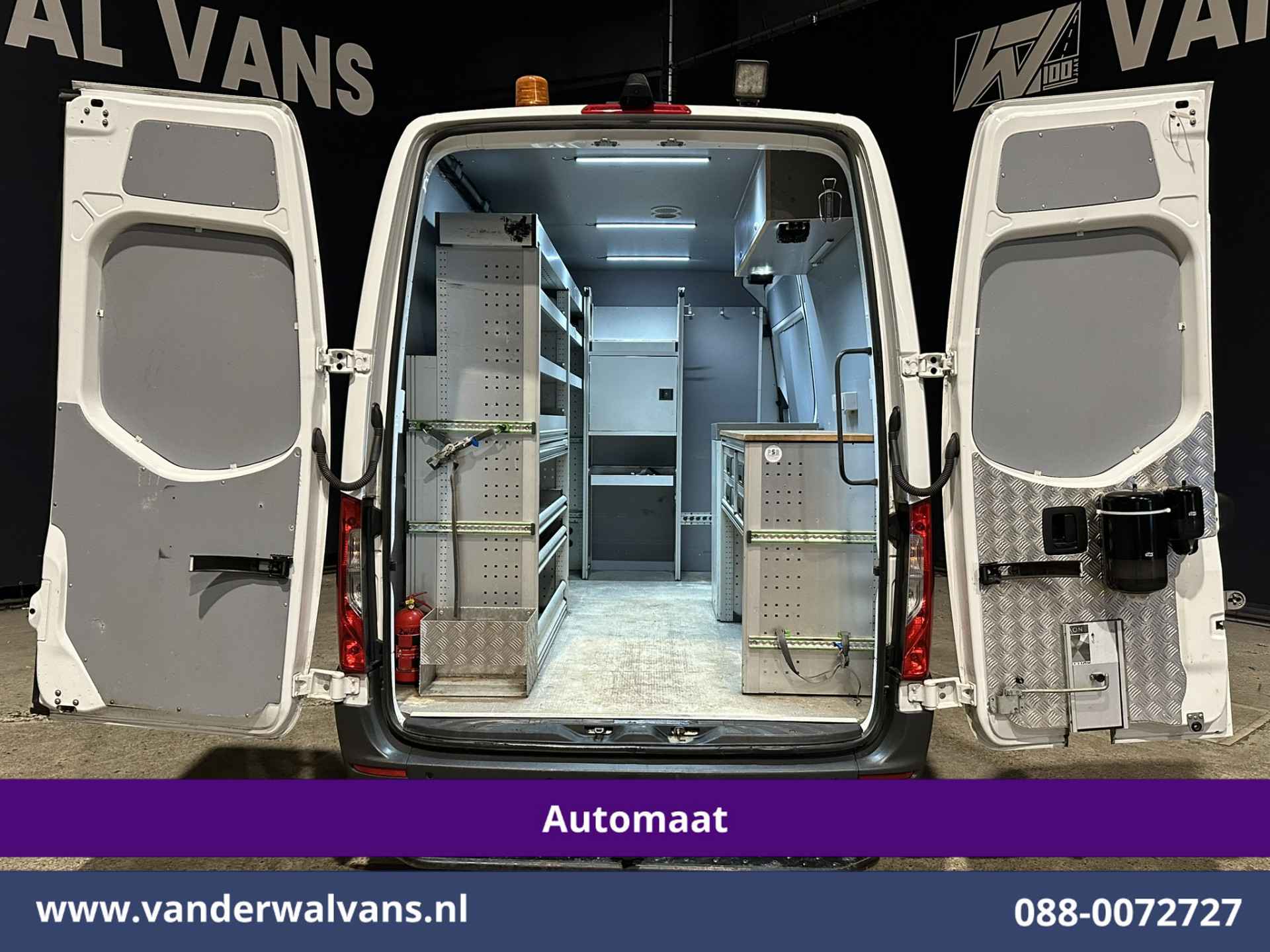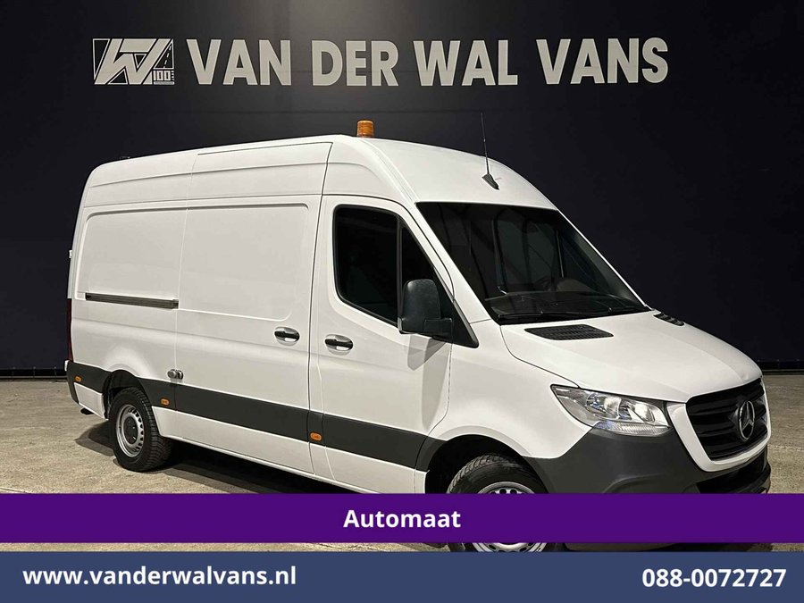 170pk sterke Sprinter L2H2 9G-Tronic Automaat Euro6 met camera, inrichting en 3500kg trekhaak. Deze sprinter is uitgevoerd met airconditioning, Apple Carplay, Android Auto, cruisecontrol, parkeersensoren en bluetooth telefoonvoorbereiding.