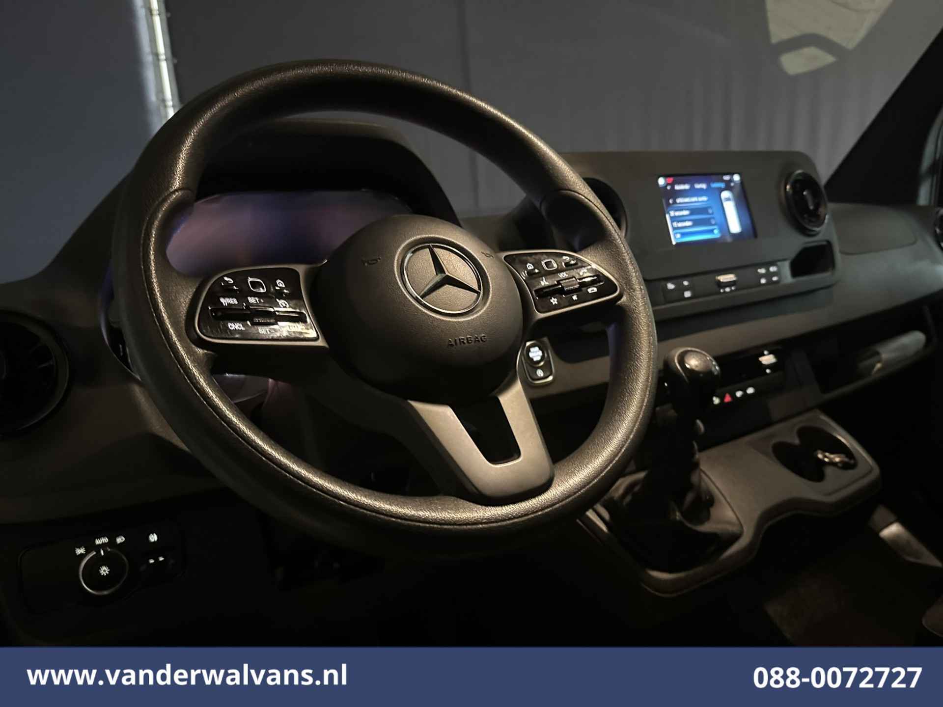 Mercedes-Benz Sprinter 170pk L3H2 Euro6 met airconditioning en camera. Deze dealer onderhouden sprinter is uitgevoerd met Apple Carplay, cruisecontol, 270 graden achterdeuren, Android Auto, stoelverwarming, parkeersensoren, bijrijdersbank en bluetooth telefoonvoorbereiding.