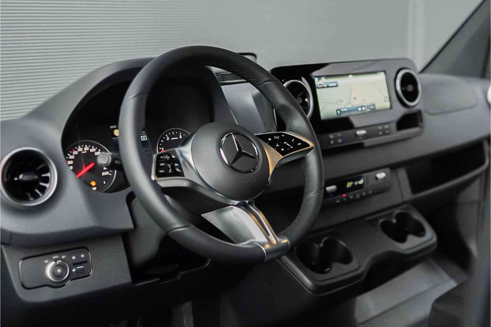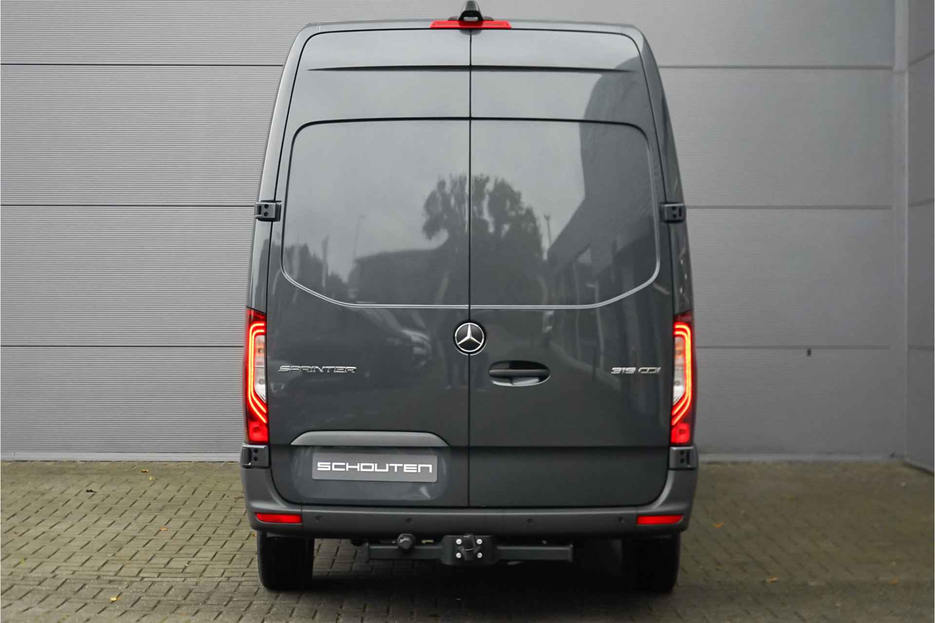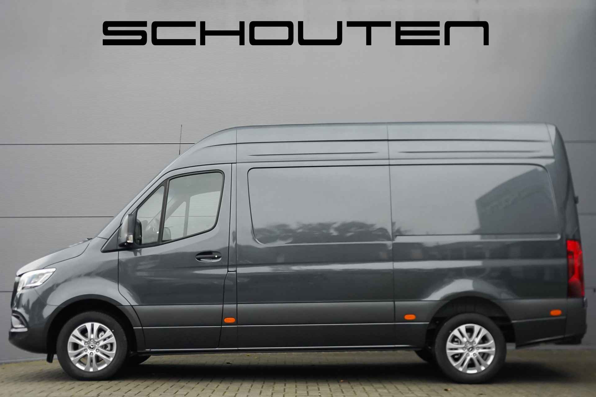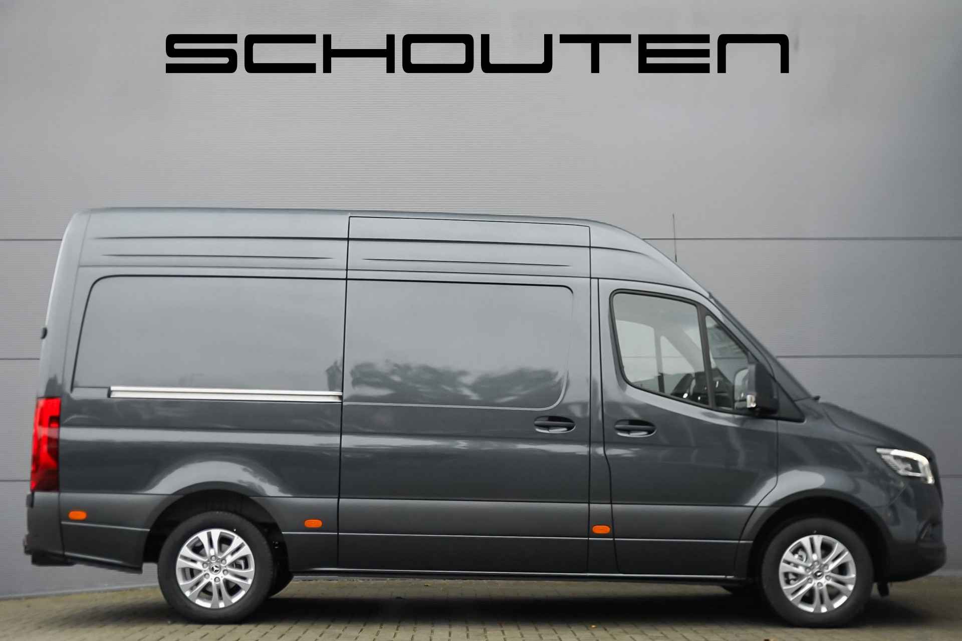 Autobedrijf Schouten biedt u deze nieuwe Mercedes-Benz Sprinter bus aan, snel leverbaar en gewoon op voorraad bij ons! Profiteer dit jaar nog van het BPM voordeel. Onze prijs is zoals afgebeeld, inclusief lichtmetalen velgen, trekhaak, vloerplaat en met een trekgewicht van 3.500 KG. Het exterieur van de Sprinter is uitgevoerd in de kleur: 'Tenoritgrau', gecombineerd met een zwart interieur. Verder beschikt de Mercedes-Benz Sprinter 319 1.9 CDI L2H2 RWD over een mooie lijst met fabrieksopties, waaronder: