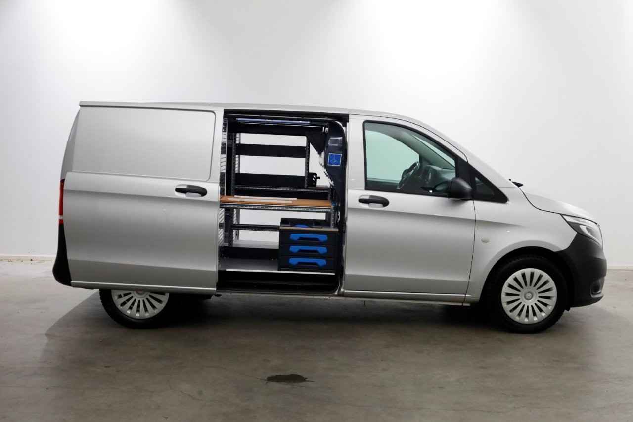Deze 136pk sterke Vito 114 CDI is van 08-2022 en heeft slechts 132.000km gereden! Compacte en wendbare L1H1, direct inzetbaar vanwege reeds gemonteerde inrichting. 9G-Automaat LED-verlichting voor en achter Sortimo laadruimte inrichting Schuifdeur links en rechts Adaptieve Cruise Control Achteruitrijcamera Etc. etc. 1e eigenaar, dealer onderhouden! Inruil en Financial Lease mogelijk