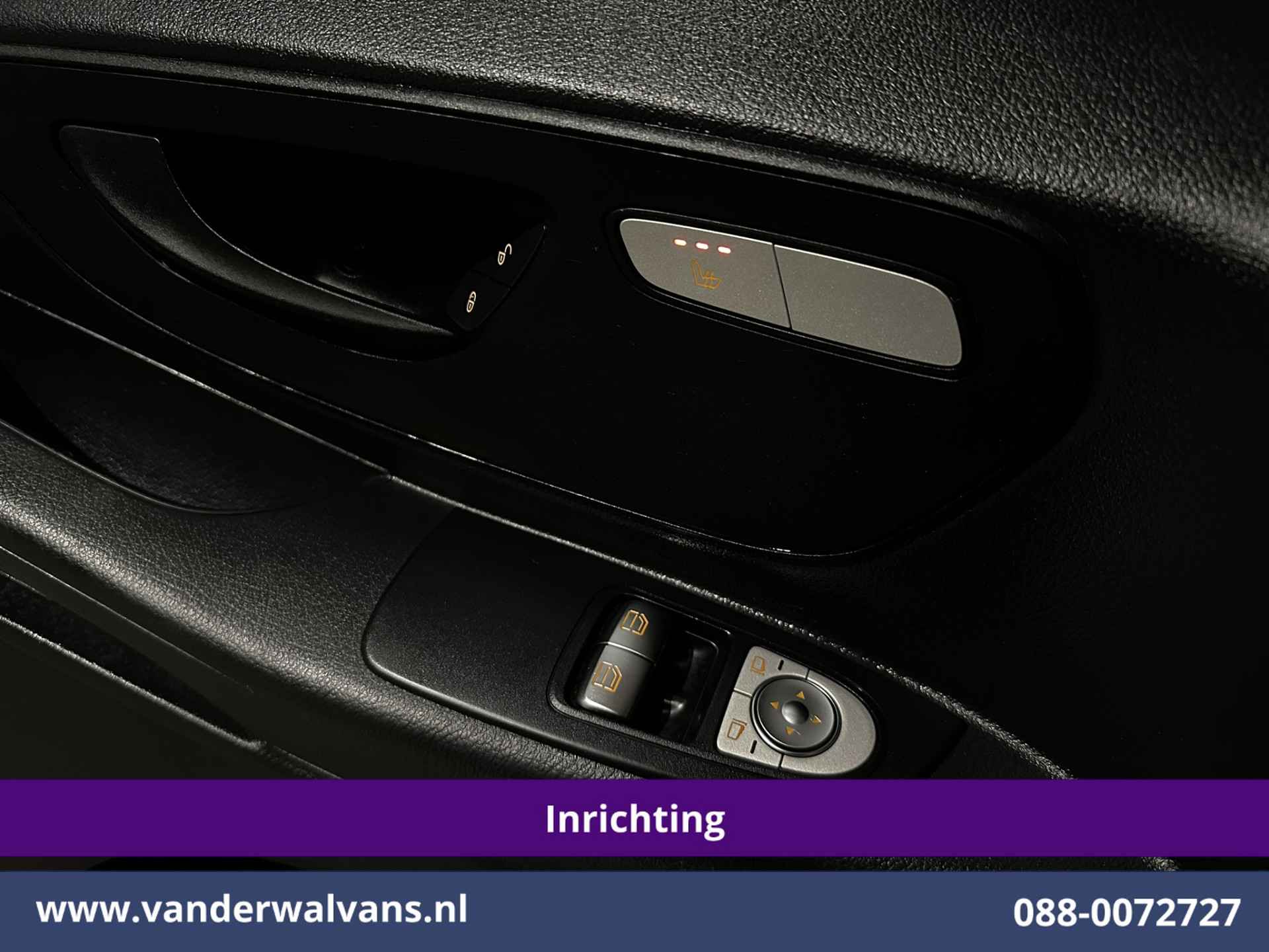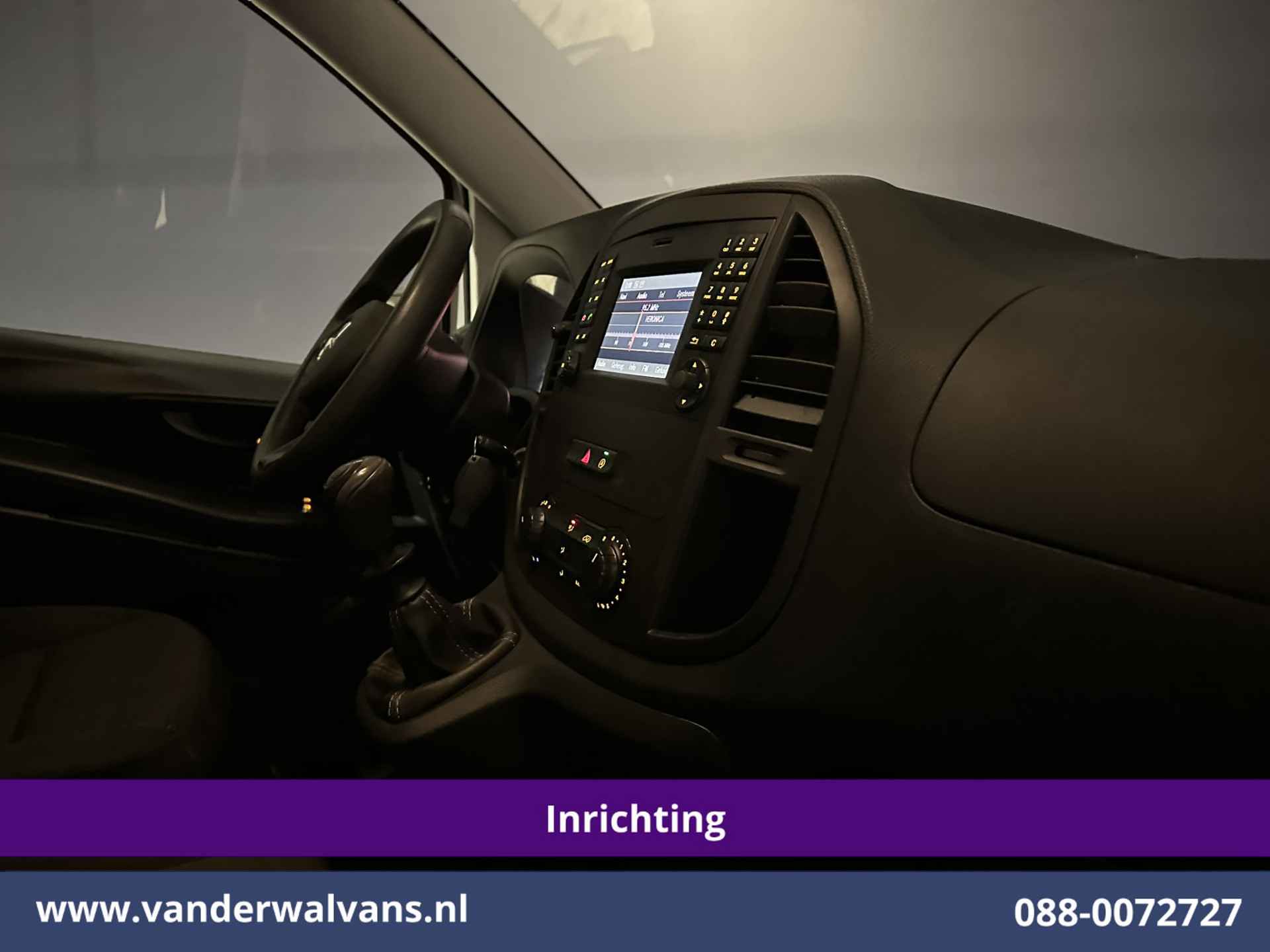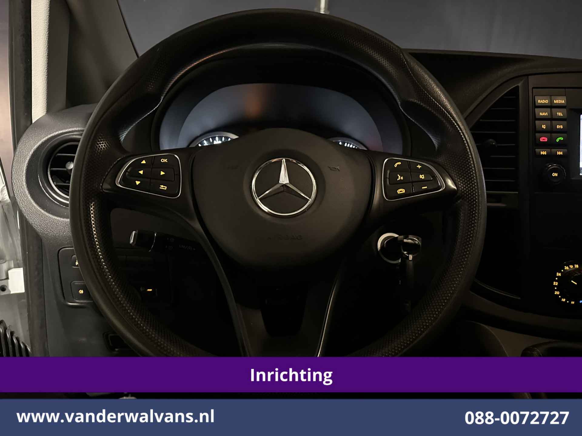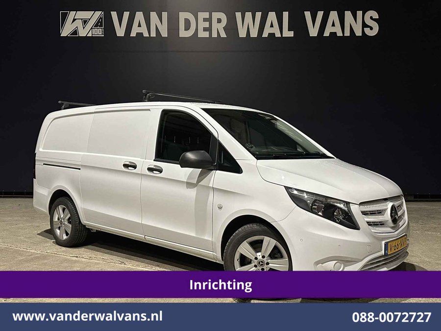 136pk Mercedes-Benz Vito L2H1 Euro6 met camera en handige inrichting. Geheel dealer onderhouden en uitgevoerd met airconditioning, bumper in de kleur, lichtmetalen velgen, cruisecontrol, trekhaak, stoelverwarming, dakdragers, parkeersensoren, achterklep, bijrijdersbank en bluetooth telefoonvoorbereiding.