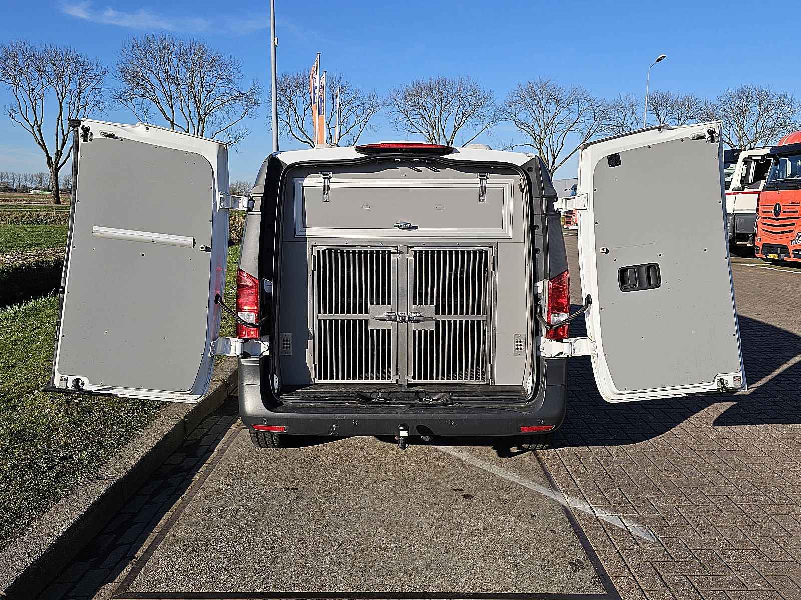 Configuratie: 4x2, Laadvermogen: 1142 kg, Eigen gewicht: 1908 kg, Totaalgewicht: 3050 kg, Trekgewicht ongeremd: 750 kg, Trekgewicht middenas geremd: 2000 kg, Trekhaak, Soort cabine: enkele cabine, Cruise control, Airconditioning, Aantal airbags: 2, Parkeerhulp: Voor en achterkant, Getint glas, Elektrische ramen, Elektrische spiegels, Radio/cassette, Kleur: Wit, Verwarmde spiegels, Soort lampen: Halogeen, Climatecontrol, Bluetooth, Motorvermogen: 120 Kw (161 Hp), Brandstof: diesel, Euro: 6, Distributie type: Distributieketting, Soort versnellingsbak: Automaat, Stuurbekrachtiging, ABS (Anti Blokkeer Systeem), ASR (Anti Slip Regeling), Start accu, Opbouw model: L1H1 – Korte wielbasis, laag dak, Imperiaal: Geen, Zijdeuren: 2, Zijruiten: 2, Achtersluiting: dubbele deur, Centrale vergrendeling, Zitplaatsen: 2, Stoelopstelling: 1+1, Stoelbekleding: stof, Stoel verstelling: Handmatig, Hondenvervoer EURO6 MARGE ac automaat cruisecontrol org NL dubbele schuifdeur, Banden soort: Winterbanden
