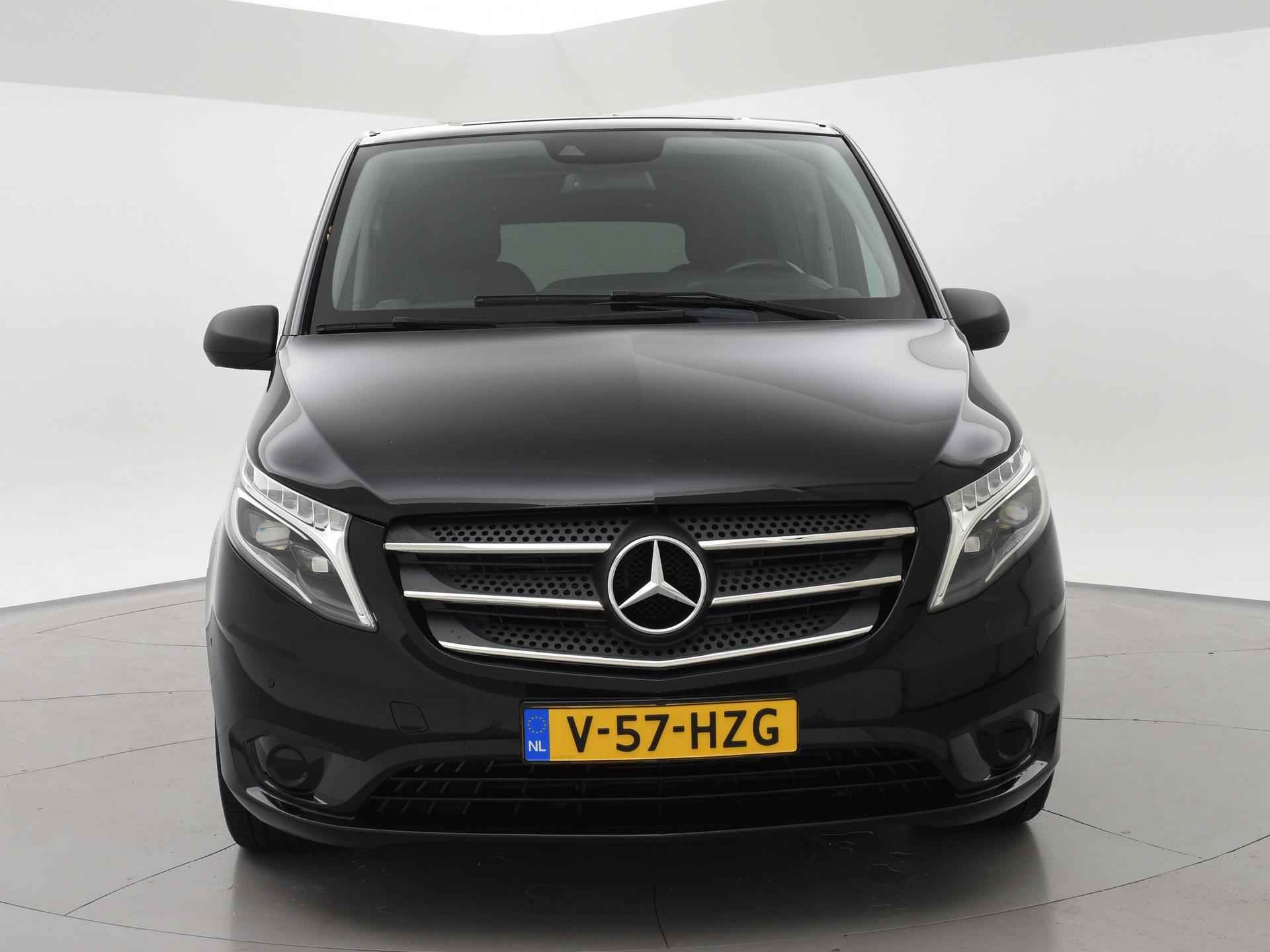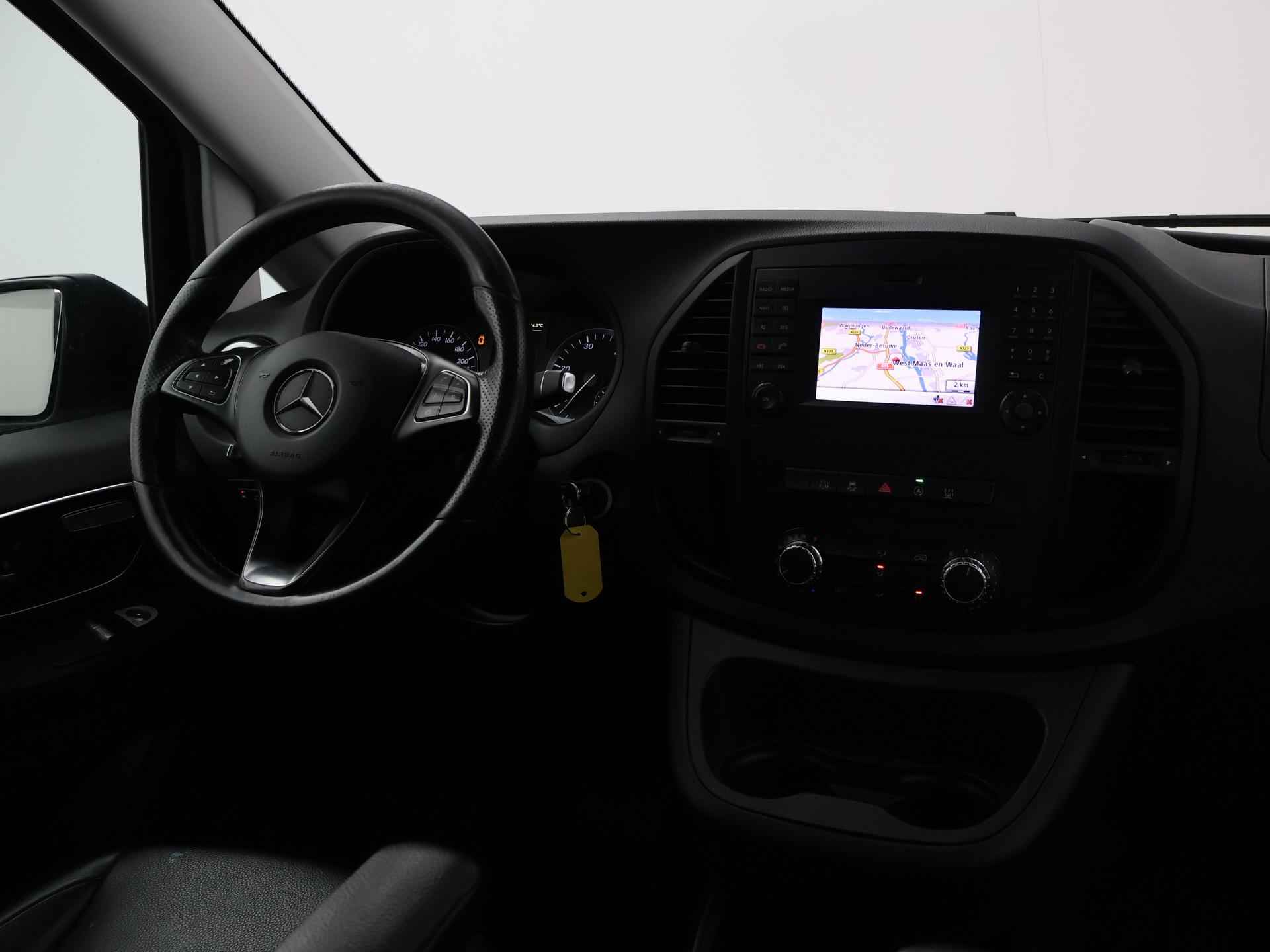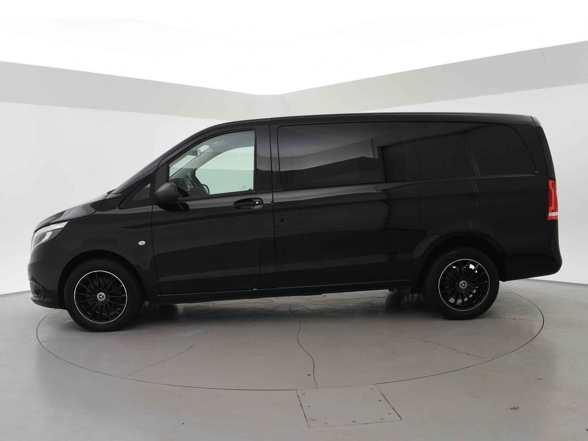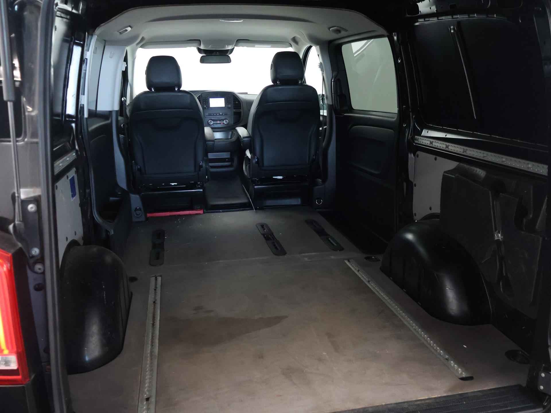 Vito 119 CDI L2H1 2.2 CDI 190 PK Automaat enkel cabine met 2 zitplaatsen. Deze Mercedes vito is o.a. voorzien van: 2 comfortstoelen met armleuningen, zwart leder interieur, Full LED koplampen, Navigatiesysteem full map, Achteruitrijcamera met aparte trekhaak / aanhanger modus, LED achterlichten, 17 inch lichtmetalen velgen, afneembare Trekhaak, Dodehoek ruit in de zijschuifdeur, Bumpers in carrosseriekleur, Stoelverwarming, Chromen grille, Dodehoek detectie, Attention Assist, Parkeersensoren voor + achter, Cruise control, Lijnassistentie, Airco, Leder stuurwiel multifunctioneel, Buitenspiegels elektrisch inklapbaar, Prijs is exclusief BTW.