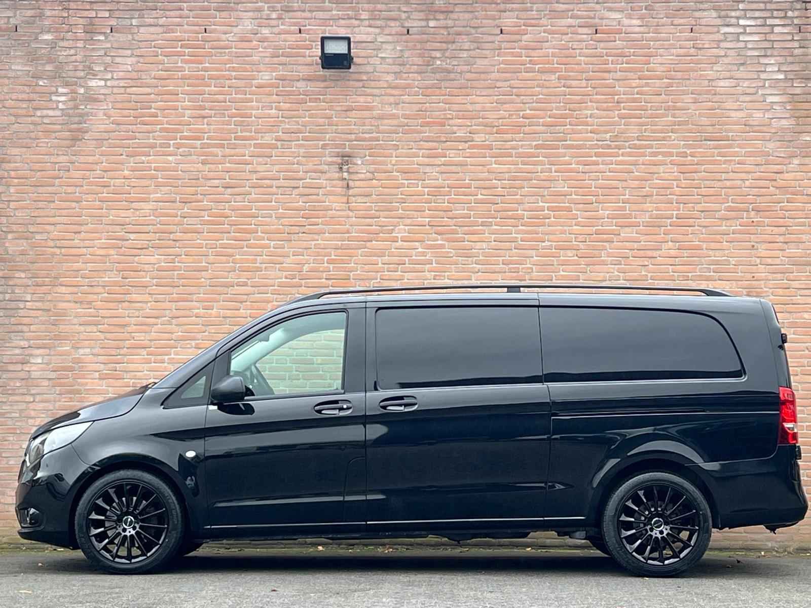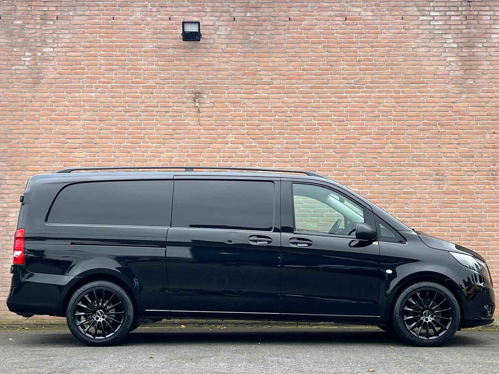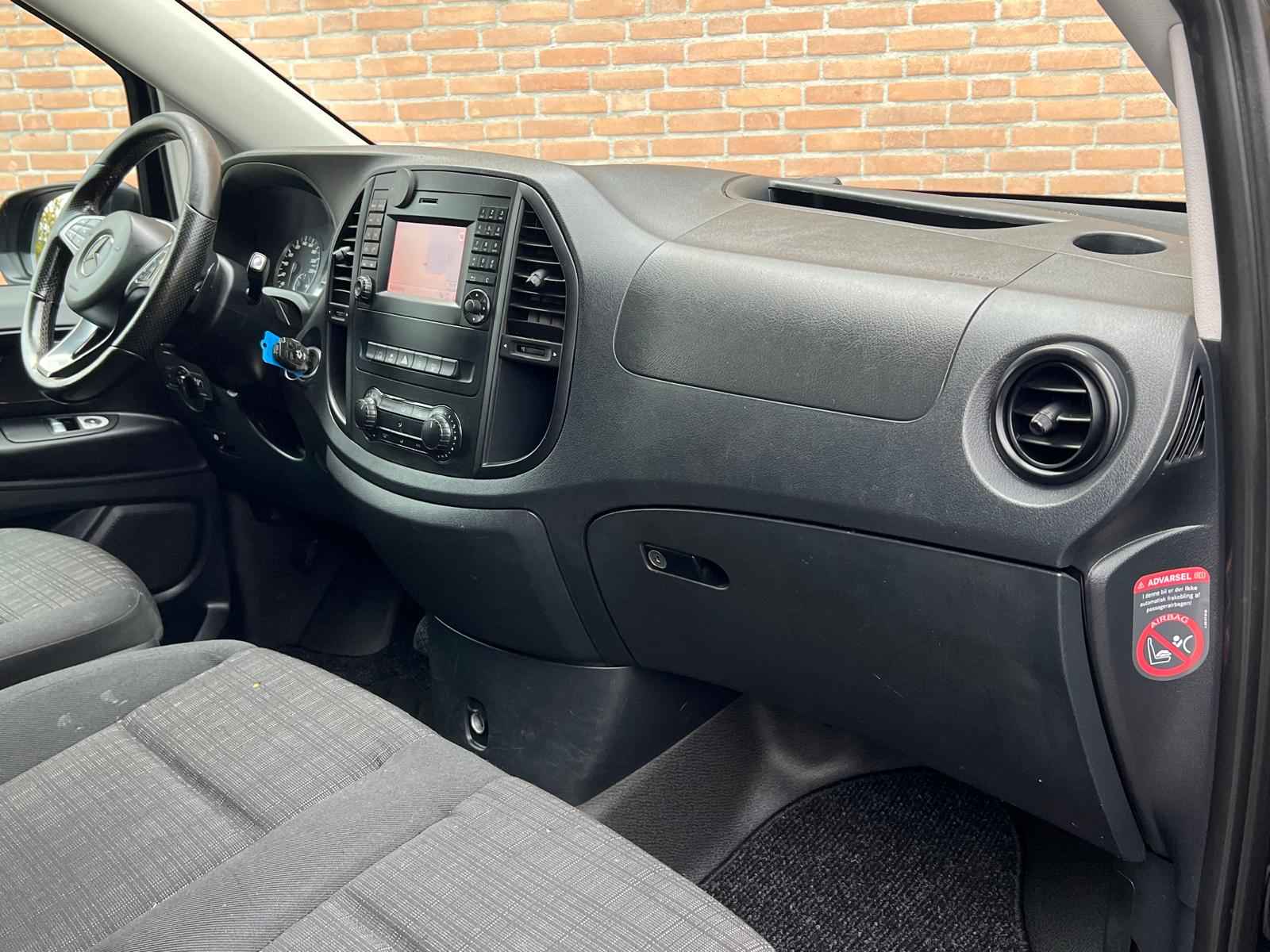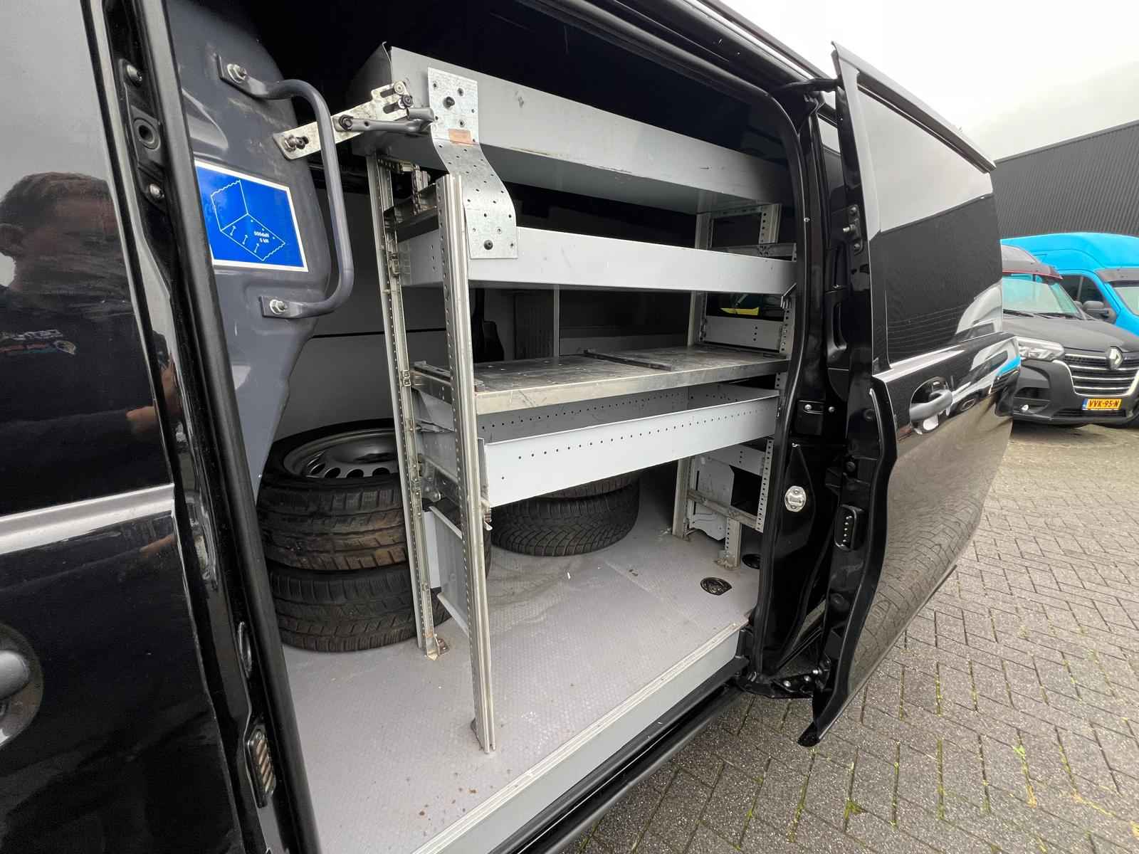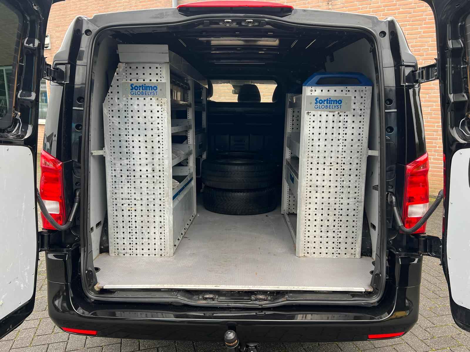 Lease v.a. €318,- per maand. Afmetingen laadruimte 289x168x141cm. Trekhaakgewicht 2.500kg. Meerprijs nieuwe 19" licht metalen velgen €1.481,- ex BTW. 919 Lakkleur obsidiaanzwart metallic MB 9197 CL3 Met leder bekleed stuurwiel CL4 Multifunctioneel stuurwiel met boordcomputer CM2 Bumper en stylingaccessoires gespoten in carrosseriekleur E1N Becker(R) MAP PILOT E57 Elektriciteit voor aanhangwagenstekkerdoos EN7 AUDIO 15 F66 Afsluitbaar dashboardkastje F68 Buitenspiegel verwarmbaar en elektrisch verstelbaar FK2 Radiateurgrille verchroomd FR8 Achteruitrijcamera FY7 Radiografische afstandsbediening met meerdere knoppen G42 7G-TRONIC Plus H12 Warmwater-extra verwarming H16 Stoelverwarming bestuurder H20 Warmtewerend glas rondom HH9 Semi-automatische airconditioning Tempmatic HZ0 Extra verwarming, elektrisch IL6 Metallic - lak IN3 Wielbasis 3430 mm, overbouw lang JF1 Regensensor JW8 Attention Assist JX2 Onderhoudsinterval 40.000 km LA2 Rijlichtassistent MG4 Motor OM651 DE 22 LA 140 kW (190 pk) MJ8 ECO start-/stopsysteem MS1 Tempomat MX0 BlueEFFICIENCY-pakket QA4 Aanhangwagengewicht 2500 kg RY2 Bandenspanningscontrole aan vooras en achteras, draadloos S23 Passagiersstoel, tweezits SA6 Airbag passagier SB1 Chauffeursstoel comfort SE5 Lendensteun bestuurdersstoel T19 Schuifdeur links VY2 Stof Tunja zwart W50 Achterdeur, dubbel, 180 graden, zonder ruit W70 Getint zwart glas achter W78 Ruit in achterklep/achterdeur met wis-/wasinstallatie