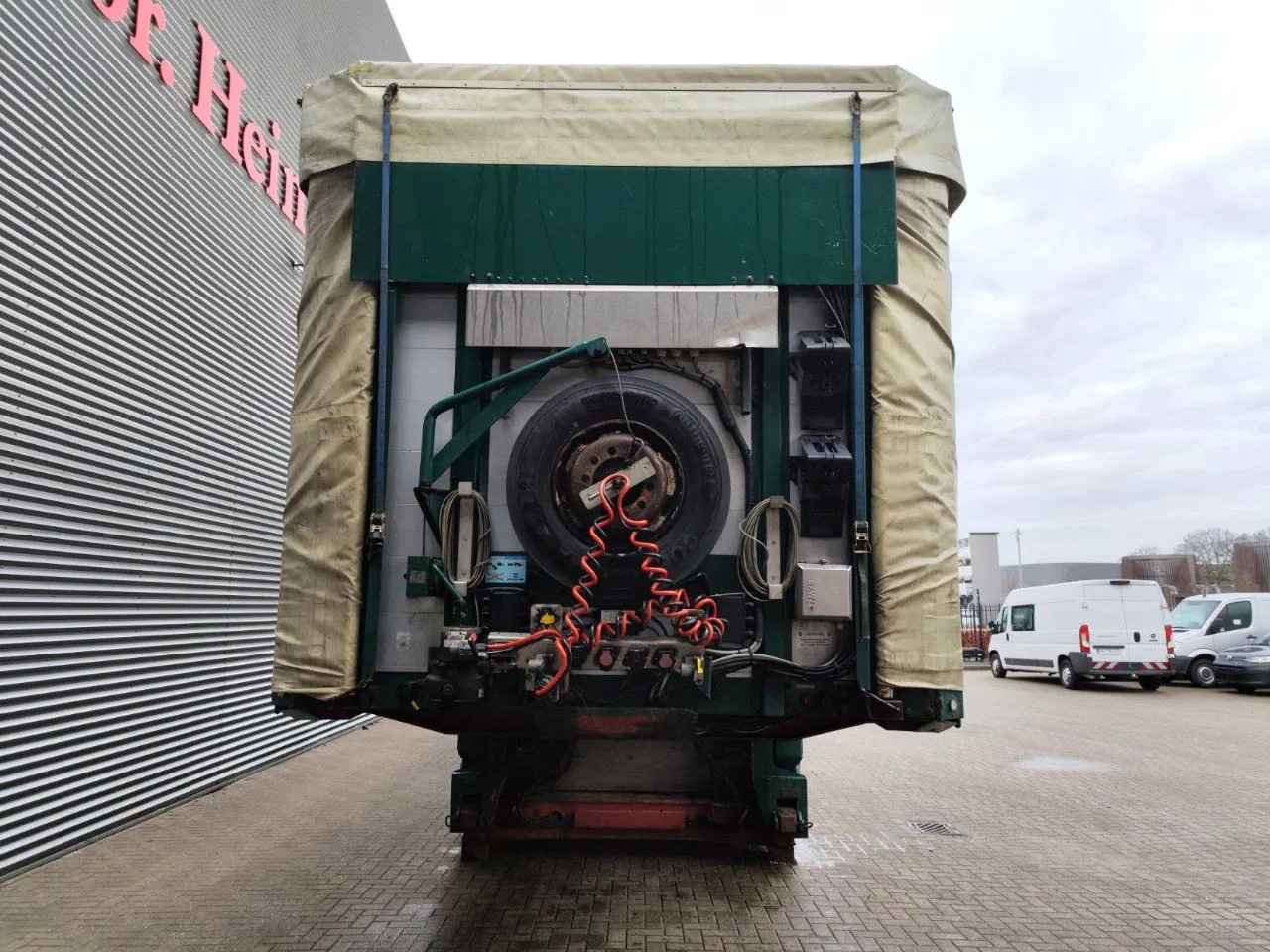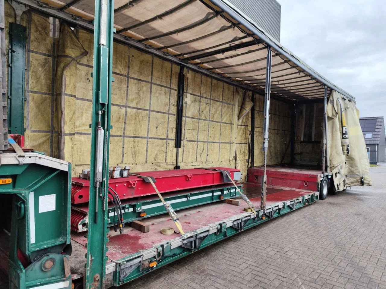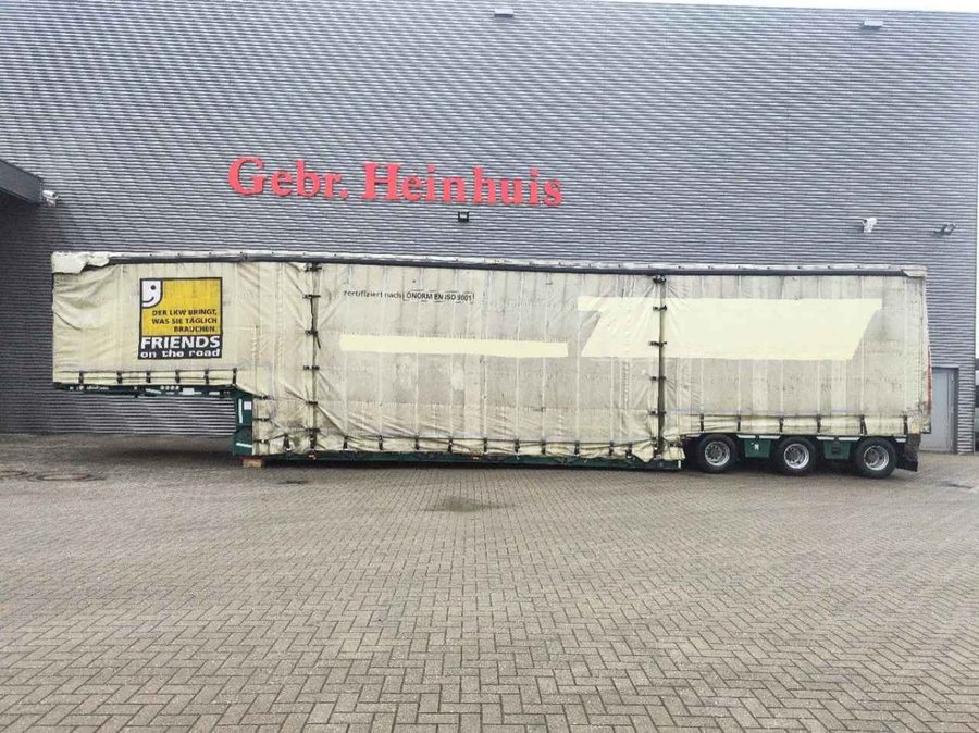 Meusburger MPG-3. Year: 2015. 12 Tons Gigant axles. Weight: 20.830 kg. Max weight: 61.000 kg. Kingpin load: 25.000 kg. EBS. Hydr. detachable gooseneck. 5.4 meter extandable. 2 x 25 cm widened including widening. Central greasing system. Hydraulic works on NATO. 4 meter extensions. Hydr. suspension. Sliding seals. Sliding roof. Dimmensions inside: Neck: L: 3650 mm. W: 2486 mm. H: 2390 mm. Floor: L: 7880 mm. W: 2486 mm. H: 3590 mm. Backside: L: 4625 mm. W: 2486 mm. H: 3050 mm. Tyres: 245/70R17,5 80%. ID NR: 535. The General Terms and Conditions of Heinhuis are applicable to all adverts, offers and quotations by Heinhuis, all agreements entered into by Heinhuis and the negotiations preceding them. By any form of response you accept the applicability of the General Terms and Conditions of Heinhuis and you declare that you have taken note of these General Terms and Conditions. Our prices are export netto prices.