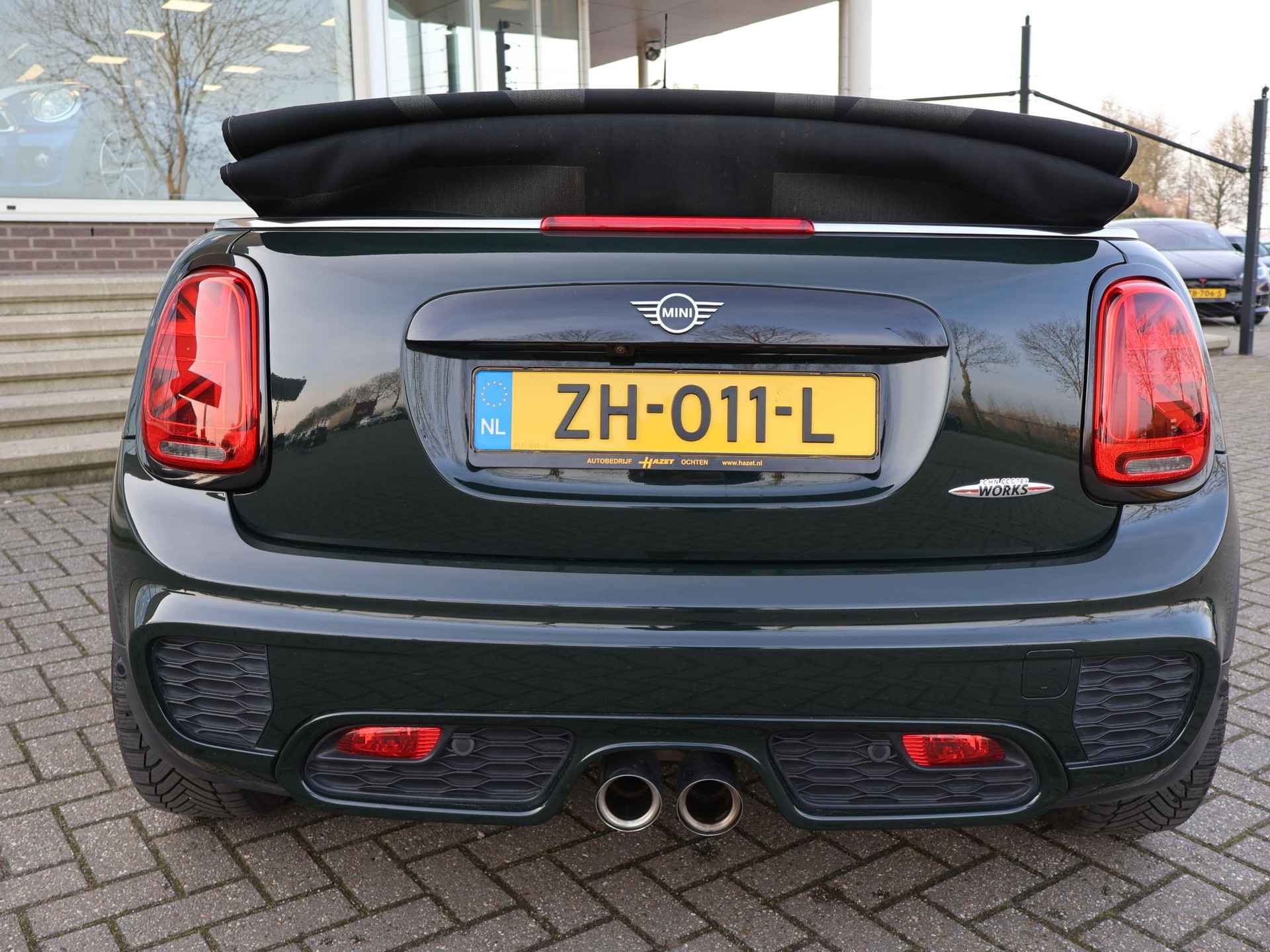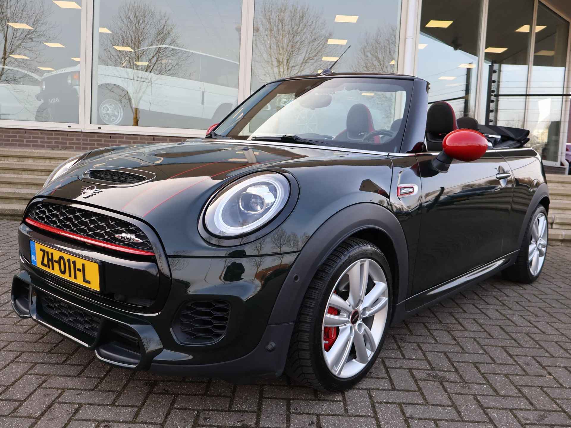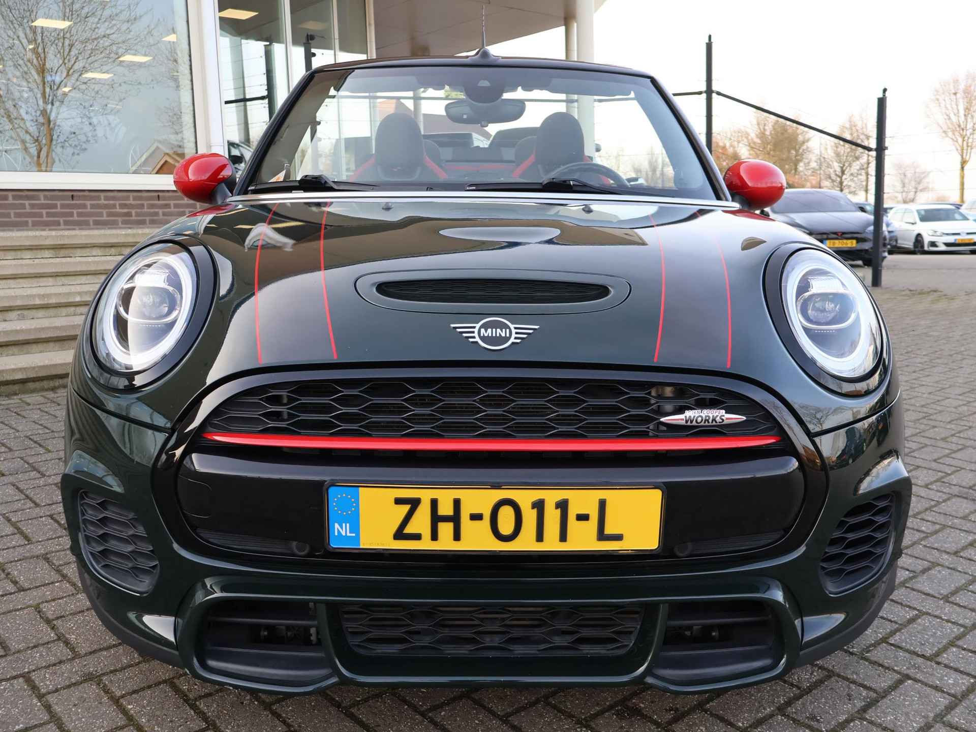 Origineel Nederlandse MINI Cabrio 2.0 John Cooper Works 231 PK automaat in het Rebel Green, RDW nieuwprijs 59.687 euro, Bijzonder compleet met JCW Sportstoelen, Adaptive cruise control, Harman/Kardon premium audio, Apple Carplay / Android Auto, Achteruitrijcamera, Keyless-entry en keyless-drive, Full LED koplampen en LED achterlichten, Zwarte striping met rode accenten, Stoelverwarming, Elektronische voorruitverwarming, DAB digitale radio, Bluetooth, Climate control, Sfeerverlichting interieur met verschillende kleuren, Rode grille en buitenspiegels, Union Jack achterlichten, Union Jack dashboard inleg.  Iedere werkdag geopend van 08.00 tot 20.00 uur en zaterdag van 09.00 tot 17.00 uur. De door ons genoemde communicatieadviesprijzen zijn inclusief onvermijdbare kosten benodigd voor levering van de auto. Optionele pakketten en-/of uitrusting zijn altijd een keuze van de consument en worden tegen meerprijs geleverd. Voor meer foto's van dit voertuig bezoekt u onze website www.hazet.nl. Inruil- en financiering van uw auto is mogelijk. Tevens financial lease beschikbaar met zeer gunstige tarieven en acceptatievoorwaarden, ook voor ZZP’ers. Ons adres: Transitoweg 2, 4051 CA, Ochten. Bellen of Whatsapp: +31344242010.