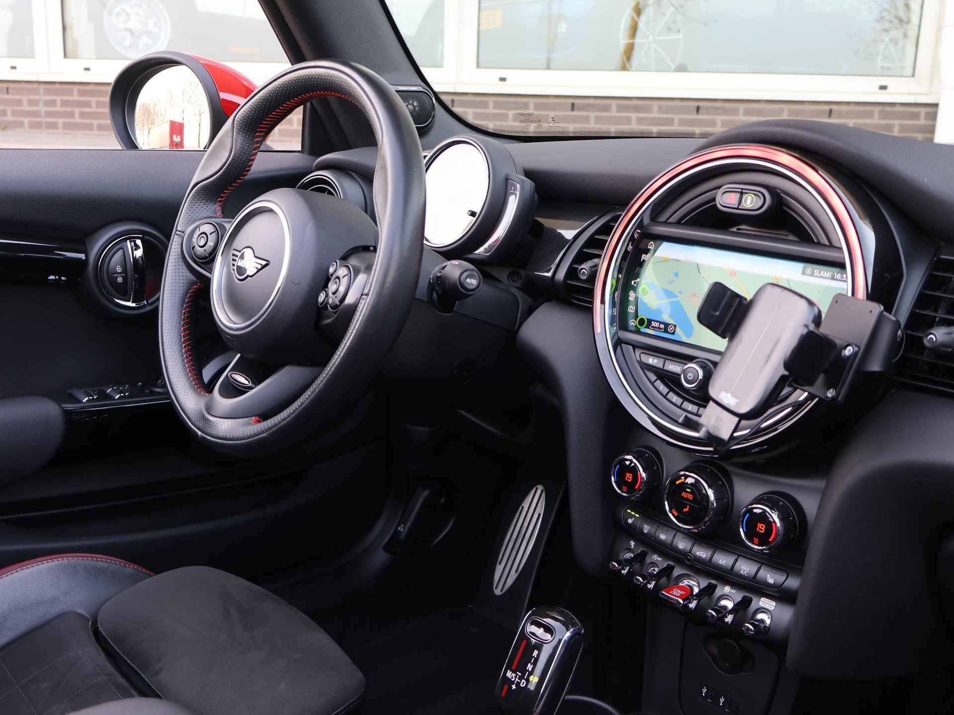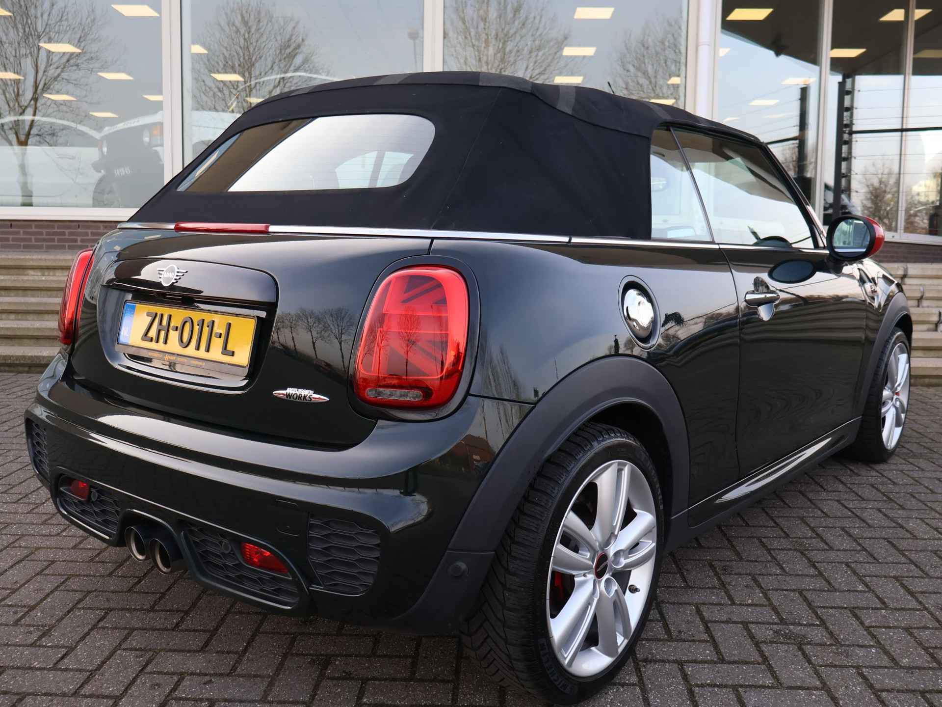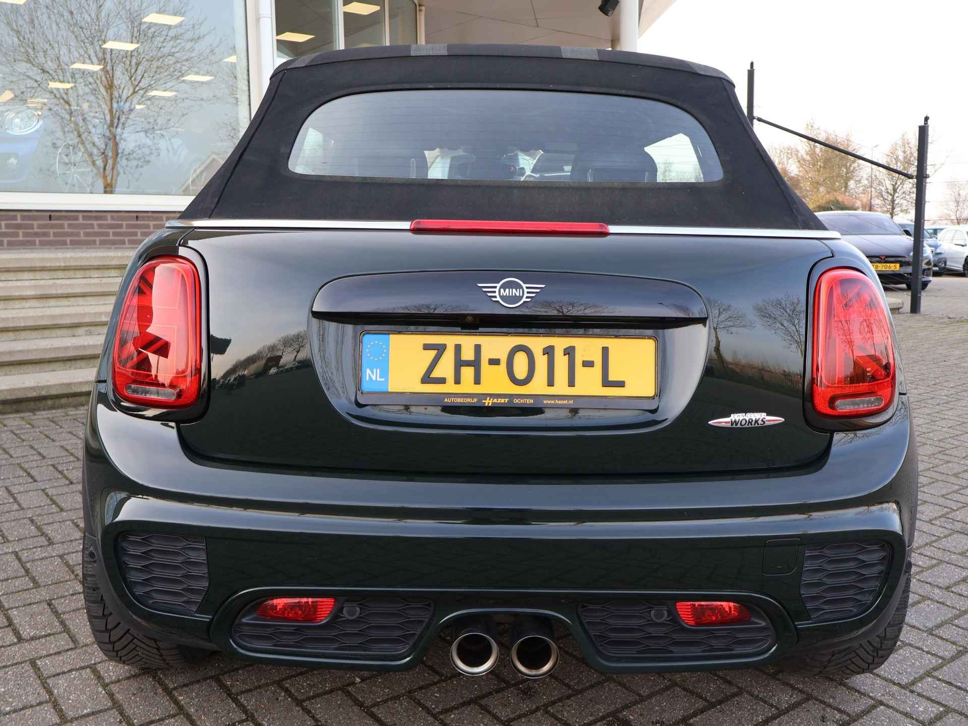 Origineel Nederlandse MINI Cabrio 2.0 John Cooper Works 231 PK automaat in het Rebel Green, RDW nieuwprijs 59.687 euro, Bijzonder compleet met JCW Sportstoelen, Adaptive cruise control, Harman/Kardon premium audio, Apple Carplay / Android Auto, Achteruitrijcamera, Keyless-entry en keyless-drive, Full LED koplampen en LED achterlichten, Zwarte striping met rode accenten, Stoelverwarming, Elektronische voorruitverwarming, DAB digitale radio, Bluetooth, Climate control, Sfeerverlichting interieur met verschillende kleuren, Rode grille en buitenspiegels, Union Jack achterlichten, Union Jack dashboard inleg.  Iedere werkdag geopend van 08.00 tot 20.00 uur en zaterdag van 09.00 tot 17.00 uur. De door ons genoemde communicatieadviesprijzen zijn inclusief onvermijdbare kosten benodigd voor levering van de auto. Optionele pakketten en-/of uitrusting zijn altijd een keuze van de consument en worden tegen meerprijs geleverd. Voor meer foto's van dit voertuig bezoekt u onze website www.hazet.nl. Inruil- en financiering van uw auto is mogelijk. Tevens financial lease beschikbaar met zeer gunstige tarieven en acceptatievoorwaarden, ook voor ZZP’ers. Ons adres: Transitoweg 2, 4051 CA, Ochten. Bellen of Whatsapp: +31344242010.