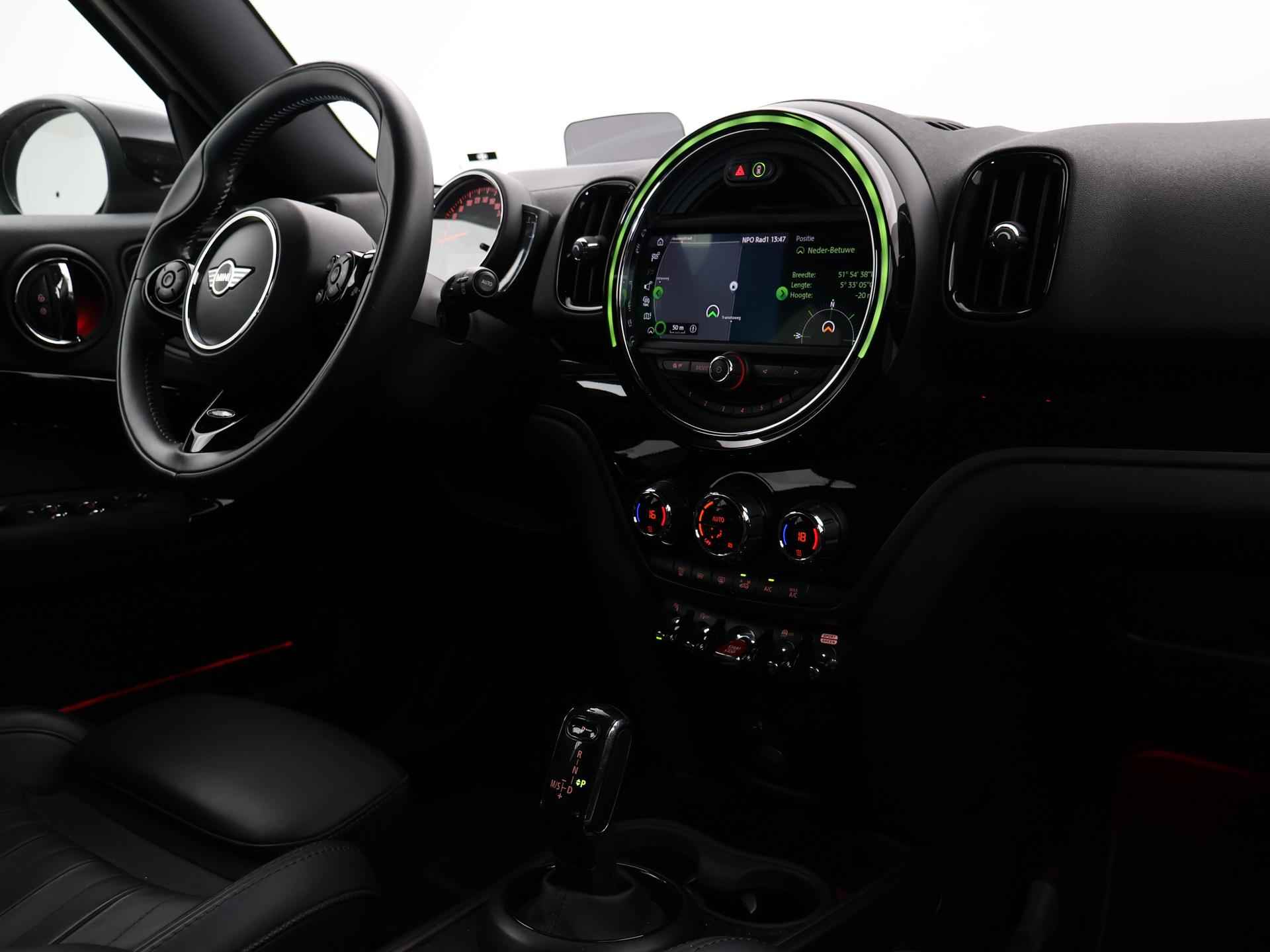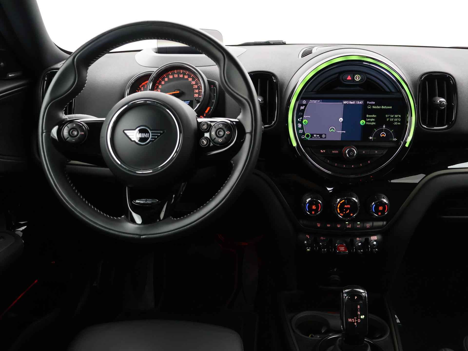 Origineel Nederlandse Countryman Cooper 1.5 136 PK Automaat in het Melting Silver met zwart dak, zwarte spiegels en 18 inch zwarte velgen. Chili uitvoering, Slechts 51.261 km gereden, Mini Yours zwart volledig leder sportinterieur met verlengbaar zitvlak, Harman/Kardon Premium sound, Head-up display, Achteruitrijcamera, Elektrische achterklep, Keyless-entry en keyless-drive, Elektrisch verwarmbare voorruit, Navigatie Professional breedbeeld, Full LED koplampen, LED mistlampen, Dakrailing, Apple Carplay / Android Auto appstreaming Google Maps, Flitsmeister, Whatsapp, Spotify etc, DAB+ Digitale radio, Bluetooth met audiostreaming, Zwarte hemelbekleding, Parkeersensoren voor + achter, USB C opladers achterin 2x, Grotere brandstoftank (1000 km op een tank rijden), Chrome Line exterieurpakket, Alarmsysteem, Mini Driving Modes,