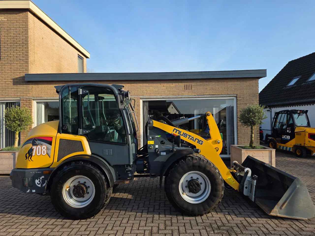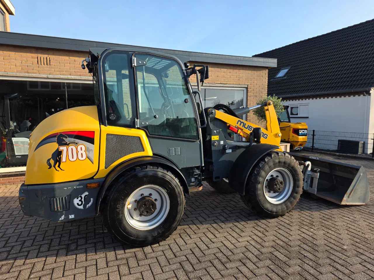Mustang 708 Deutz motor Hydrolische functie's Hydrolische snelwissel Bak + lepels Nl kenteken geregistreerd Boekjes aanwezig Automatisch smeersysteem Keurige goedwerkende direct inzetbare machine Transport is bespreekbaar tegen meerprijs nl belgie Duitsland etc