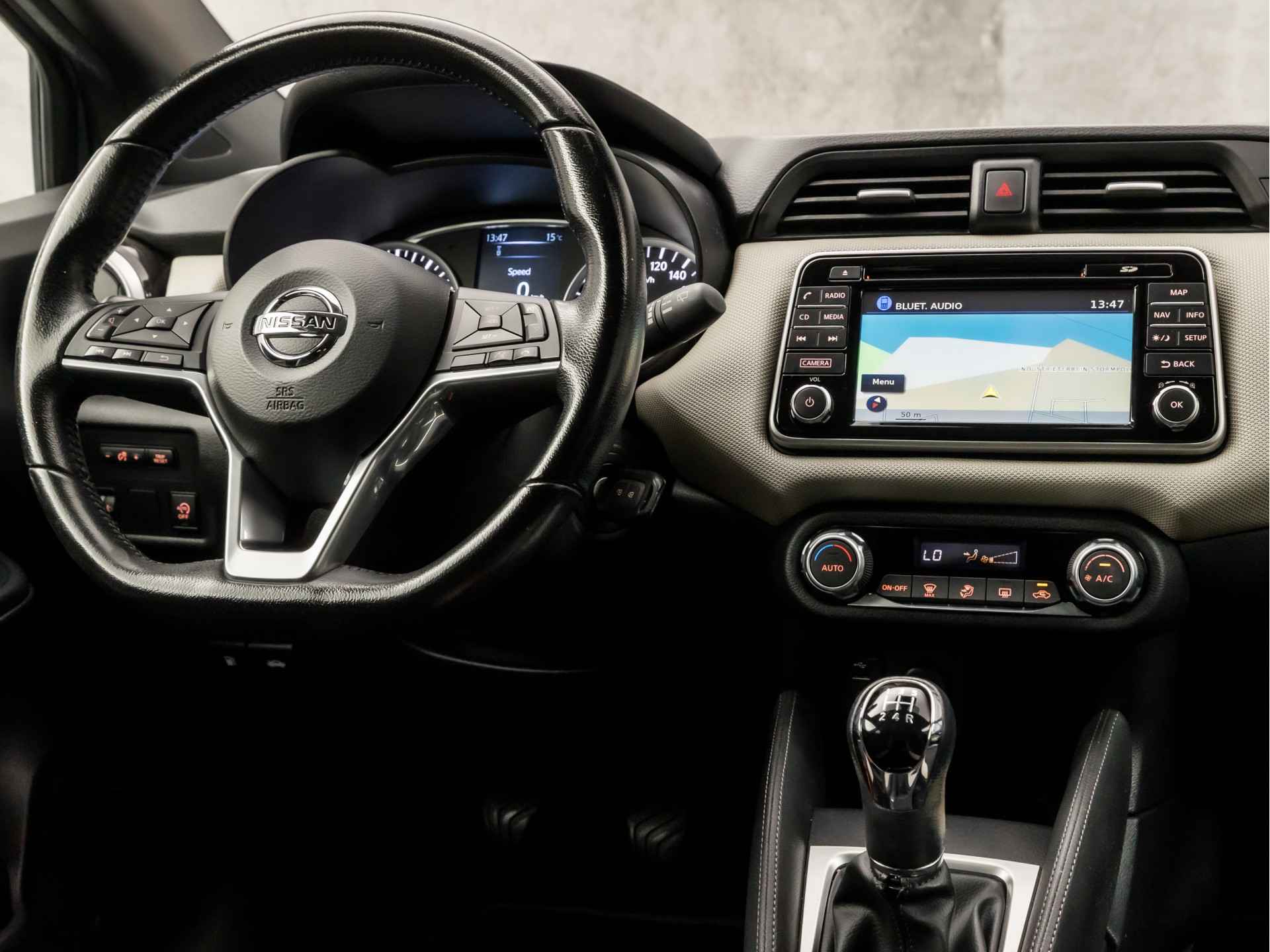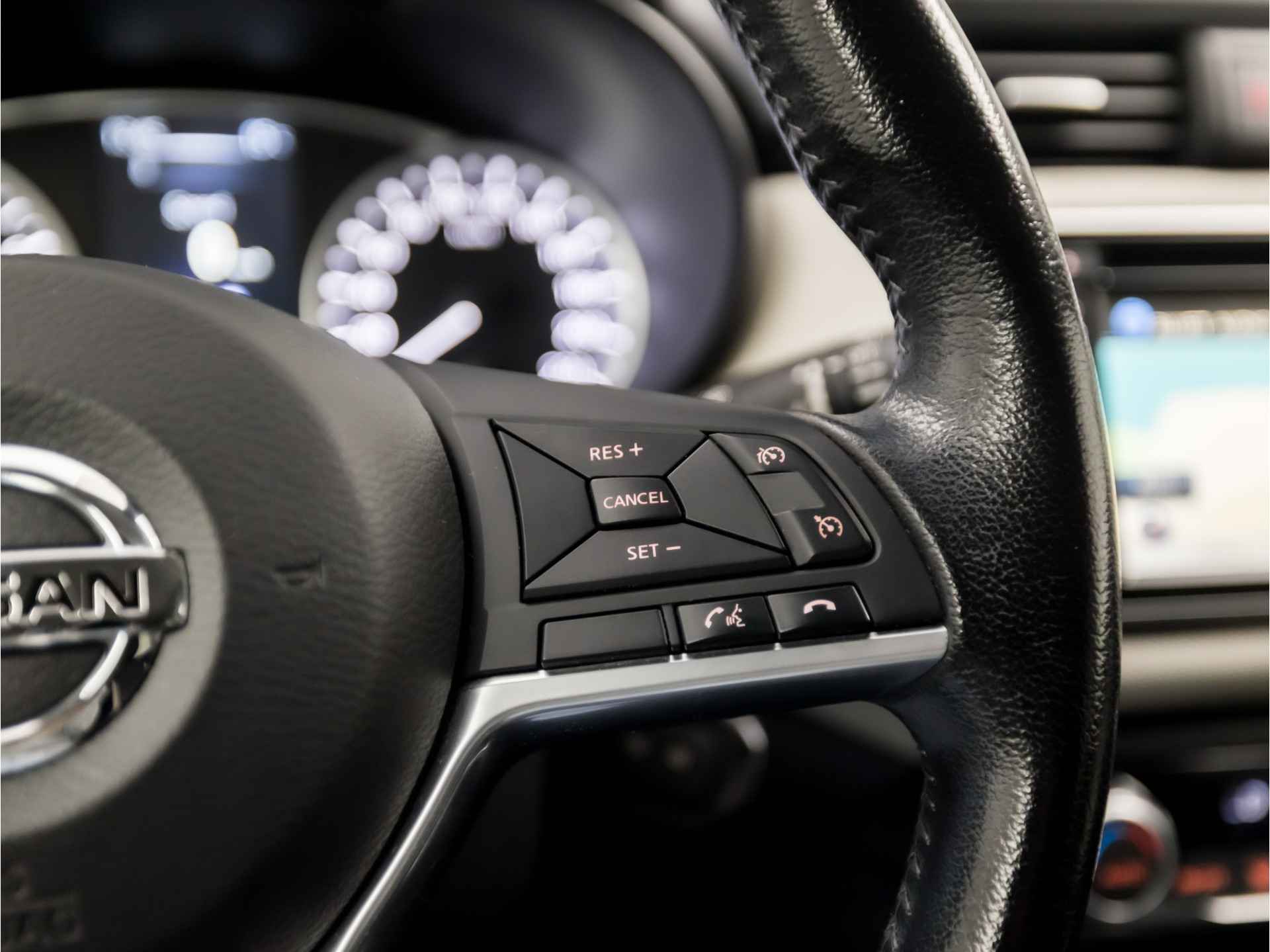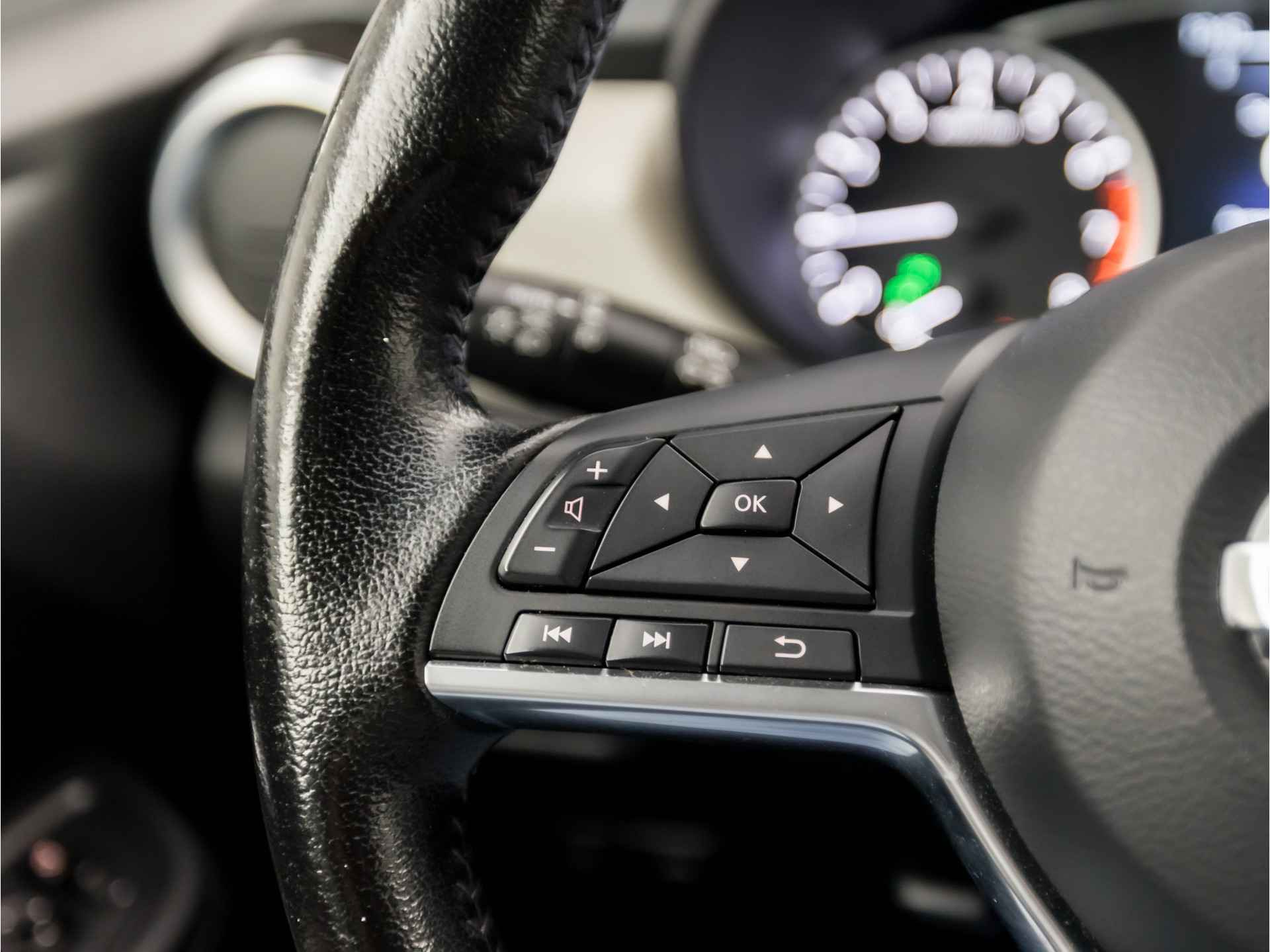 Soepel inparkeren in de krapste parkeervakken. De achteruitrijcamera maakt het mogelijk. Het audio-installatiesysteem met DAB-ontvangst en het navigatiesysteem bedient u veilig met knoppen op het stuur. Of het buiten nu warm is of koud, dankzij automatische airconditioning is het binnen altijd behaaglijk. De automatisch inschakelbare verlichting en regensensor zorgen dat onderweg automatisch de verlichting en de ruitenwissers worden ingeschakeld. Daarmee nemen ze u veel werk uit handen. Natuurlijk is deze Nissan Micra voorzien van cruise control. De uitrusting van deze auto is met lederen stuur, isofix-aansluiting, centrale deurvergrendeling met afstandsbediening, bagage afdekhoes, boordcomputer en lederen versnellingspook behoorlijk compleet.