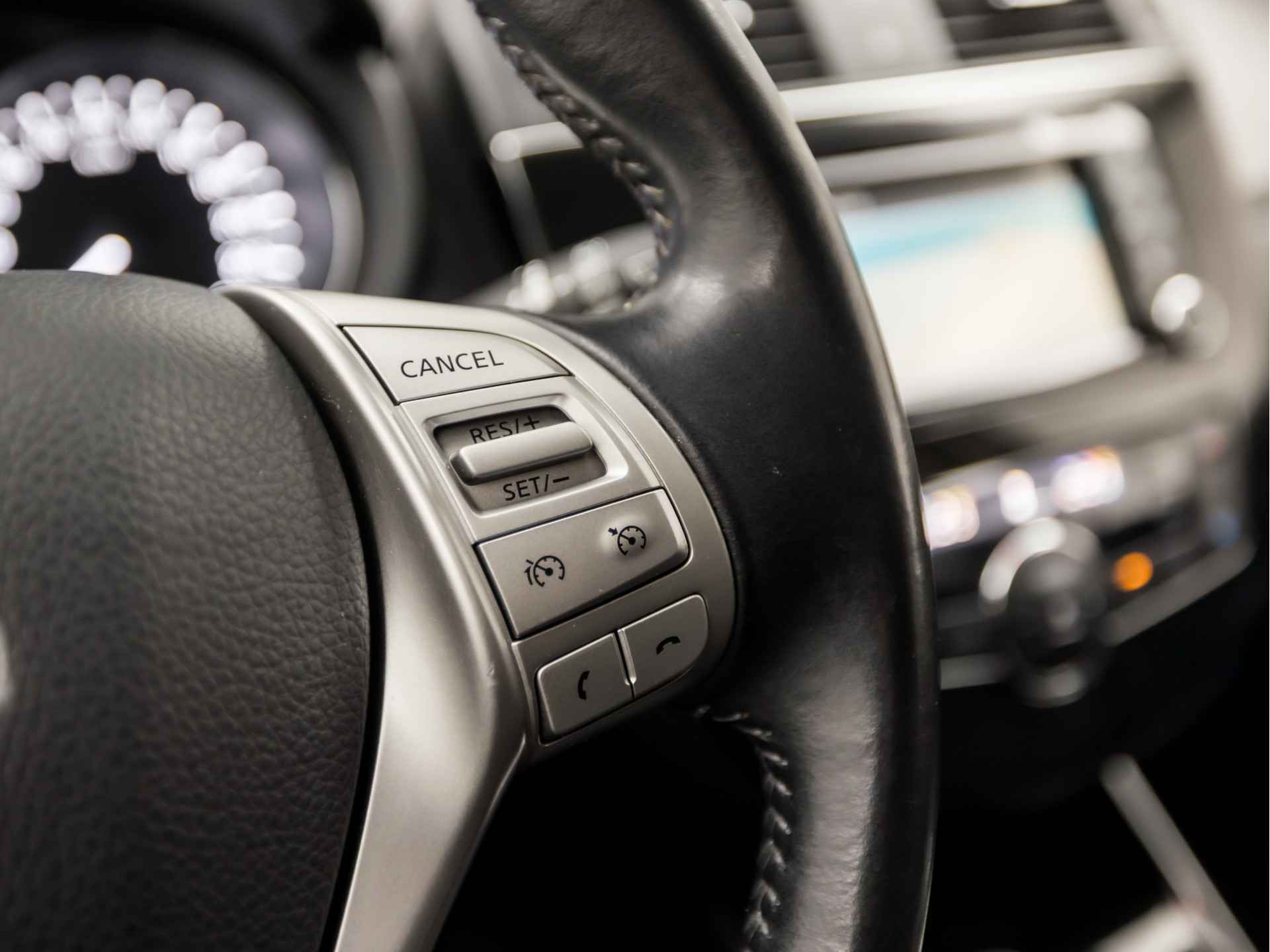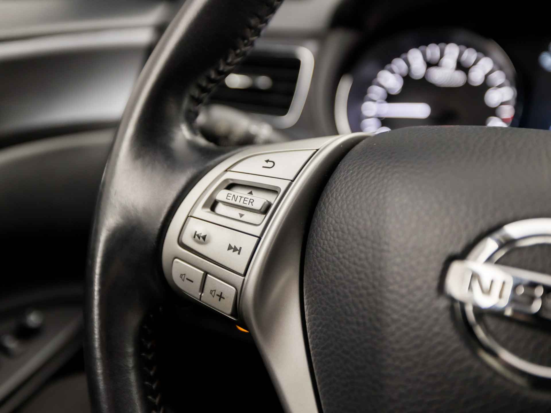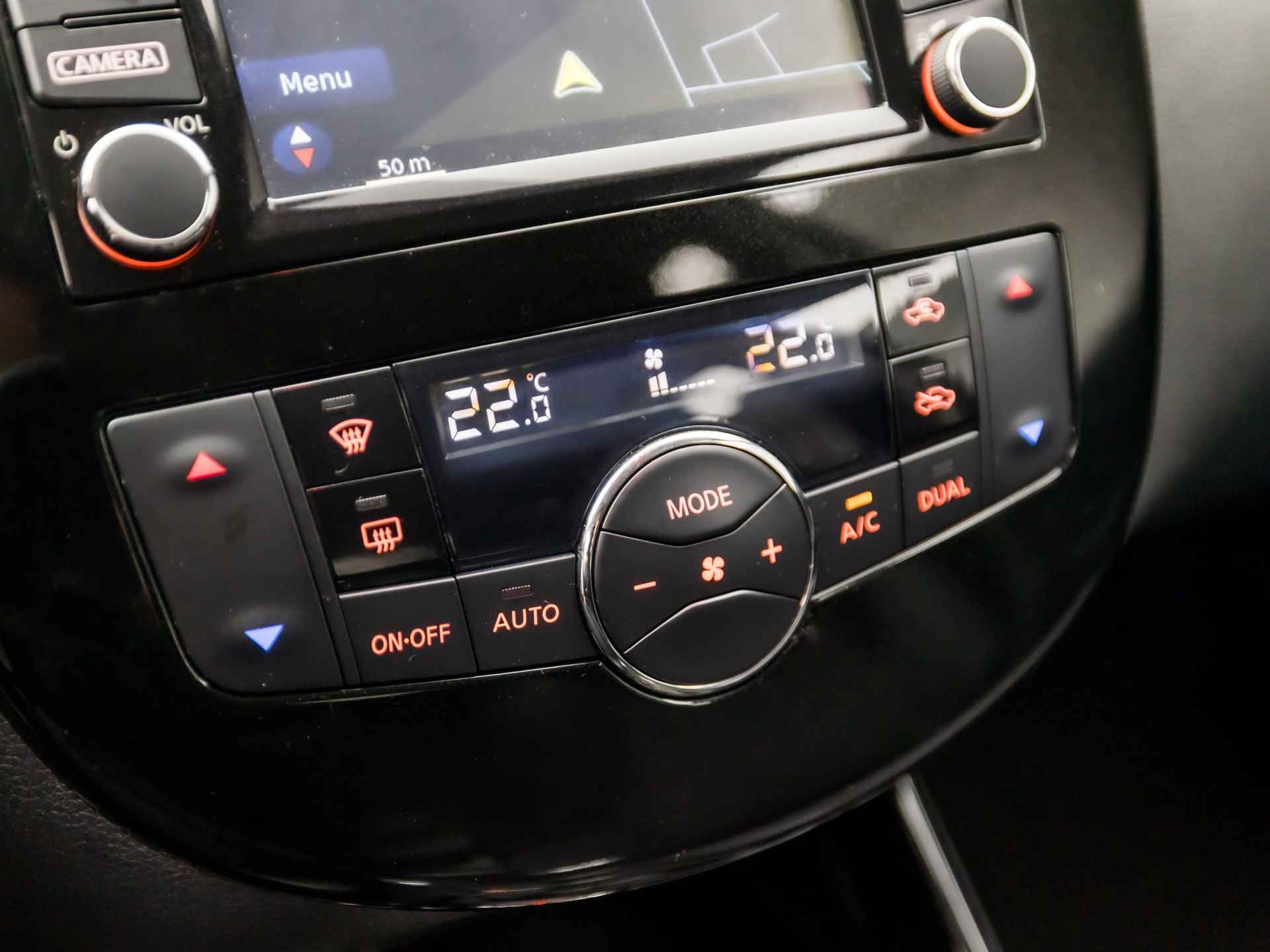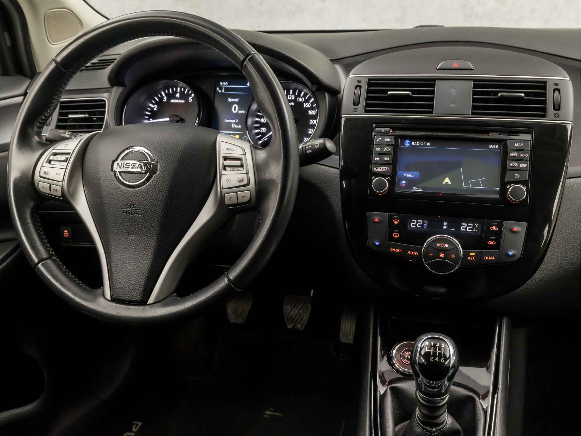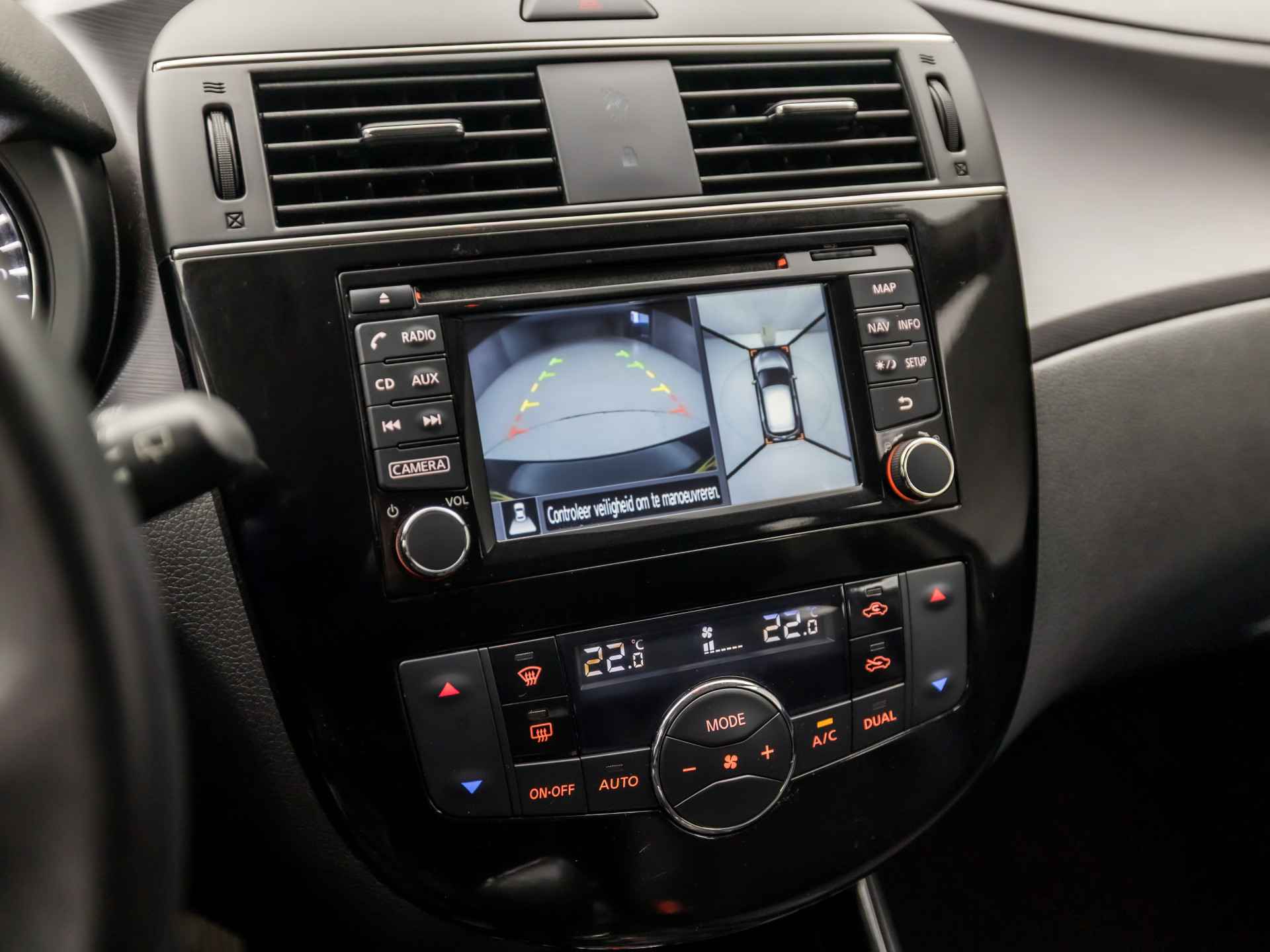 De vier camera's genereren samen een 360 graden beeld rond de auto, zodat u een volledig overzicht hebt van wat er rondom uw auto gebeurt. In deze auto beschikt u natuurlijk over een navigatiesysteem. Het audio-installatiesysteem biedt glasheldere geluidskwaliteit, u bedient dit veilig via het stuurwiel. Bij de luxe van deze auto hoort ook automatische airconditioning. Kom-maar-kom-maar...ho! Zo eenvoudig is het voordeel van parkeersensoren. En zo behulpzaam! Het luxeniveau in deze Nissan is niet alleen gericht op comfort, maar ook op uw veiligheid. Tal van sensoren helpen u om de omgeving in de gaten te houden. De automatisch inschakelbare verlichting zorgt dat automatisch de verlichting wordt ingeschakeld als het donker wordt, wat bijvoorbeeld in tunnels erg handig is. En de regensensor zet de ruitenwissers aan zonder dat u eraan hoeft te denken. Extra opties op deze auto zijn: cruise control, keyless entry, automatisch dimmende binnenspiegel, lederen stuur, isofix-aansluiting en centrale deurvergrendeling met afstandsbediening.