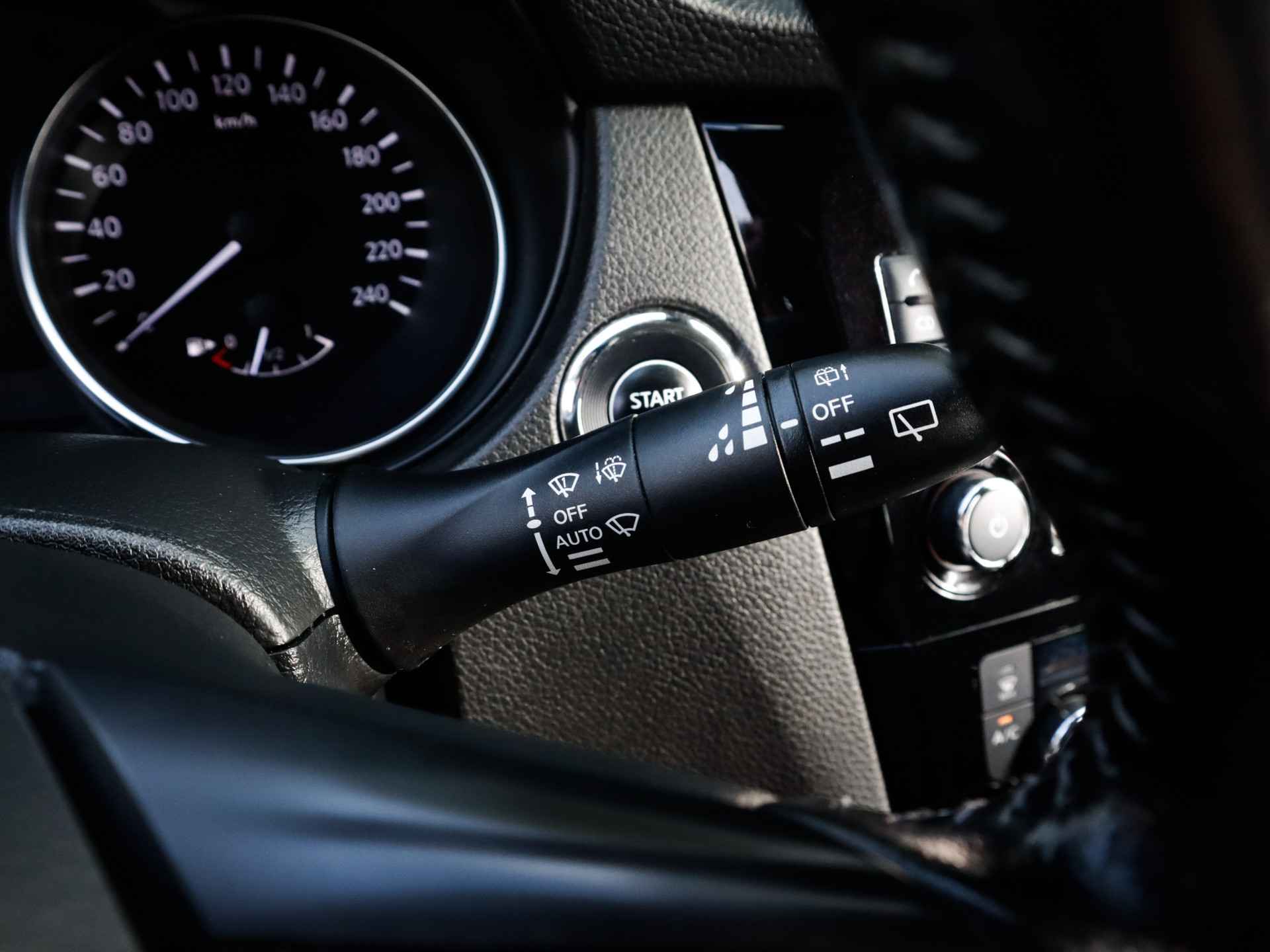 In de Nissan Qashqai heeft uw veiligheid en die van uw omgeving prioriteit. Wat deze auto ook kan, is lezen. Hij 'leest' voor u de verkeersborden tijdens de rit en attendeert u erop door ze op het dashboard te projecteren. Het Lane-keeping systeem zorgt voor een automatisch constante positie binnen de rijstrook. Afdwalen is uitgesloten. Brake assist herkent een noodsituatie en voert de remdruk op om de remweg te verkorten. Bovenop deze veiligheidsfeatures heeft deze Nissan bovendien hill hold functie en bandenspanningcontrolesysteem.