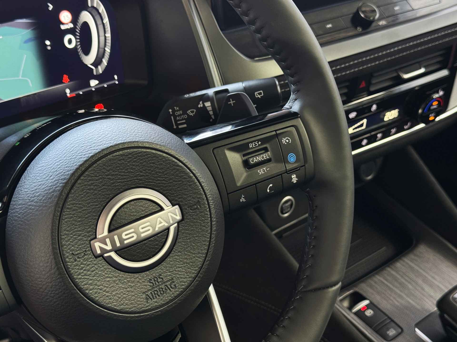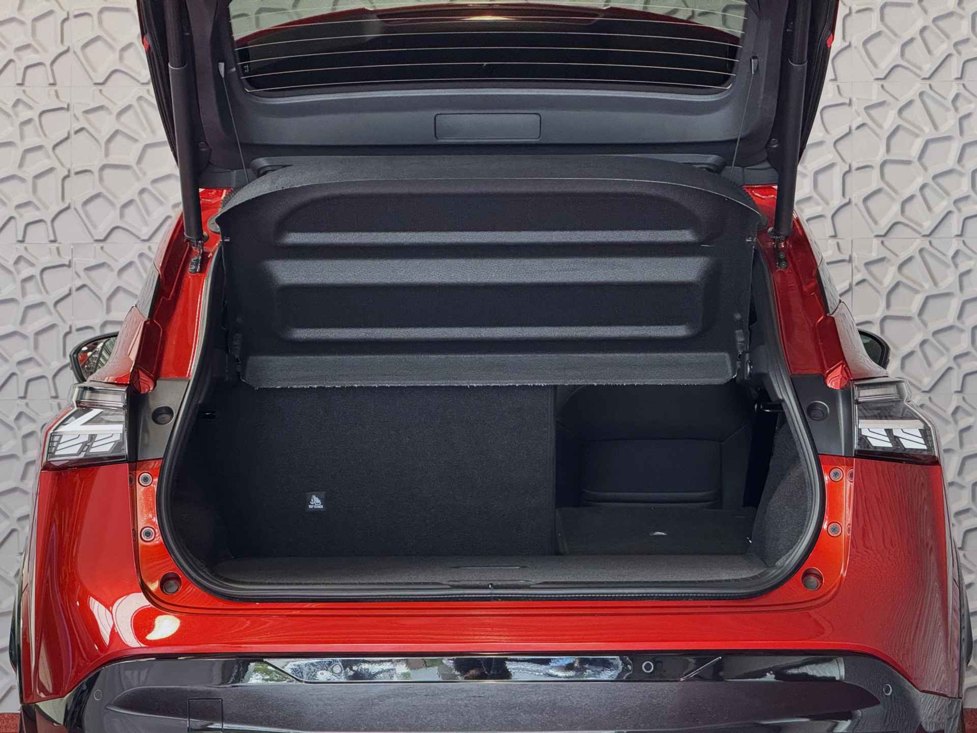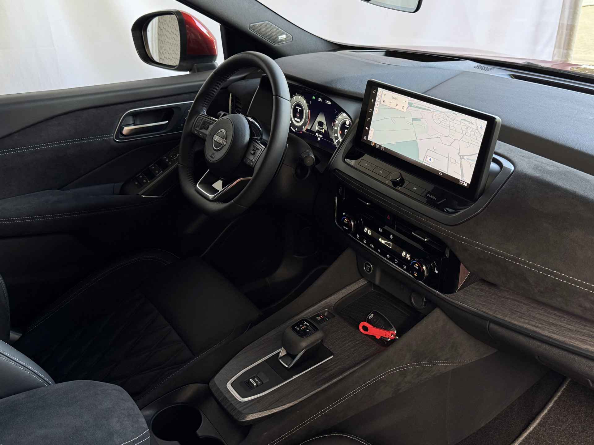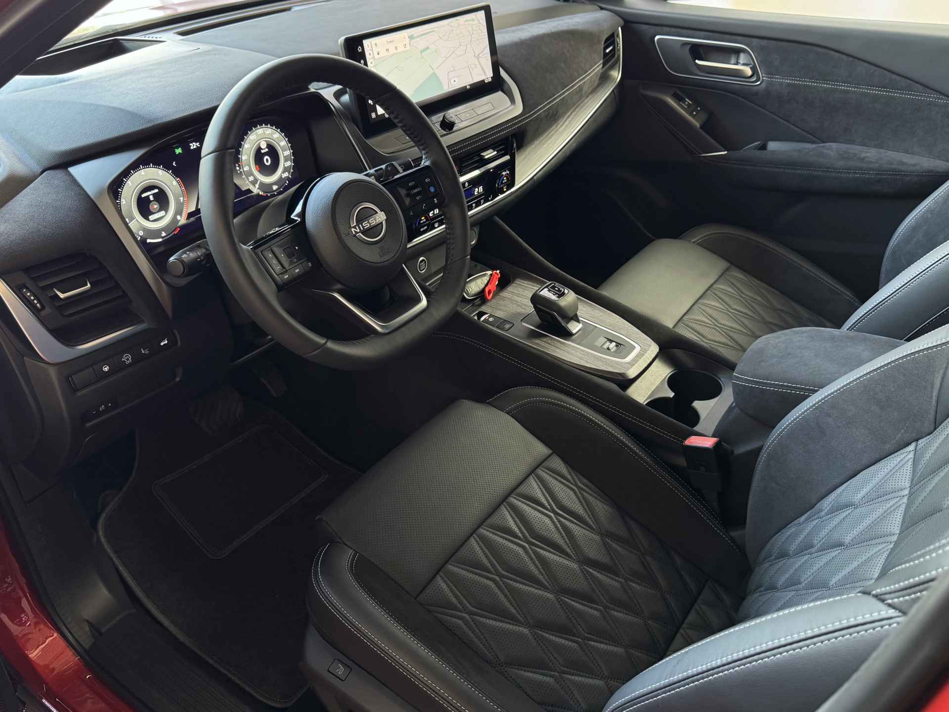 Het interieur van de Qashqai TEKNA+ is ontworpen met oog voor detail en hoogwaardige materialen. De luxe lederen bekleding, verwarmde voorstoelen en elektrisch verstelbare stoelen met geheugenfunctie zorgen voor optimaal comfort. Het ruime en ergonomische ontwerp van de cabine biedt een premium rijervaring, terwijl het panoramische dak zorgt voor een open en lichte ambiance.