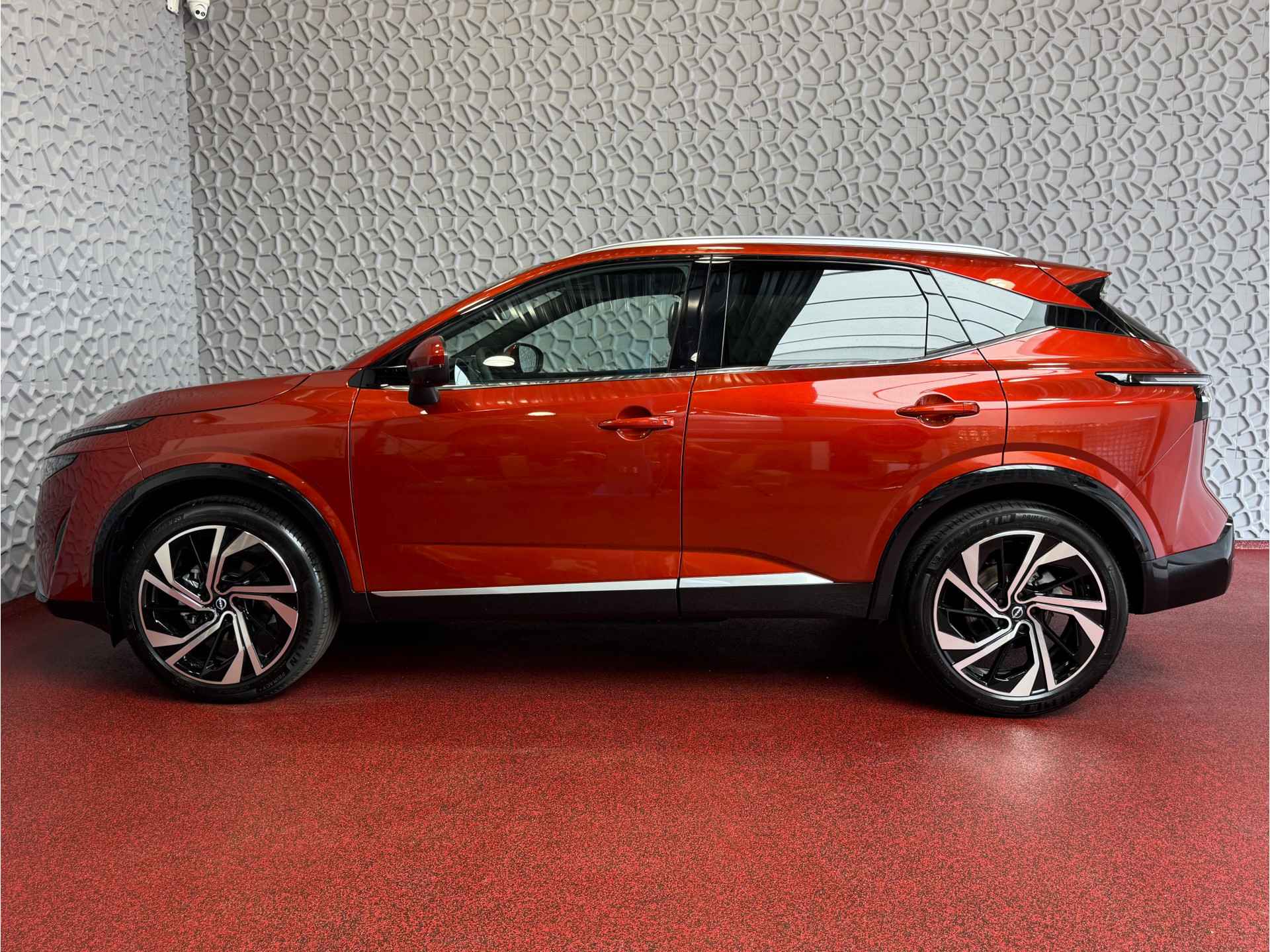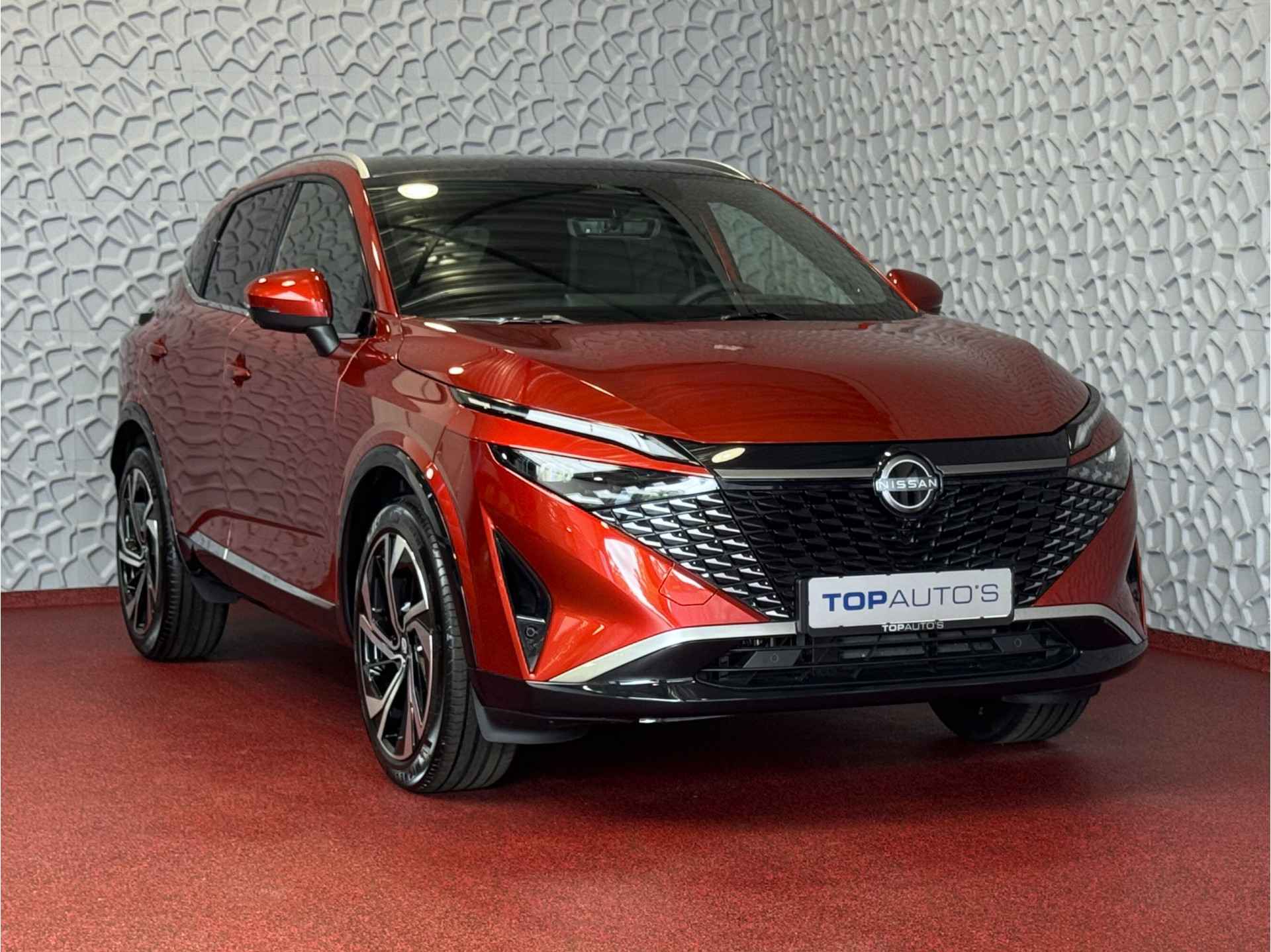 Uniek aan deze aanbieding: wij bieden deze bijna nieuwe Nissan Qashqai TEKNA+ aan voor de prijs van een gebruikte auto! U profiteert daarbij nog steeds van de volledige fabrieksgarantie, waardoor u zonder zorgen kunt genieten van uw nieuwe SUV. Bovendien leveren wij de auto in uw eigen woonplaats, wat het aankoopproces nog gemakkelijker maakt.