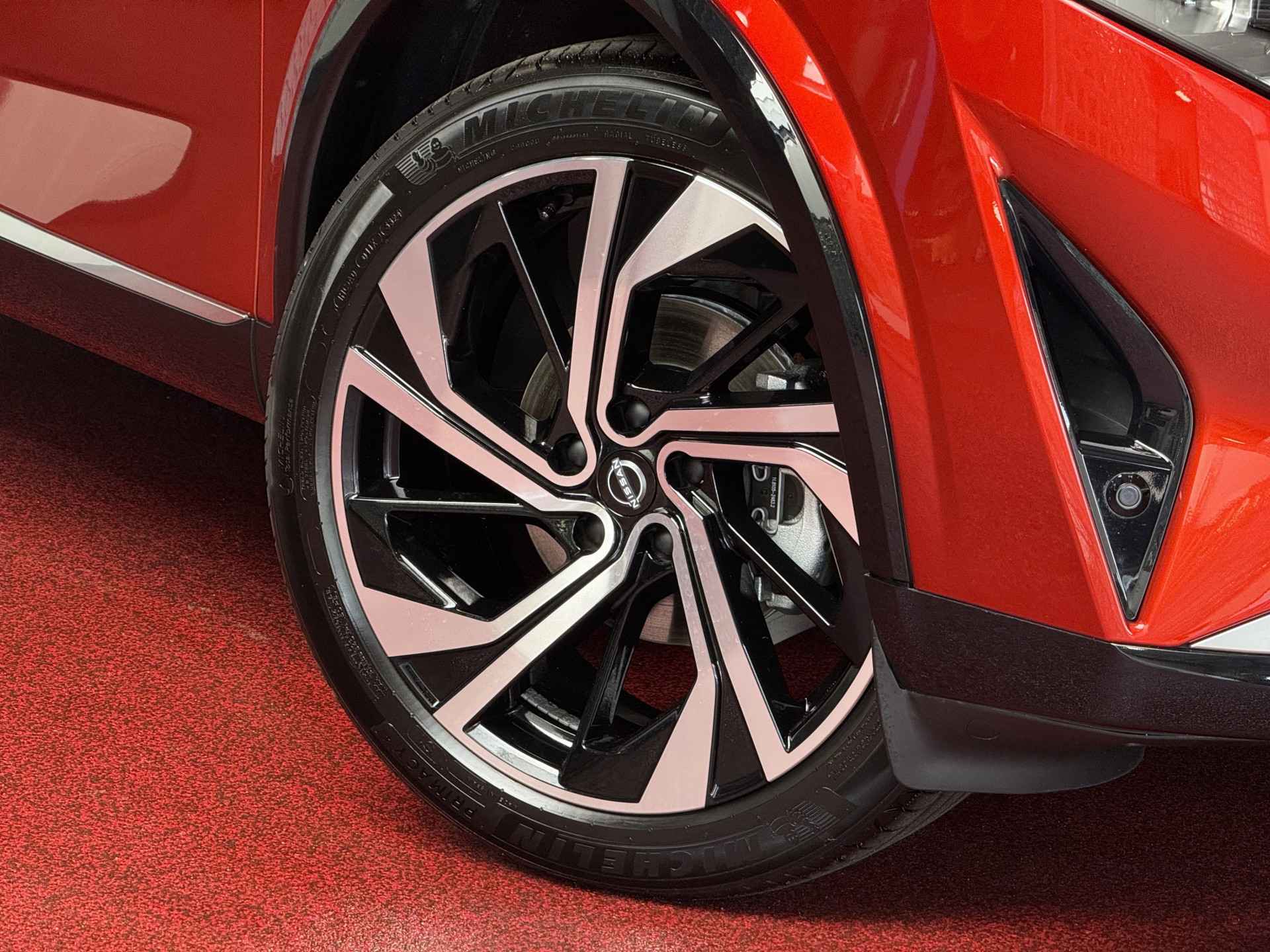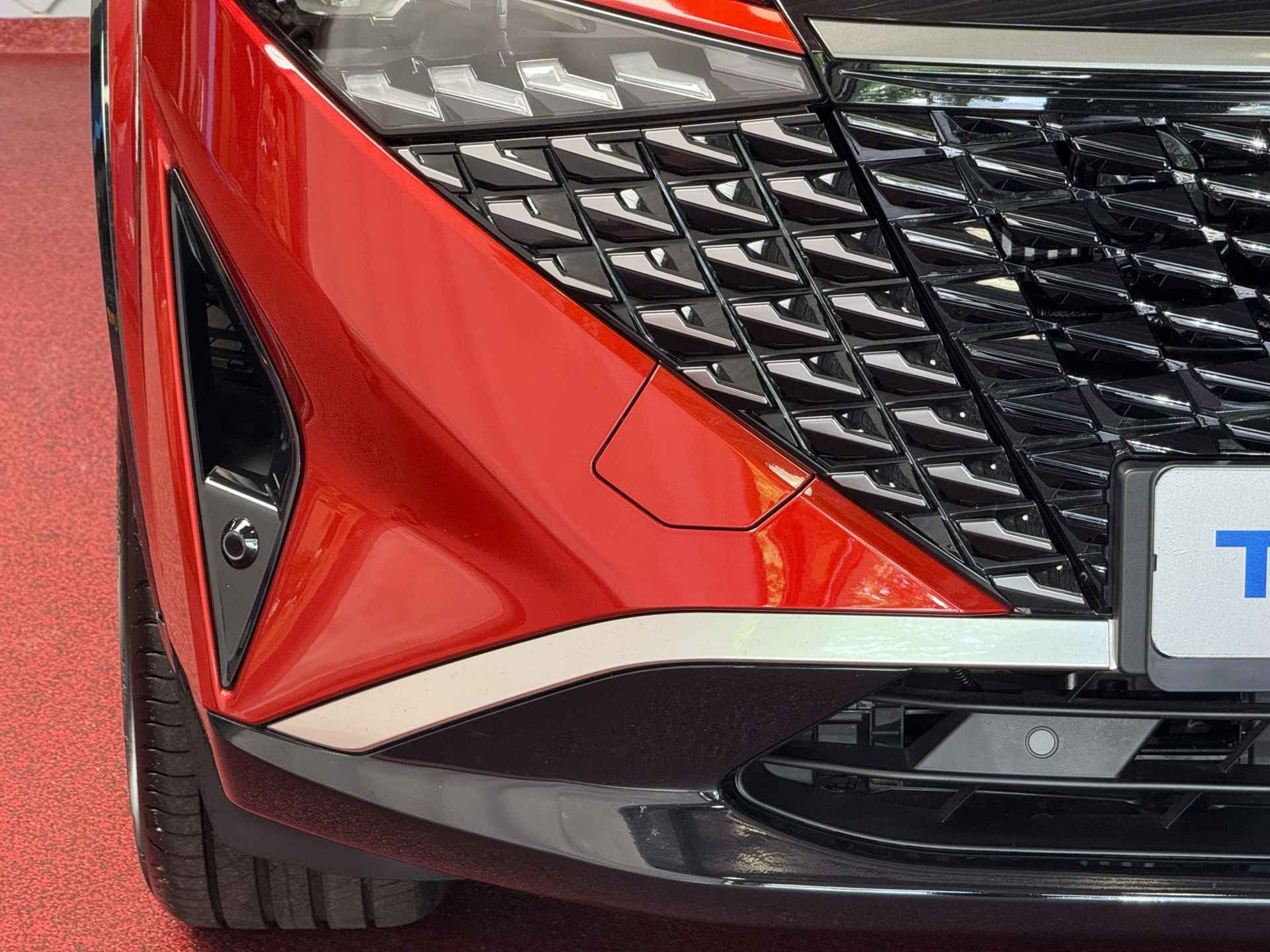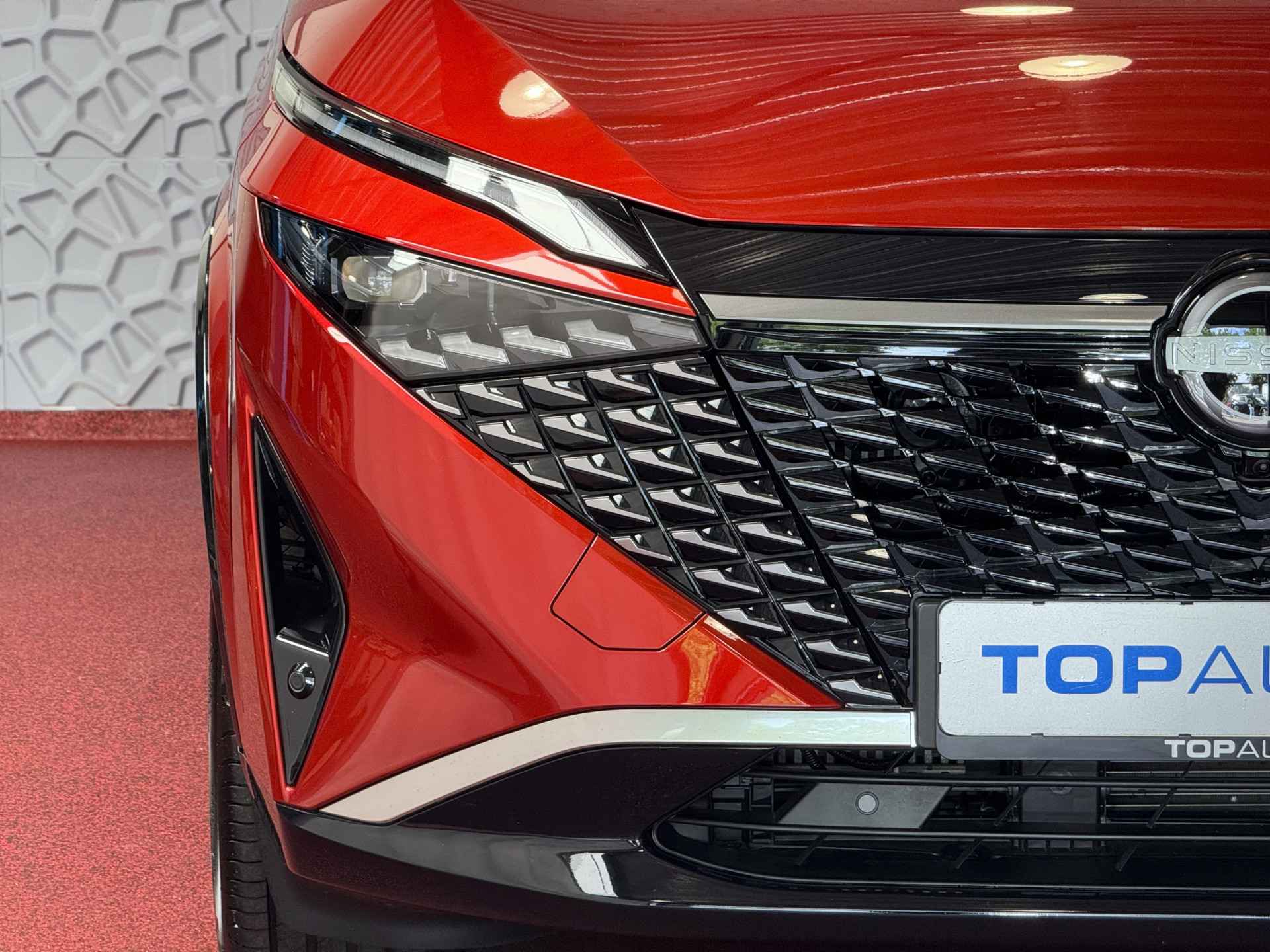 Het exterieur van de Qashqai TEKNA+ straalt verfijning en sportiviteit uit. De kenmerkende V-Motion grille, in combinatie met de strakke lijnen en 20-inch lichtmetalen velgen, zorgt voor een krachtige uitstraling. De innovatieve matrix LED-koplampen en LED-achterlichten verhogen niet alleen de veiligheid, maar dragen ook bij aan de moderne en premium look van deze SUV. Het panoramische dak biedt extra lichtinval en een ruimtelijk gevoel, perfect voor een luxueuze rijervaring.