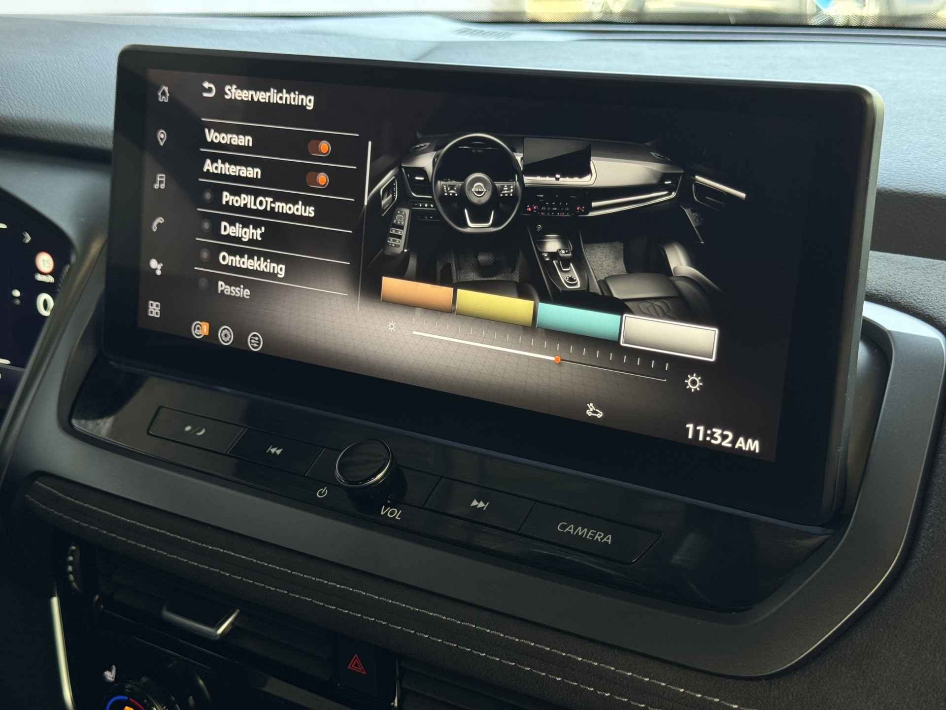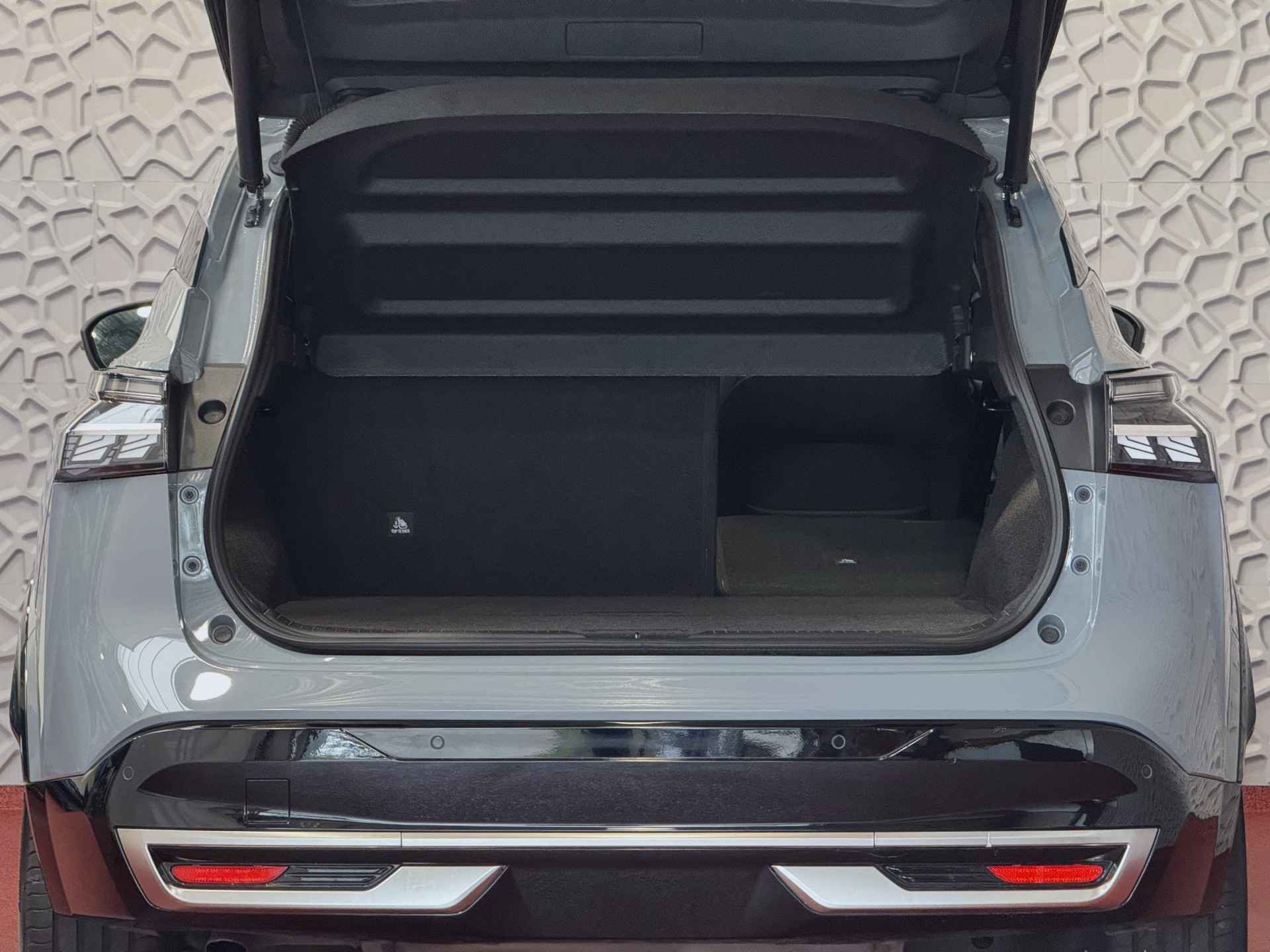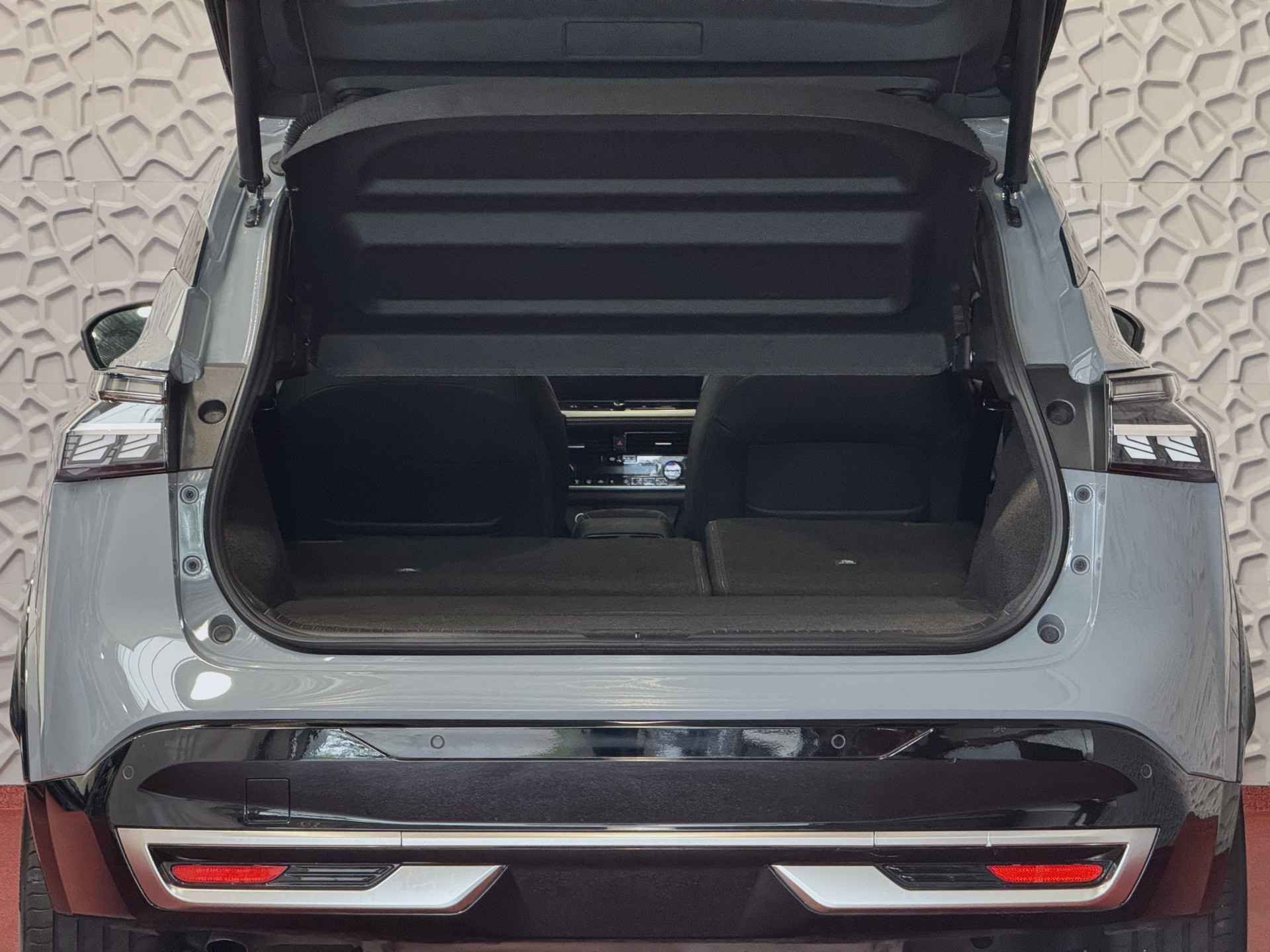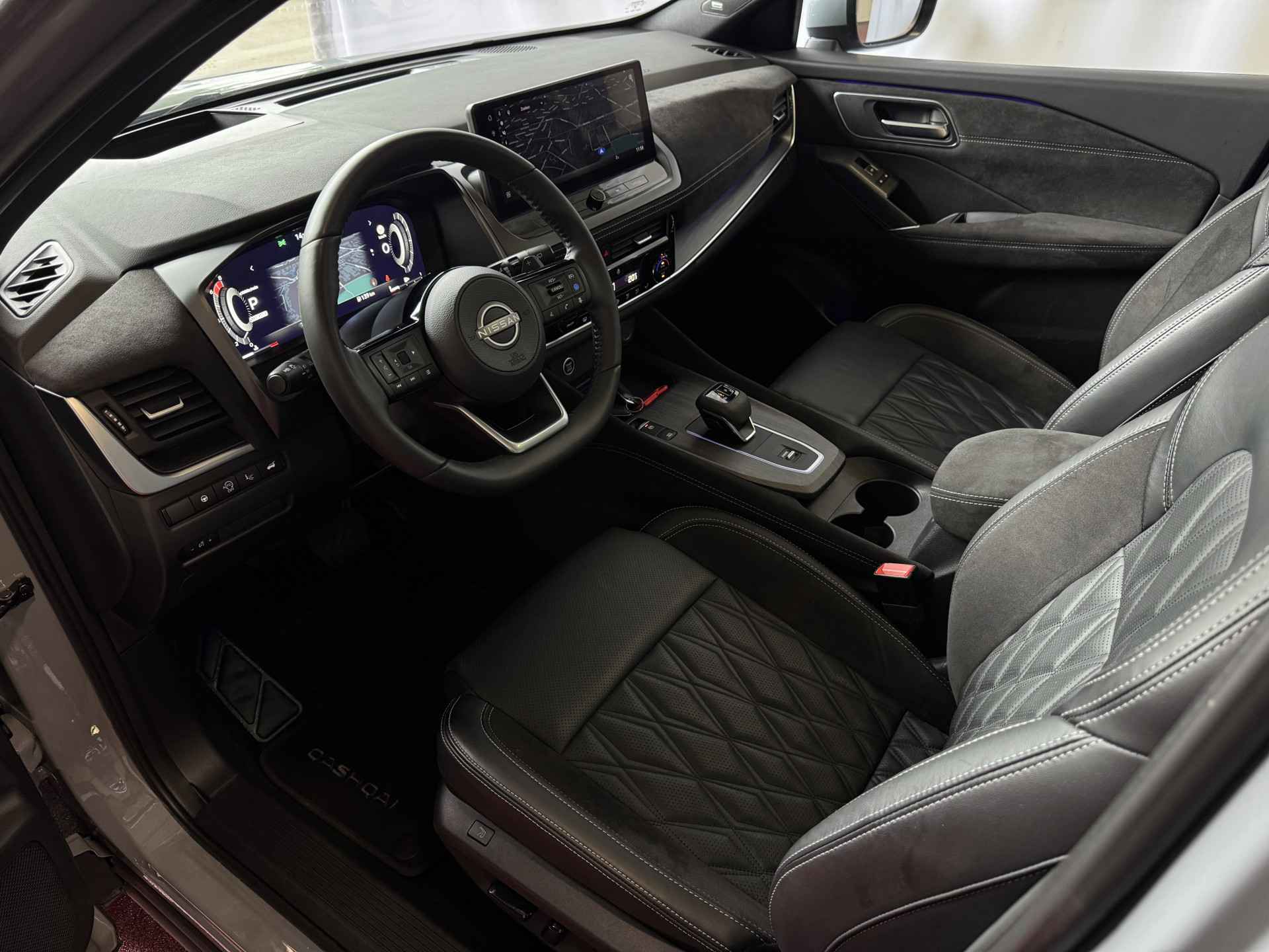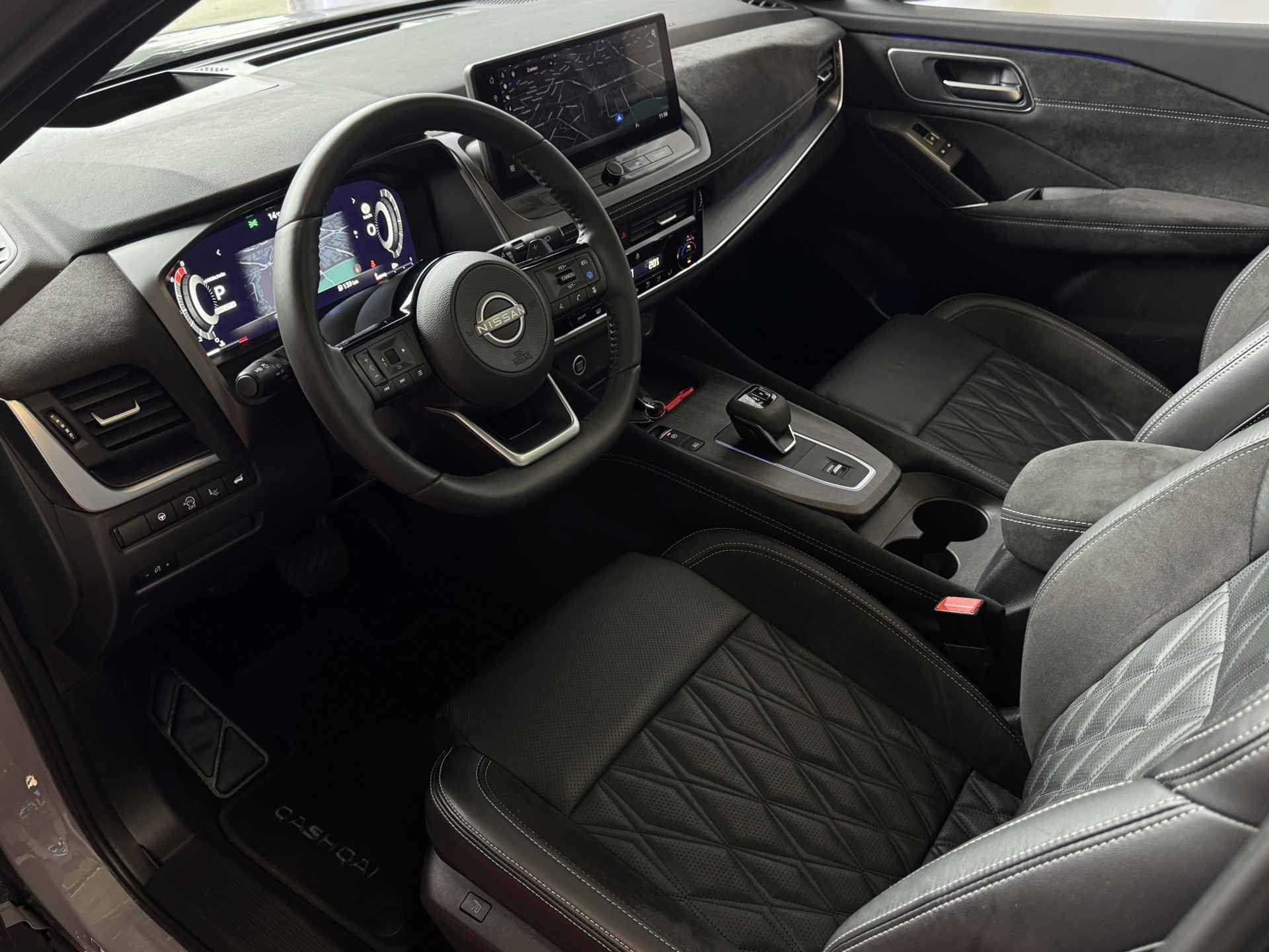 Het interieur van de Qashqai TEKNA+ is ontworpen met oog voor detail en hoogwaardige materialen. De luxe lederen bekleding, verwarmde voorstoelen en elektrisch verstelbare stoelen met geheugenfunctie zorgen voor optimaal comfort. Het ruime en ergonomische ontwerp van de cabine biedt een premium rijervaring, terwijl het panoramische dak zorgt voor een open en lichte ambiance.