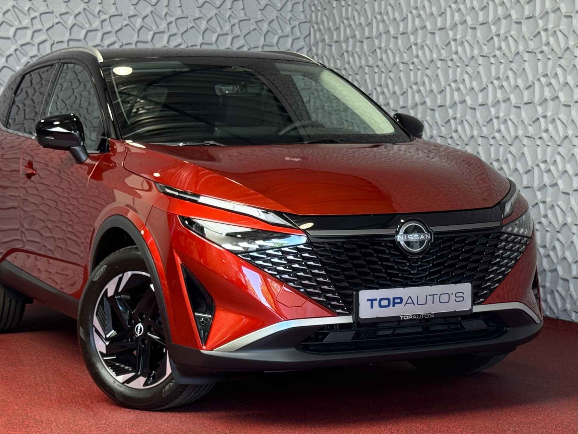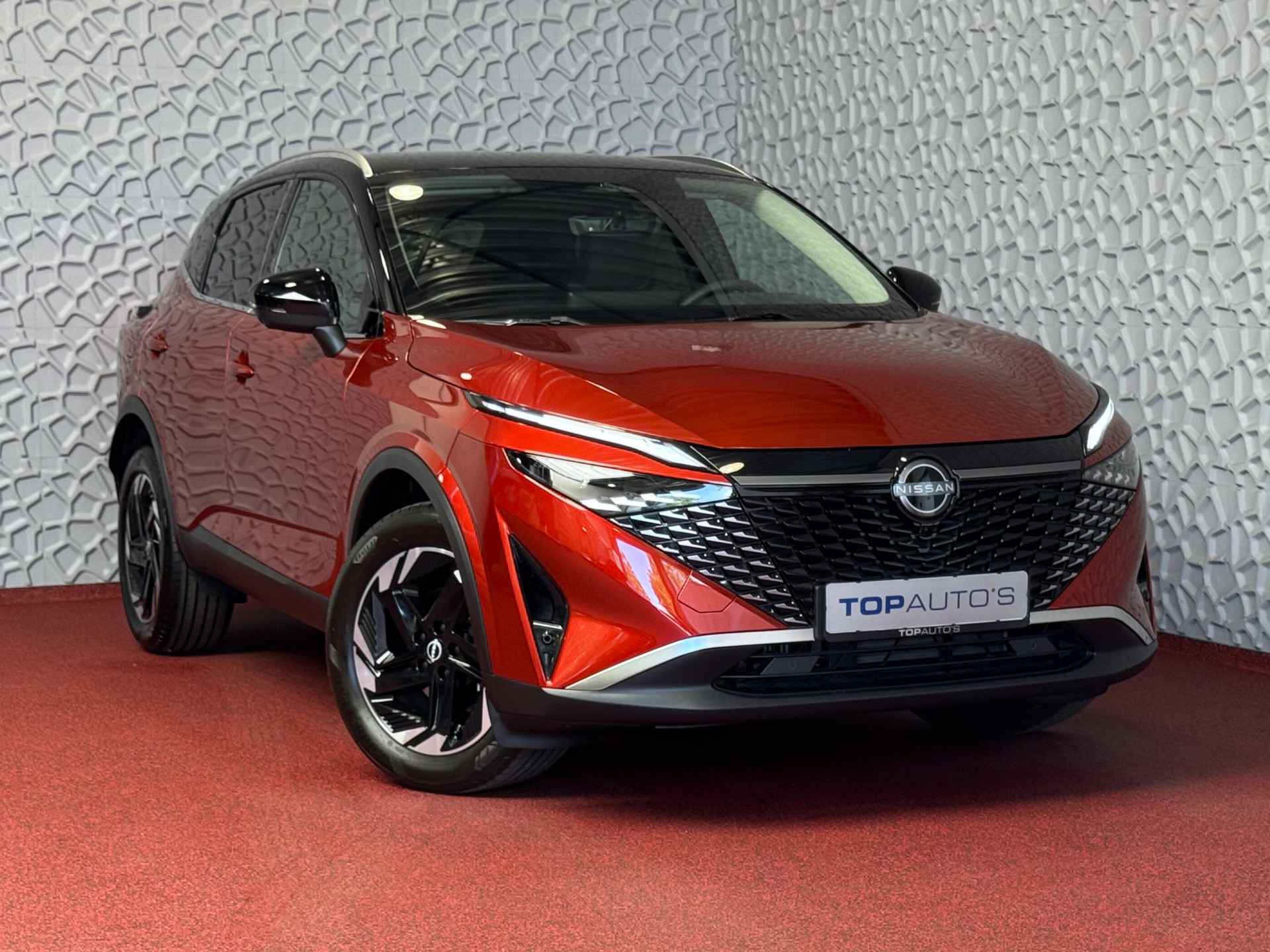 Deze Nissan is van 02/2025. Schitterende Kleur SUNSET Red metallic.