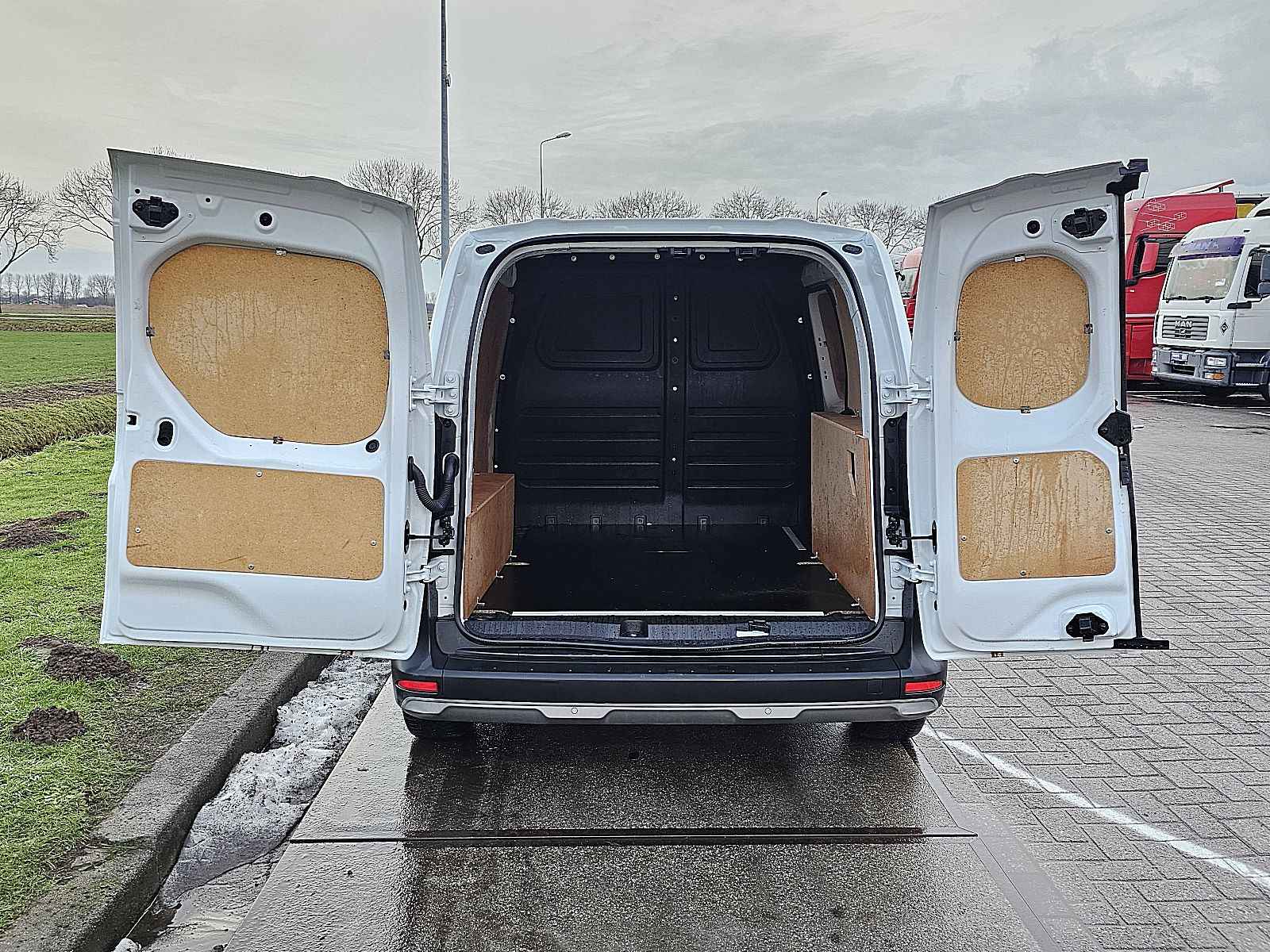 Configuratie: 4x2, Laadvermogen: 637 kg, Eigen gewicht: 1583 kg, Totaalgewicht: 2220 kg, Trekgewicht ongeremd: 750 kg, Trekgewicht middenas geremd: 1500 kg, Soort cabine: enkele cabine, Cruise control, Airconditioning, Aantal airbags: 1, Parkeerhulp: Voor en achterkant, Elektrische ramen, Elektrische spiegels, Tussenschot, Radio/cassette, Carplay, Kleur: Wit, Verwarmde spiegels, Achteruitrij camera, Soort lampen: Halogeen, Climatecontrol, Bluetooth, Dodehoek detectie, Brandstof: Elektrisch, Soort versnellingsbak: Automaat, Stuurbekrachtiging, ABS (Anti Blokkeer Systeem), ASR (Anti Slip Regeling), Start accu, Laadruimte betimmerd, Imperiaal: Geen, Zijdeuren: 1, Achtersluiting: dubbele deur, Centrale vergrendeling, Zitplaatsen: 2, Stoelopstelling: 1+1, Stoelbekleding: leder, Stoel verstelling: Handmatig, Reservewiel, Banden soort: All weather banden