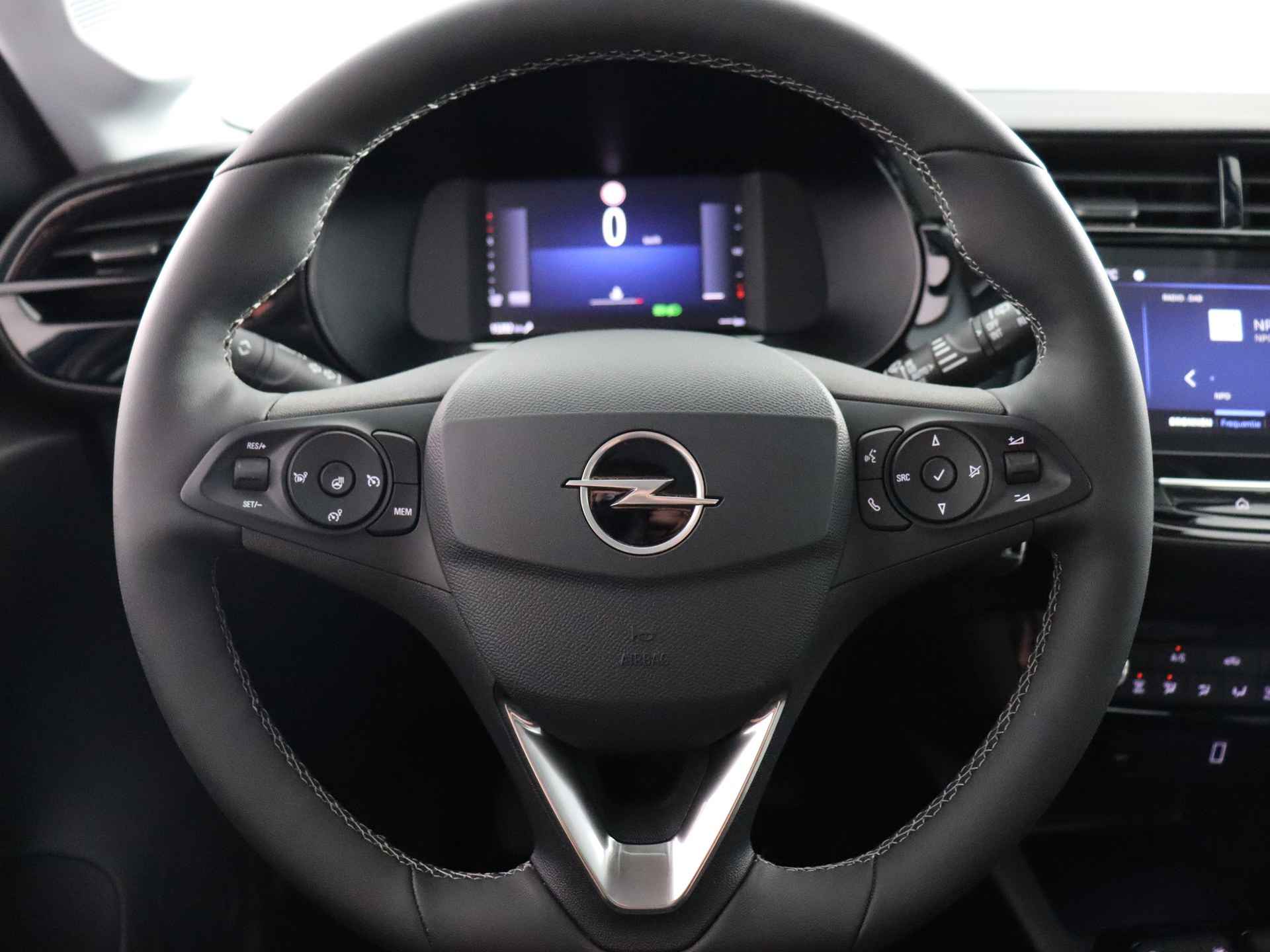 Wat ook opvalt, is de strakke en overzichtelijke informatie die het digitale dashboard levert. Zodra u naar de 'R' schakelt, gaat de achteruitrijcamera in werking en heeft u een perfect zicht op alles wat zich achter de auto afspeelt. Ook onderweg wilt u superieure geluidskwaliteit naar eigentijdse normen. Vandaar het uitstekende audiosysteem met DAB-radio. Achter het stuur van deze Opel bent u niet alleen. De auto kijkt als het ware met u mee tijdens de rit. De regensensor schakelt de ruitenwissers in als het nodig is en de automatisch inschakelbare verlichting doet de lichten voor u aan. Cruise control houdt automatisch de ingestelde snelheid vast. Zo kunt u zich volledig op het verkeer concentreren. En dan is deze auto ook nog eens voorzien van sportstuurwiel, airconditioning, automatisch dimmende binnenspiegel, centrale deurvergrendeling met afstandsbediening en boordcomputer.