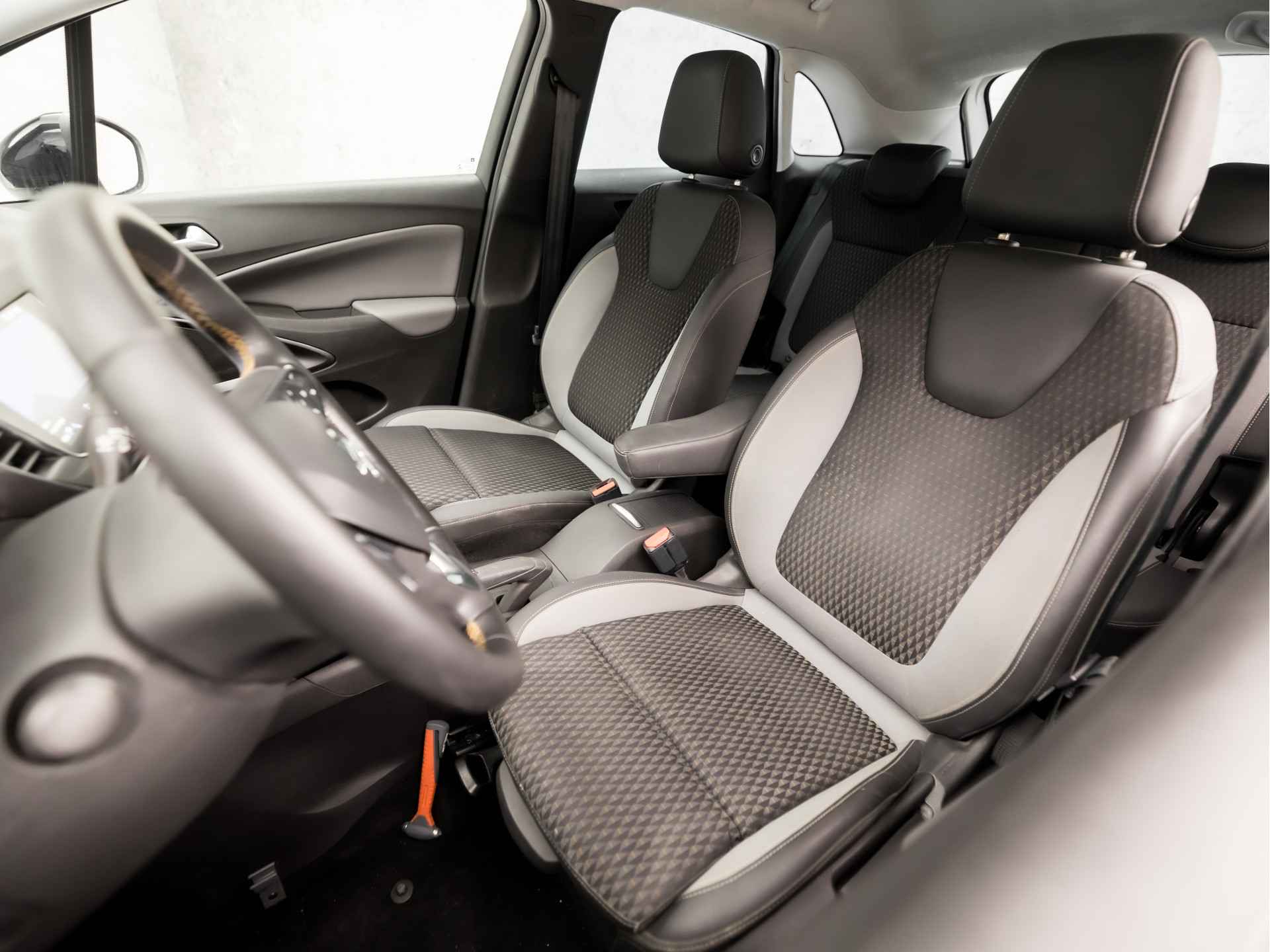 Deze zeer gunstig geprijsde Opel Crossland X is zonder overdrijven echt een fantastische occasion. Hij heeft een benzinemotor en een handgeschakelde zesversnellingsbak. De lederen bekleding geeft het interieur een rijke en luxe uitstraling. Deze Opel Crossland X legt bestuurder én bijrijder compleet in de watten met de verwarmbare voorstoelen. Mooi om te zien en heerlijk om in te zitten zijn de sportstoelen, die u onderweg optimale ondersteuning geven. Natuurlijk kunt u zonder. Maar waarom? Lekker toch, zo'n verwarmd stuurwiel? Ook 17 inch lichtmetalen velgen, LED koplampen, donker getint glas achter, in delen neerklapbare achterbank, LED-achterlichten en snelheidsafhankelijke stuurbekrachtiging horen tot de voorzieningen op deze auto.