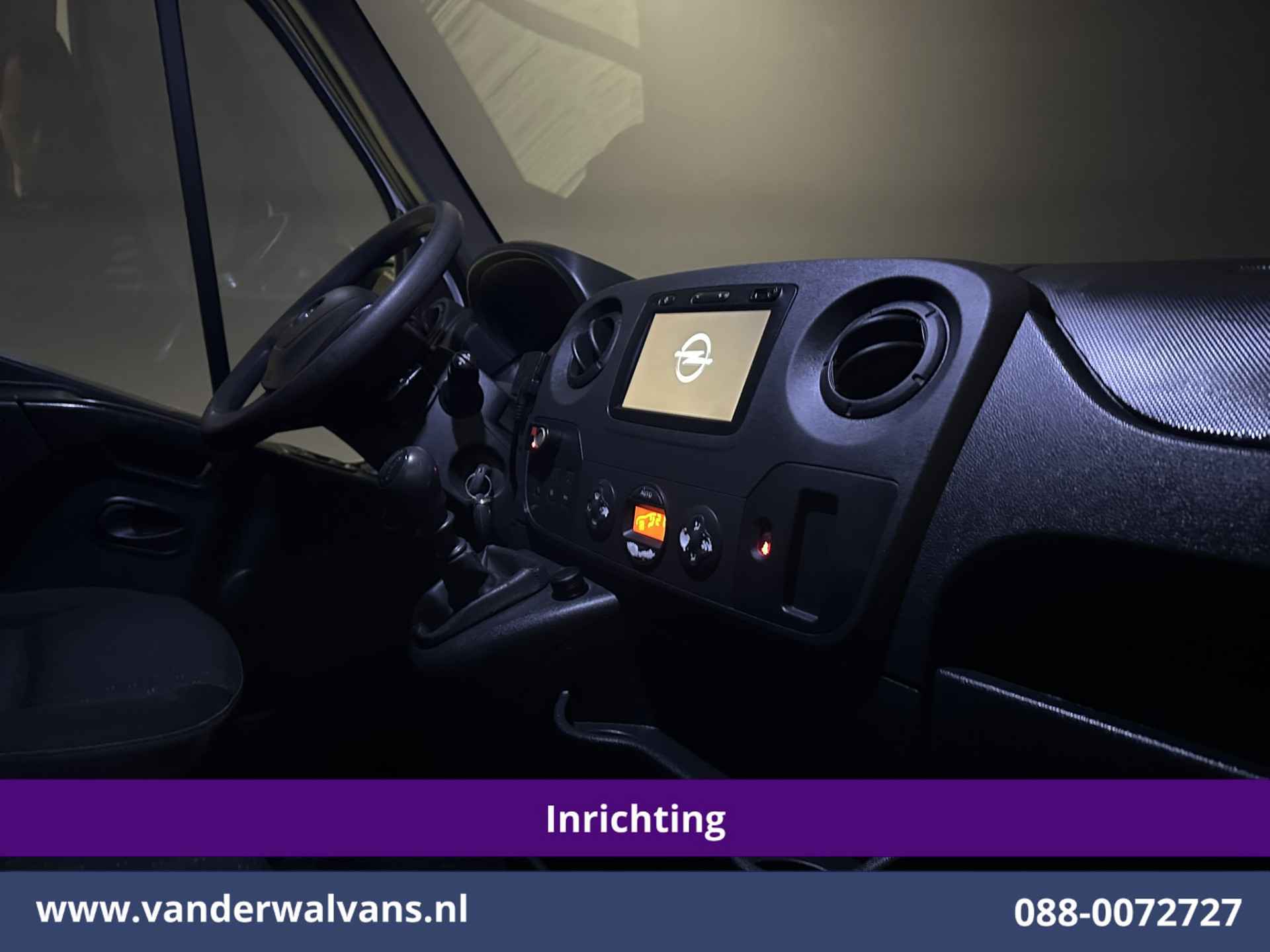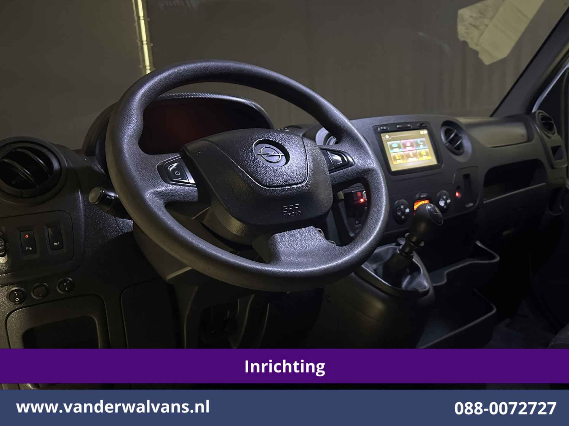 146pk sterke Opel Movano L2H2 Euro6 met inrichting en camera. Geheel dealer onderhouden en voorzien van airconditioning, imperiaal, navigatie, 2500kg trekhaak, cruisecontrol, parkeersensoren, bijrijdersbank en bluetooth telefoonvoorbereiding.