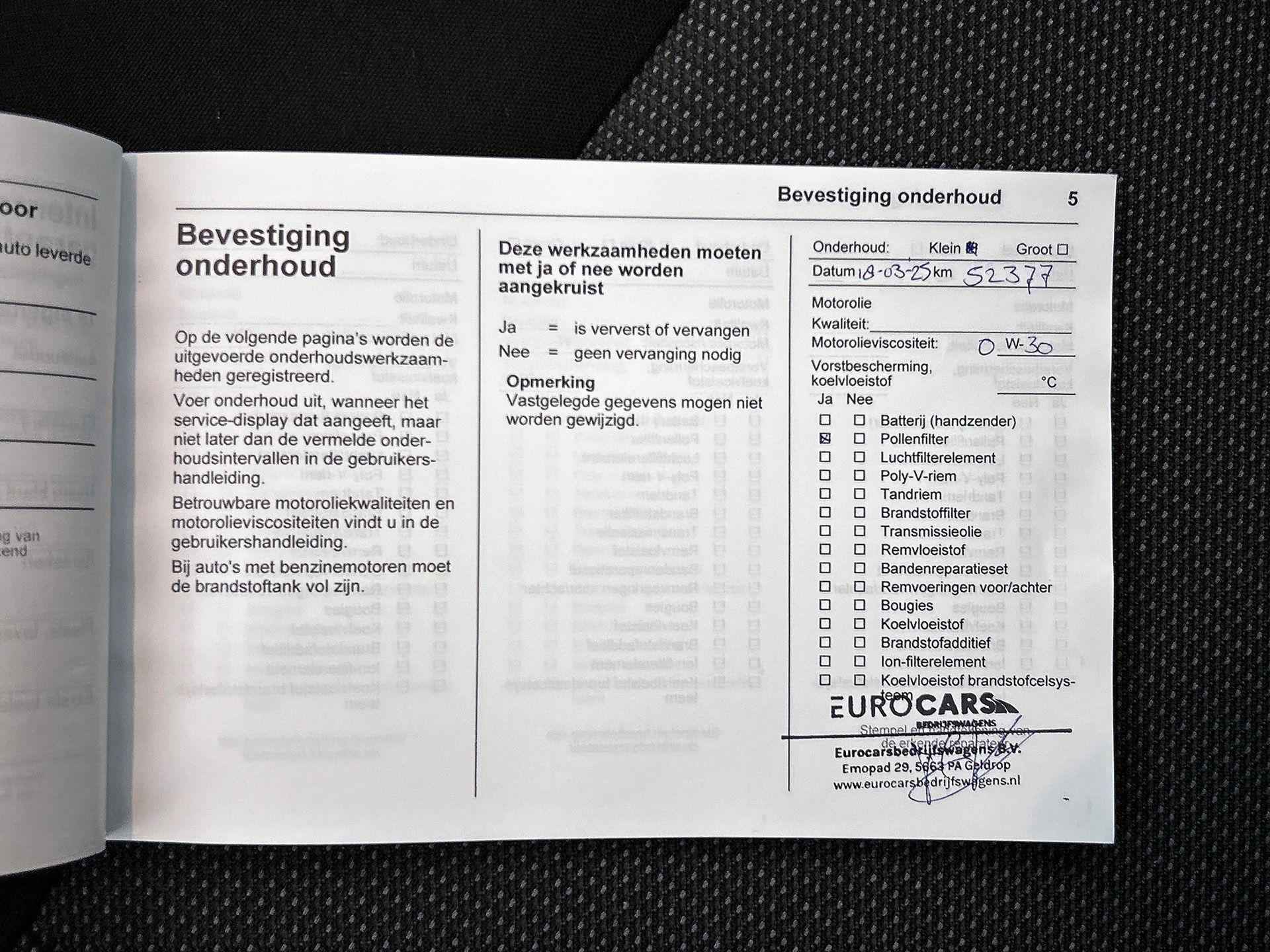 - Controleren vloeistofniveaus, indien nodig op niveau brengen - Kosten tenaamstelling - Vrijwaringsbewijs van de (mogelijke) inruilauto