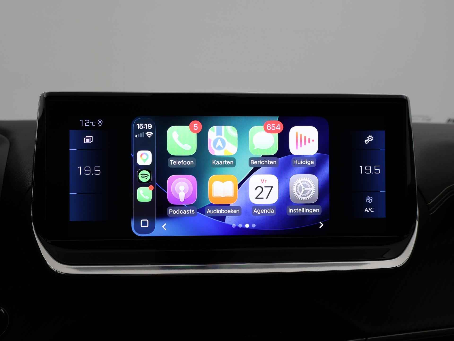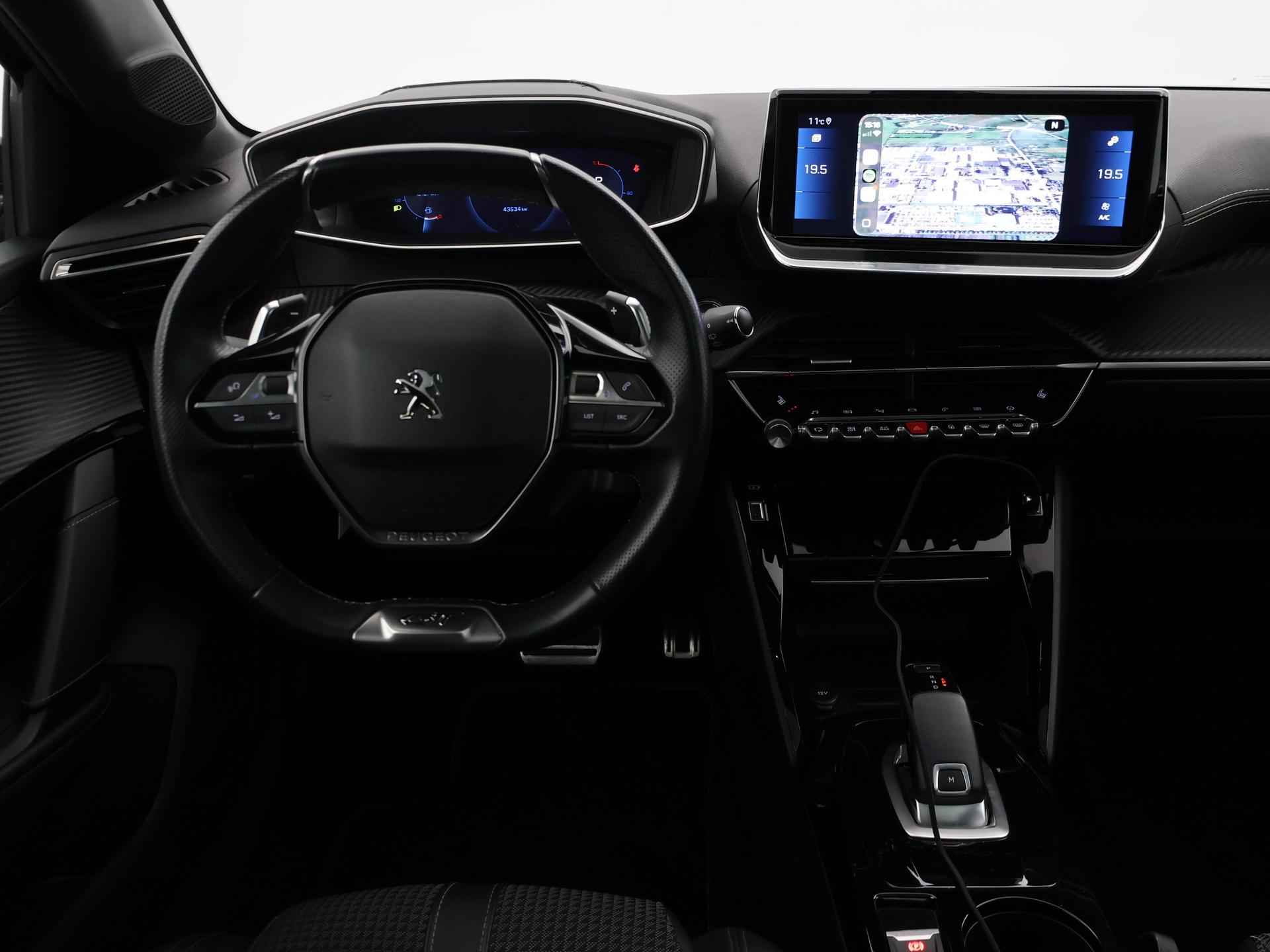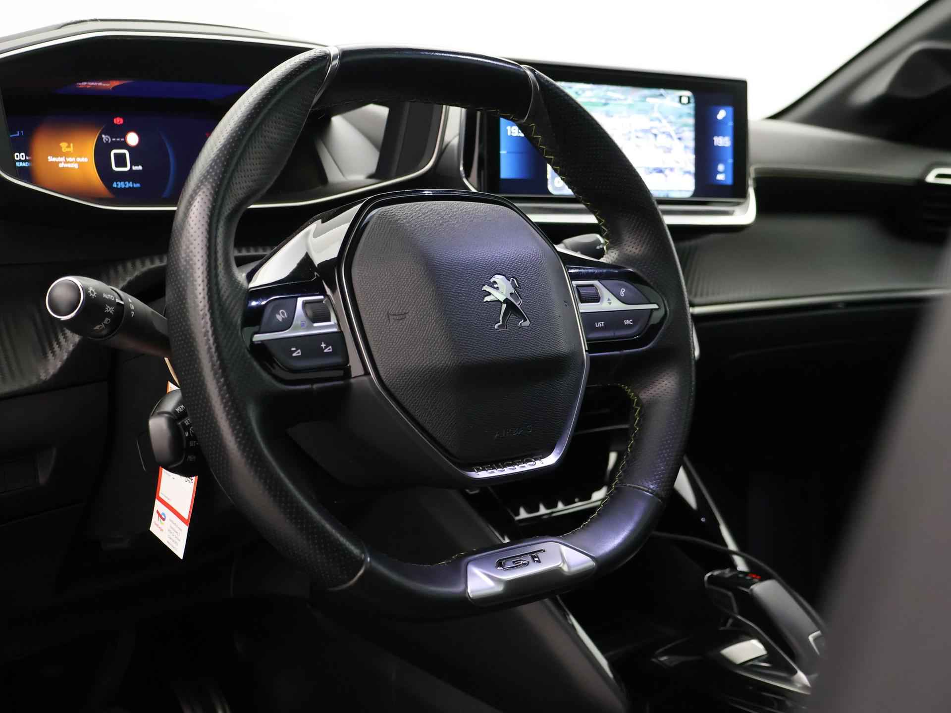 Nieuw model Peugeot 208 1.2 PT 130 PK GT-Line automaat, Bij 43.194 km nog groot onderhoud met 4 nieuwe banden en nieuwe remmen achter gehad, Extreem volle en luxe uitvoering met vrijwel alle opties! GT-Line interieur + exterieur, Digitale cockpit met navigatieweergave 3 dimensionaal, Panorama-dak, Sfeerverlichting interieur met verschillende kleuren, Apple carplay/Android auto met verschillende apps waaronder Spotify, Whatsapp en Flitsmeister, Stoelverwarming met 3 standen, Bluetooth telefoonverbinding met audiostreaming, LED koplampen, LED achterlichten, Dubbele sportuitlaat, Sportstoelen half-leder, Privacy glass, Lichtmetalen velgen, Cruise control, Climate control, Navigatiesysteem met kaartweergave, DAB Digitale radio, Achteruitrijcamera.