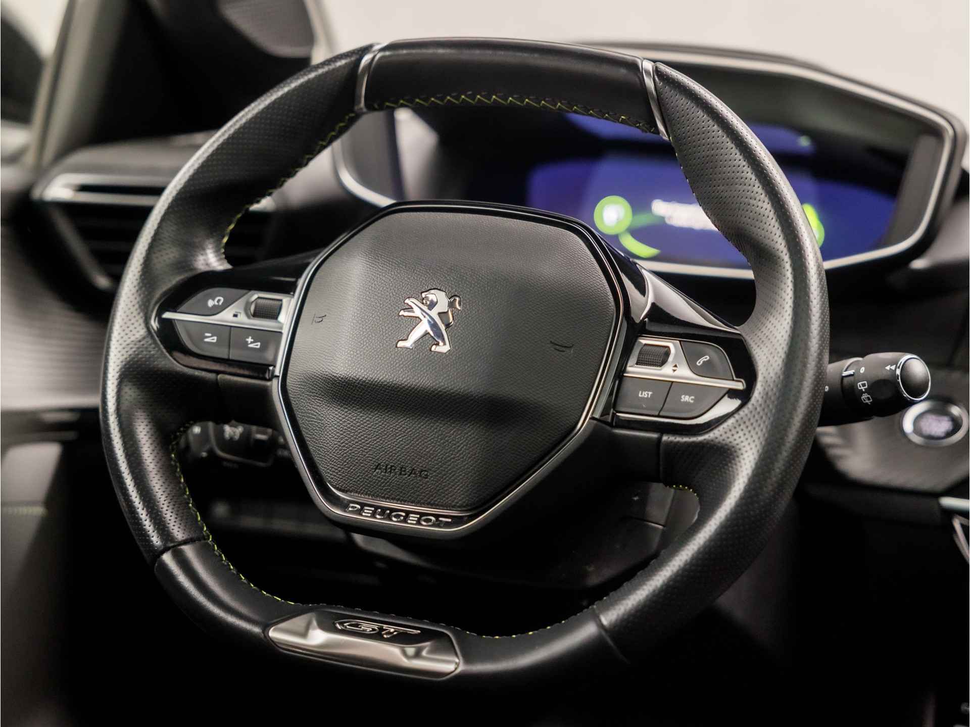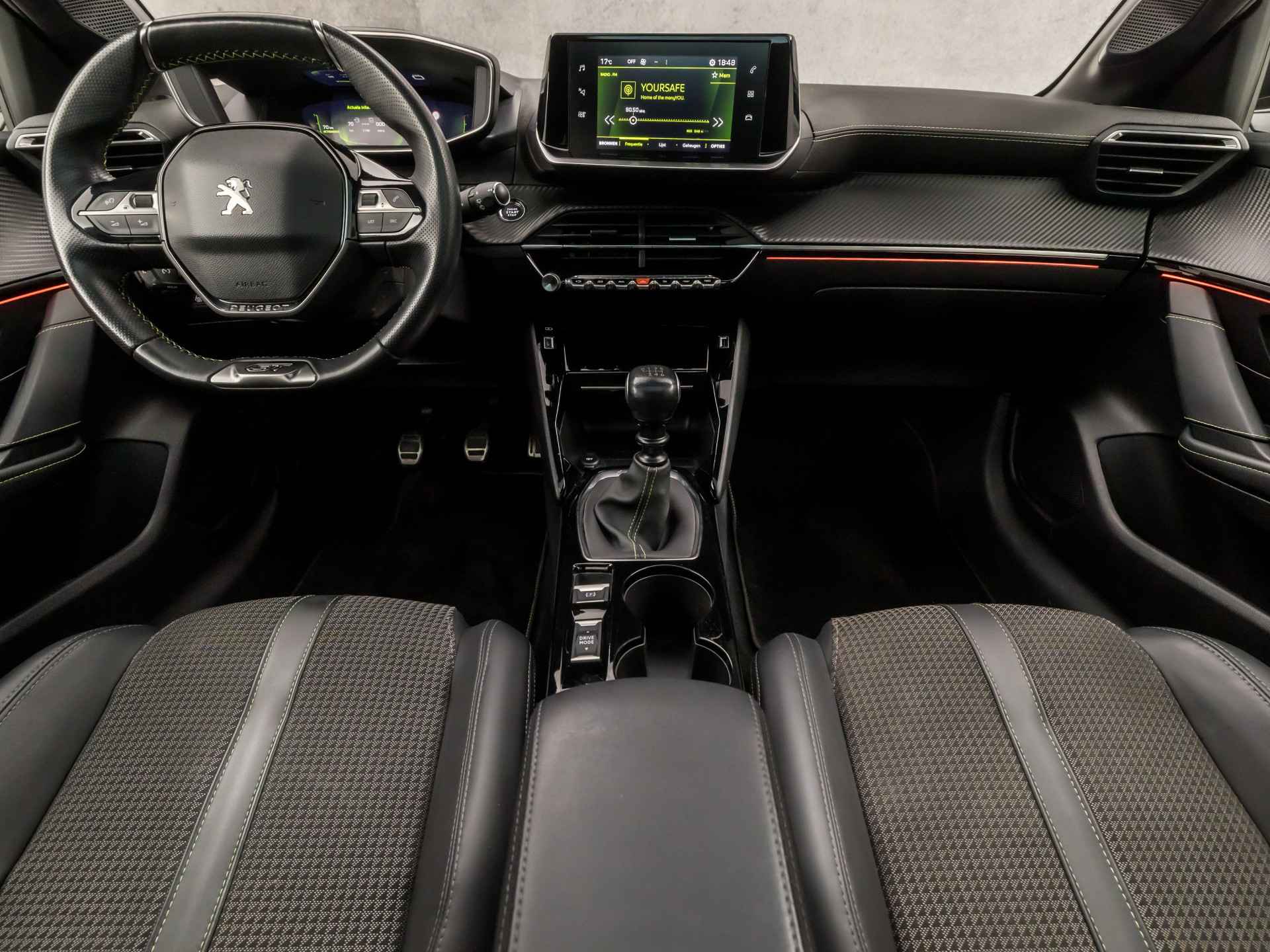 Deze auto is voorzien van een digitaal dashboard waarmee u de cockpit-interface kunt personaliseren. De 360 graden camera wordt mogelijk gemaakt door vier camera's die tezamen werken om zo een uitgebreid zicht te bieden, wat van grote waarde is bij het navigeren door smalle straatjes en parkeerplekken. Adaptive cruise control houdt de ingestelde snelheid vast en houdt afstand tot het voertuig voor u. Spraaksturing is onderdeel van de uitrusting van deze auto. Met uw stem kunt u de belangrijkste voertuigfuncties bedienen. De speciale app verbindt met Connected Services, die de status van vitale functies bijhoudt en waarschuwt als u bijvoorbeeld moet tanken, de bandenspanning moet controleren of olie moet bijvullen. U bent in deze Peugeot ook voorzien van automatische airconditioning, draadloos opladen, DAB ontvangst, regensensor, sportstuurwiel en automatisch dimmende binnenspiegel.