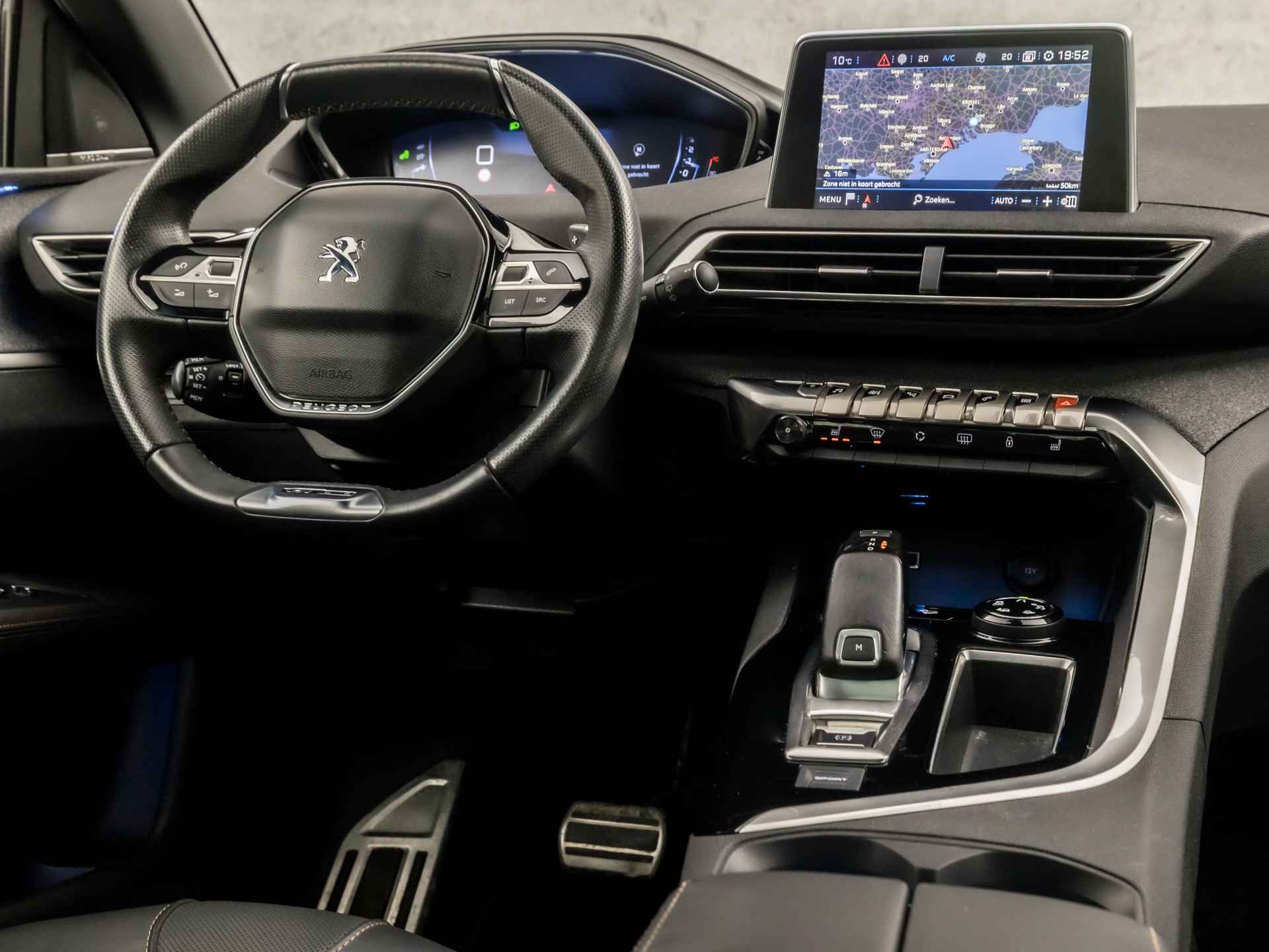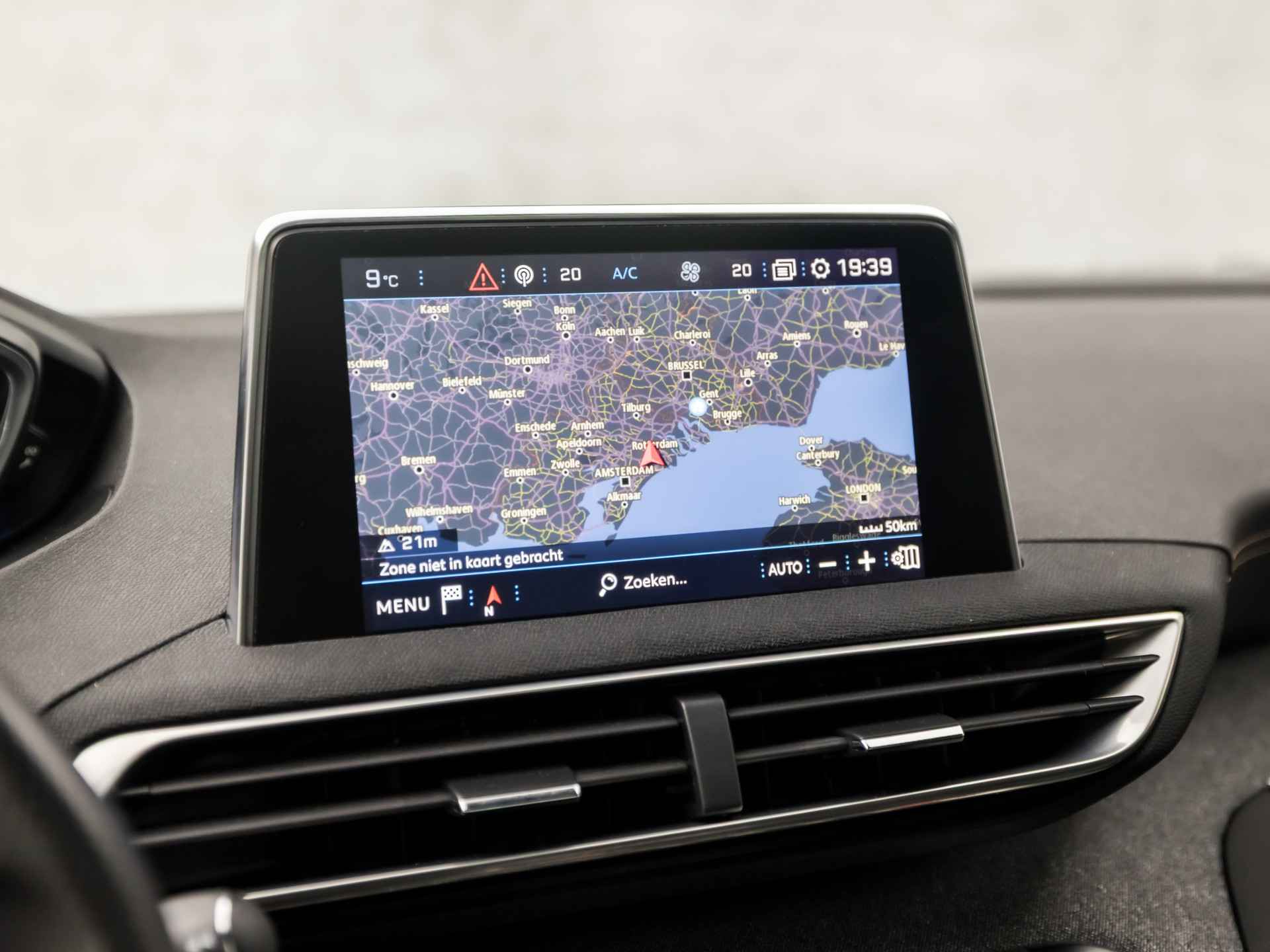 De 360 graden camera op deze auto wordt verzorgd door vier geavanceerde camera's. Het biedt garantie van uitstekende beeldkwaliteit. Deze Peugeot 3008 is voorzien van remote services. Via uw smartphone bedient u diverse functies ook op afstand en krijgt u informatie over de status van uw auto. Laat u onderweg niet afleiden, de bediening van het audio-installatiesysteem en ook het navigatiesysteem gaat met knoppen op het stuur. Natuurlijk is de audio-installatie voorzien van DAB-ontvangst. In een auto als deze kunt u niet zonder automatische airconditioning, zodat de temperatuur altijd goed is. Hoeveel ruimte u nog heeft bij het insteken? De parkeersensoren laten het weten! Da's gemakkelijk! U bent in deze Peugeot ook voorzien van met leder bekleed dashboard, sportstuur met schakelpaddels, regensensor, cruise control, keyless entry en automatisch dimmende binnenspiegel.
