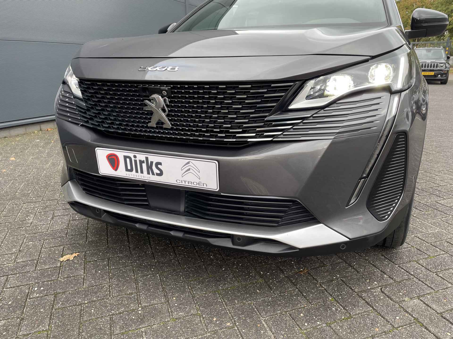 De Peugeot 3008 is ook voorzien van ADAS. Deze Advanced Driver Assistence Systems fungeren als extra ogen en oren: ze houden voor u de weg in de gaten en grijpen in wanneer dat nodig is. Tijdens de rit hebt u altijd een bijrijder, want de verkeersbord-detectie leest de borden langs de weg en projecteert ze voor u op het instrumentarium. Ongemerkt buiten de rijstrook raken? Nee hoor, het Lane-keeping systeem waarschuwt en corrigeert. Onbedoeld bumperkleven is er niet bij, dankzij de forward collision warning. Die waarschuwt direct als een botsrisico met uw voorligger dreigt. De auto is ook uitgerust met dodehoekdetectie, nachtzichtassistentie, hill hold functie, brake assist, vermoeidheidsherkenning en bandenspanningcontrolesysteem.