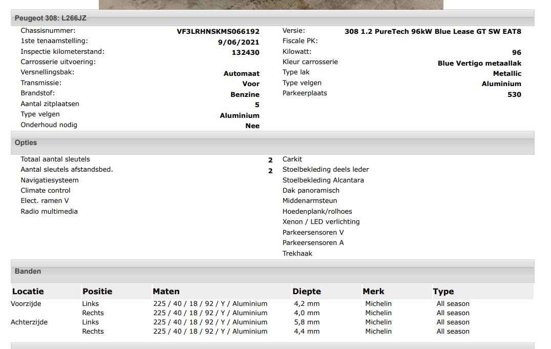 Het kan echter voorkomen dat uit de automatische voertuiginformatie een optie of accessoire naar voren komt die helaas toch niet op de auto aanwezig is.