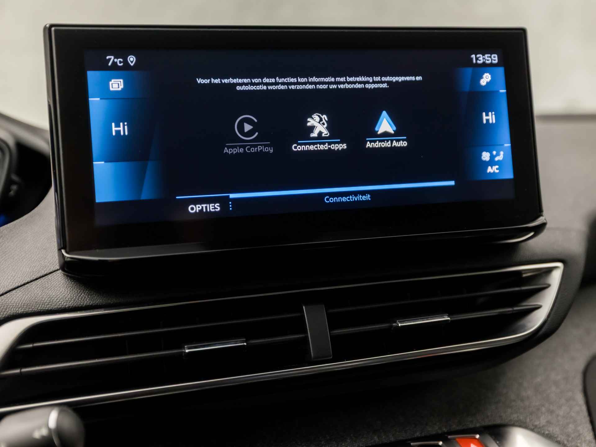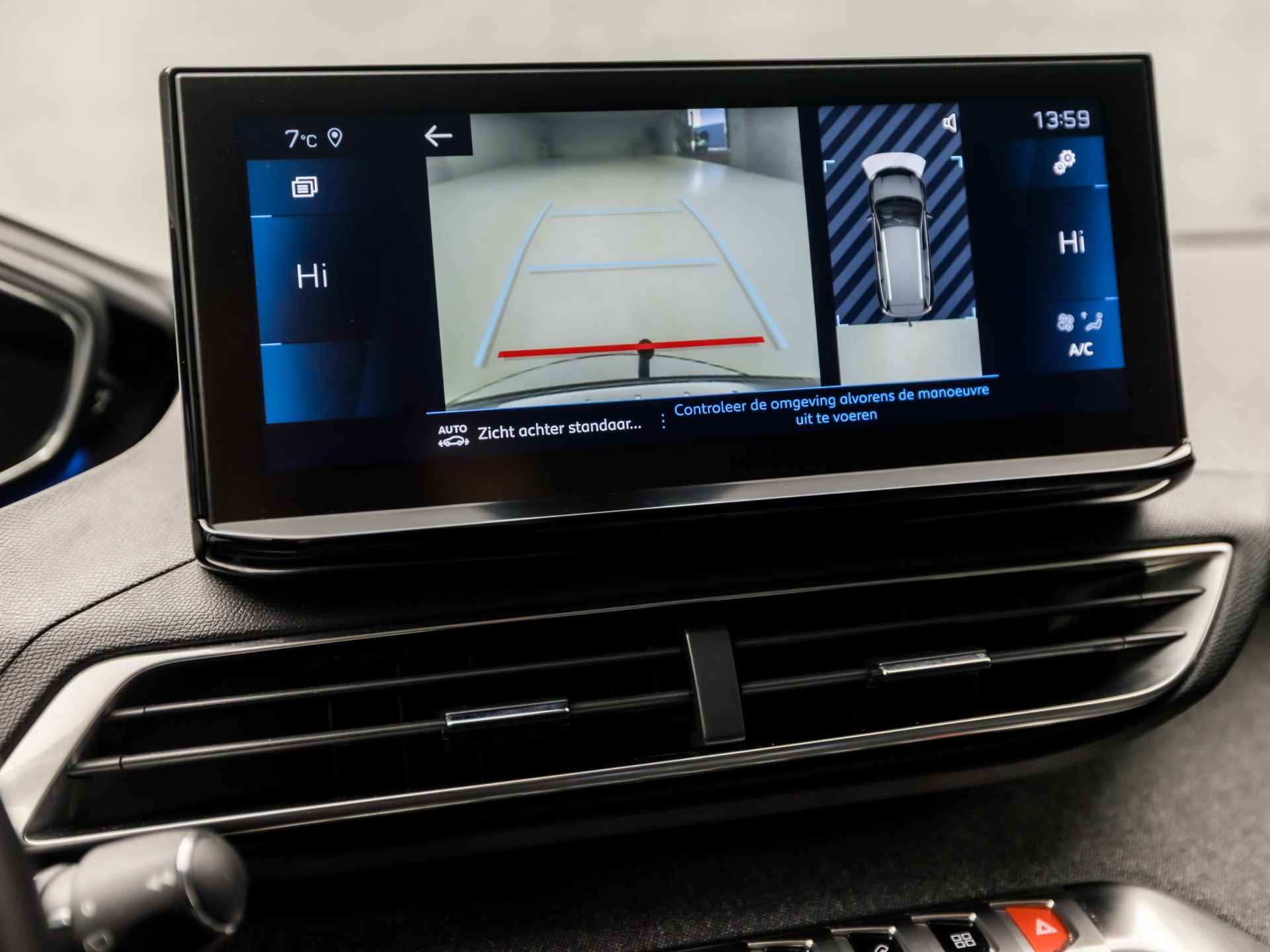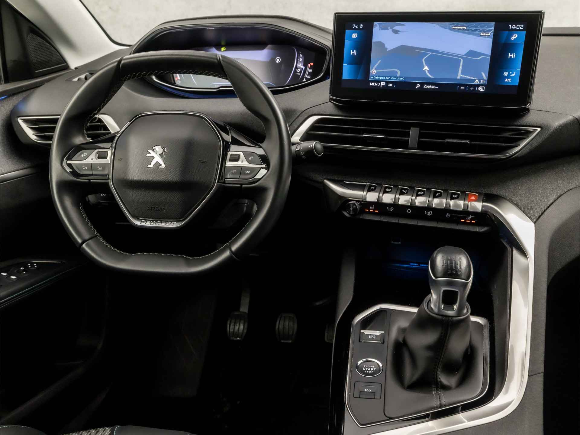 De vier camera's genereren samen een 360 graden beeld rond de auto, zodat u een volledig overzicht hebt van wat er rondom uw auto gebeurt. Deze Peugeot 5008 is voorzien van remote services. Via uw smartphone bedient u diverse functies ook op afstand en krijgt u informatie over de status van uw auto. Zuinig, veilig en ontspannen op pad: dat kan dankzij het aanwezige navigatiesysteem. Nooit meer te warm of te koud. De automatische airconditioning zorgt altijd voor de temperatuur die u kiest. Om de audiofuncties onderweg aan te passen, hoeft u alleen maar gebruik te maken van de audiobediening op het stuur. De uitrusting van deze auto is met draadloos opladen, regensensor, cruise control, automatisch dimmende binnenspiegel, lederen stuur en isofix-aansluiting behoorlijk compleet.