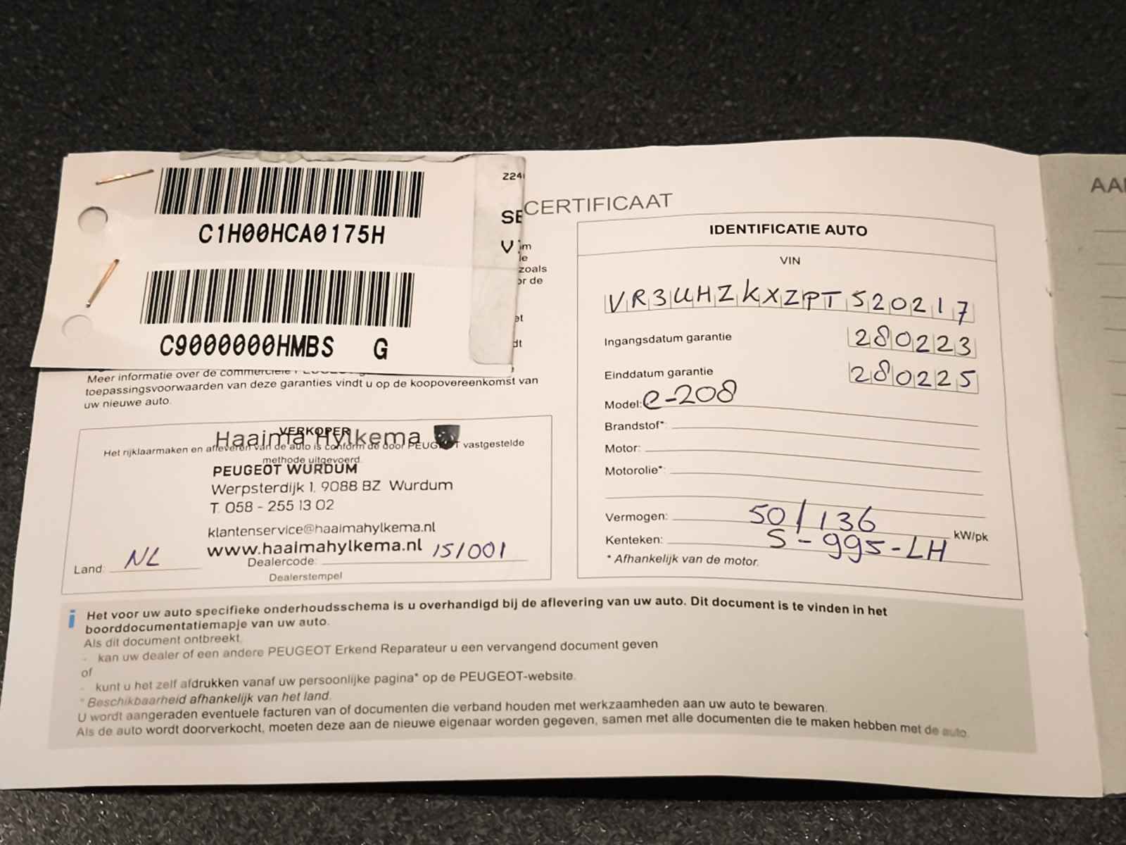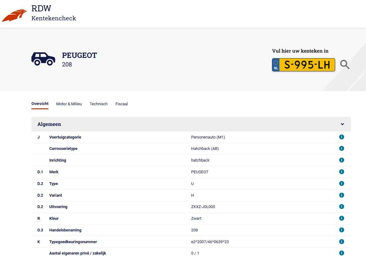 • Kenteken: