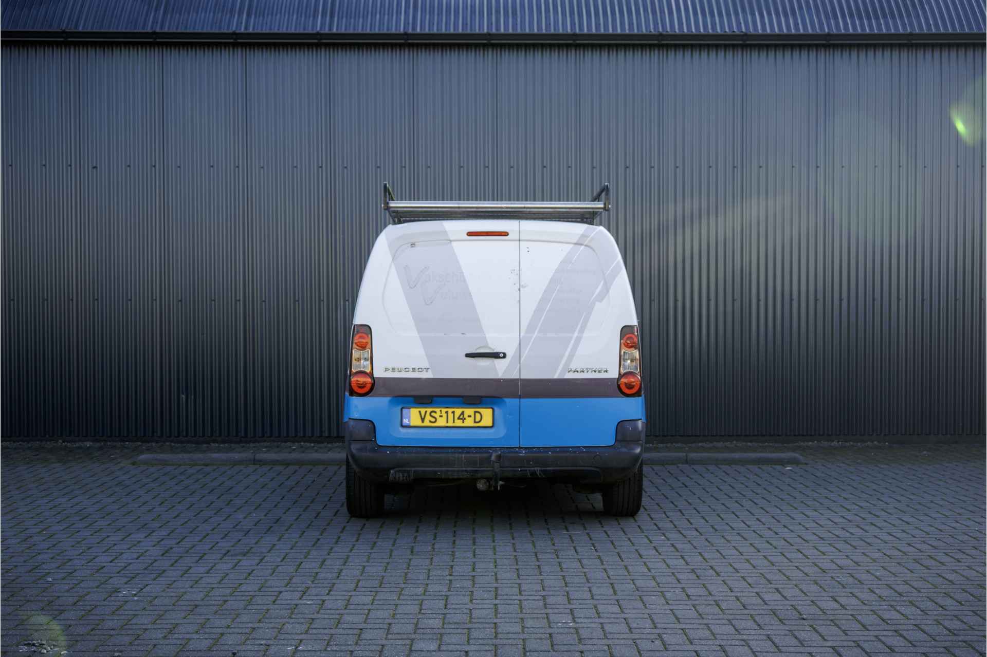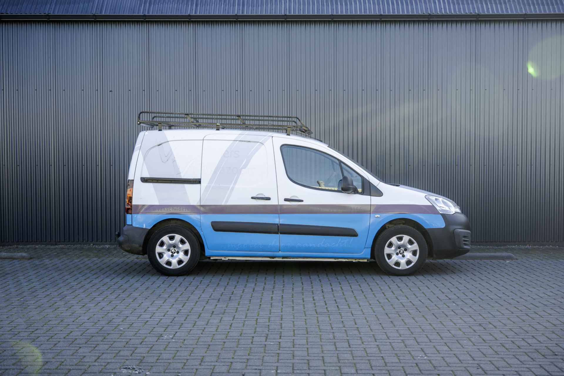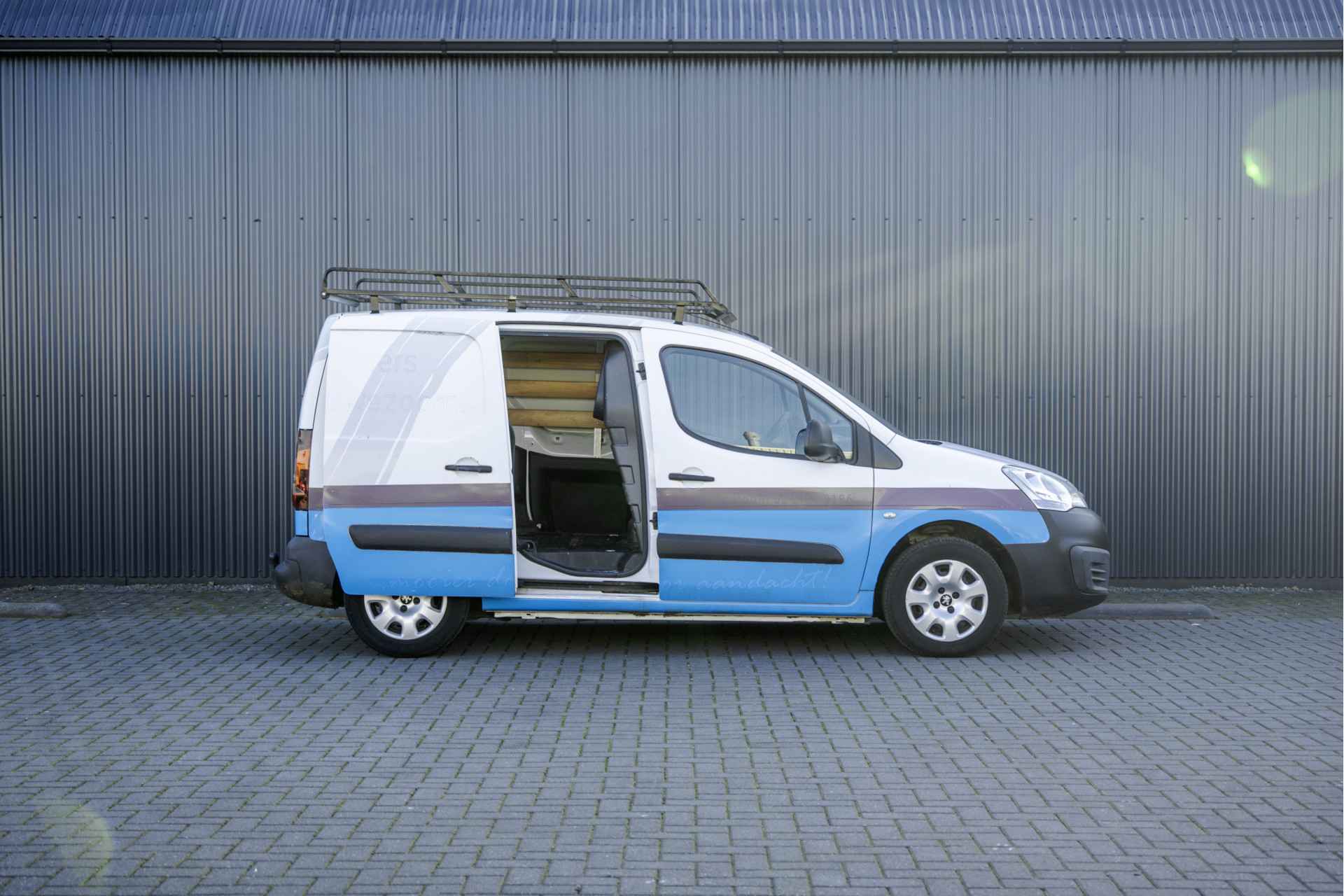 Deze Peugeot Partner is uitgevoerd met o.a. airco, schuifdeur en een trekhaak. De auto is voorheen van een schildersbedrijf geweest dat ook te zien is in de laadruimte.