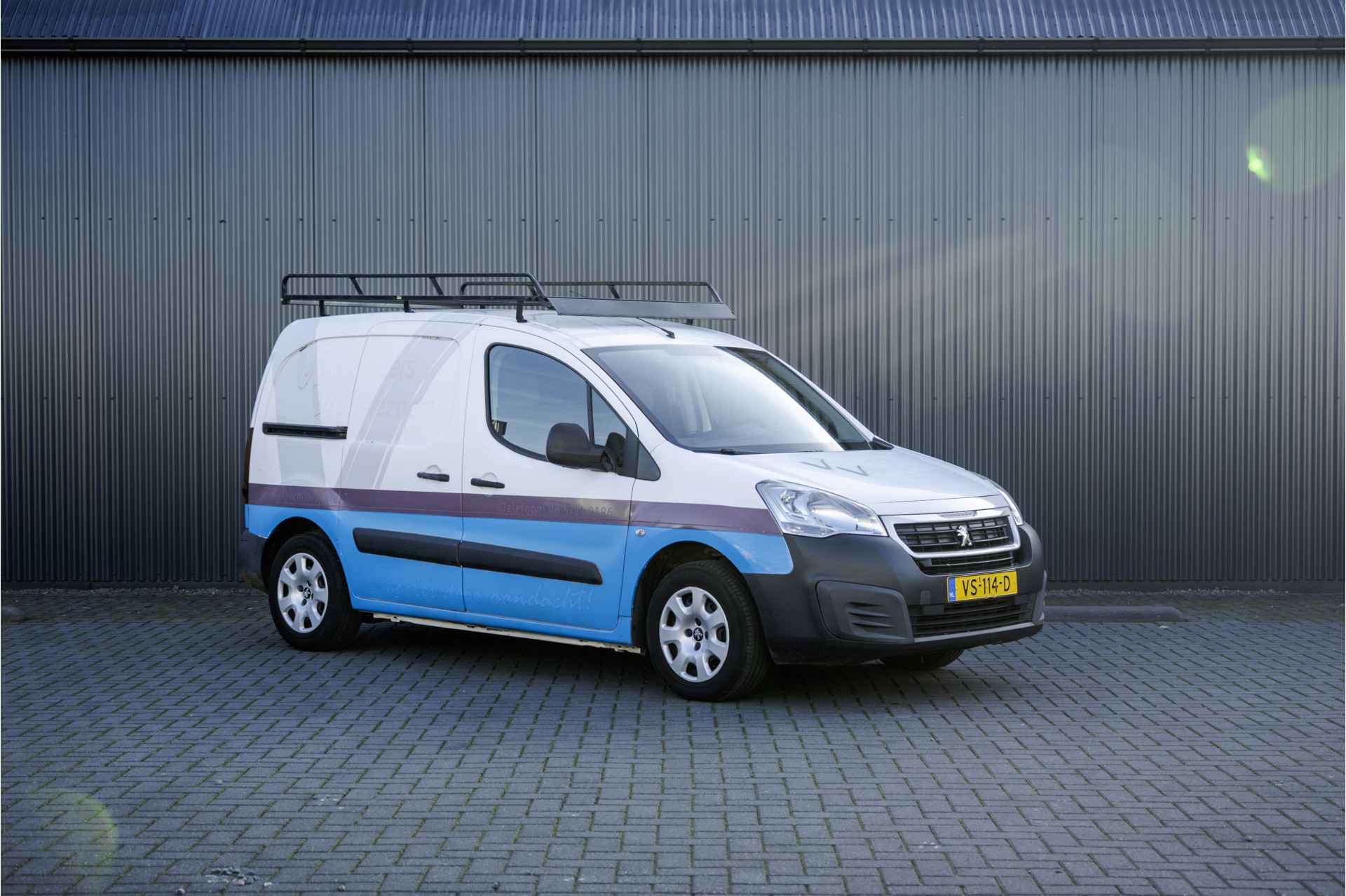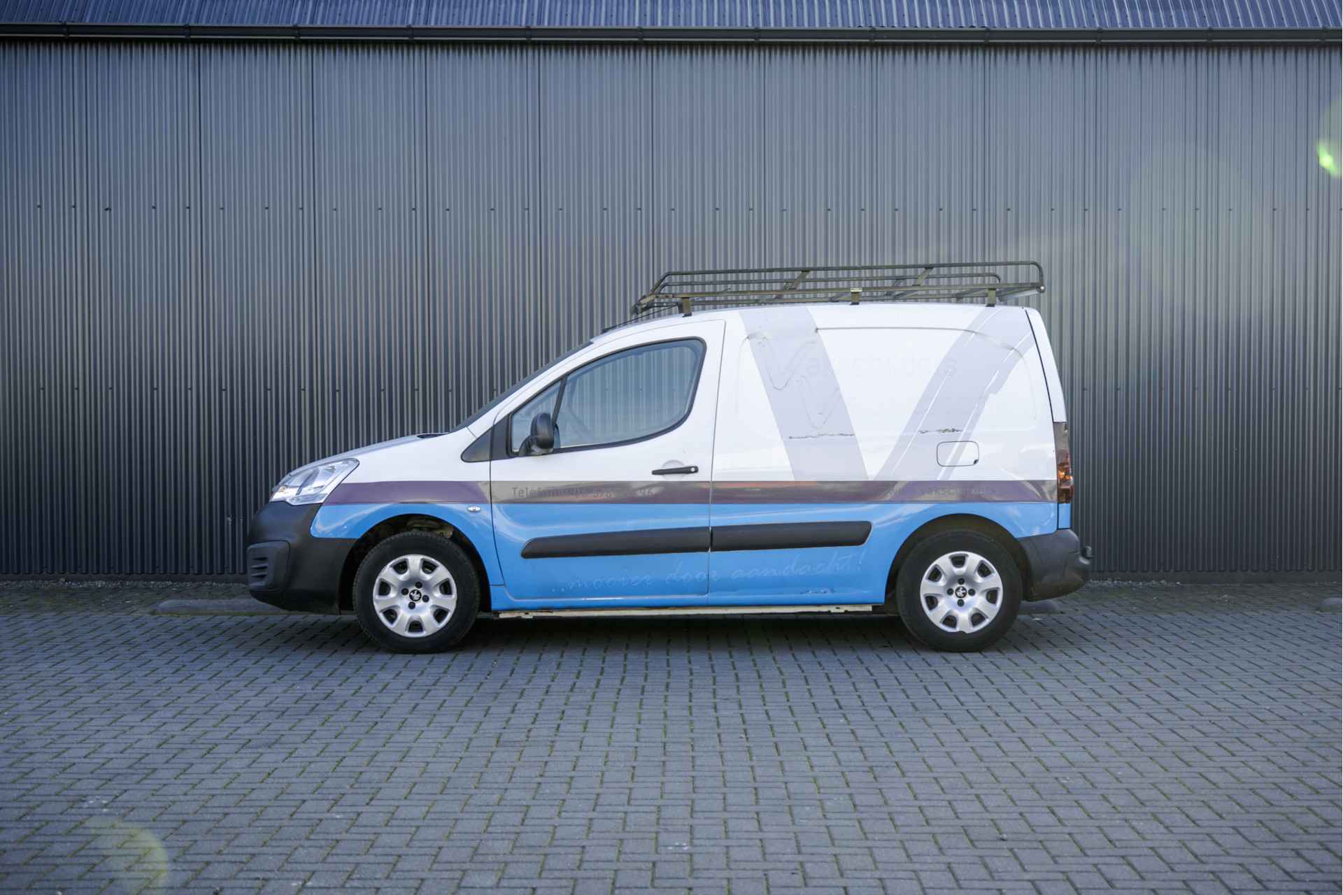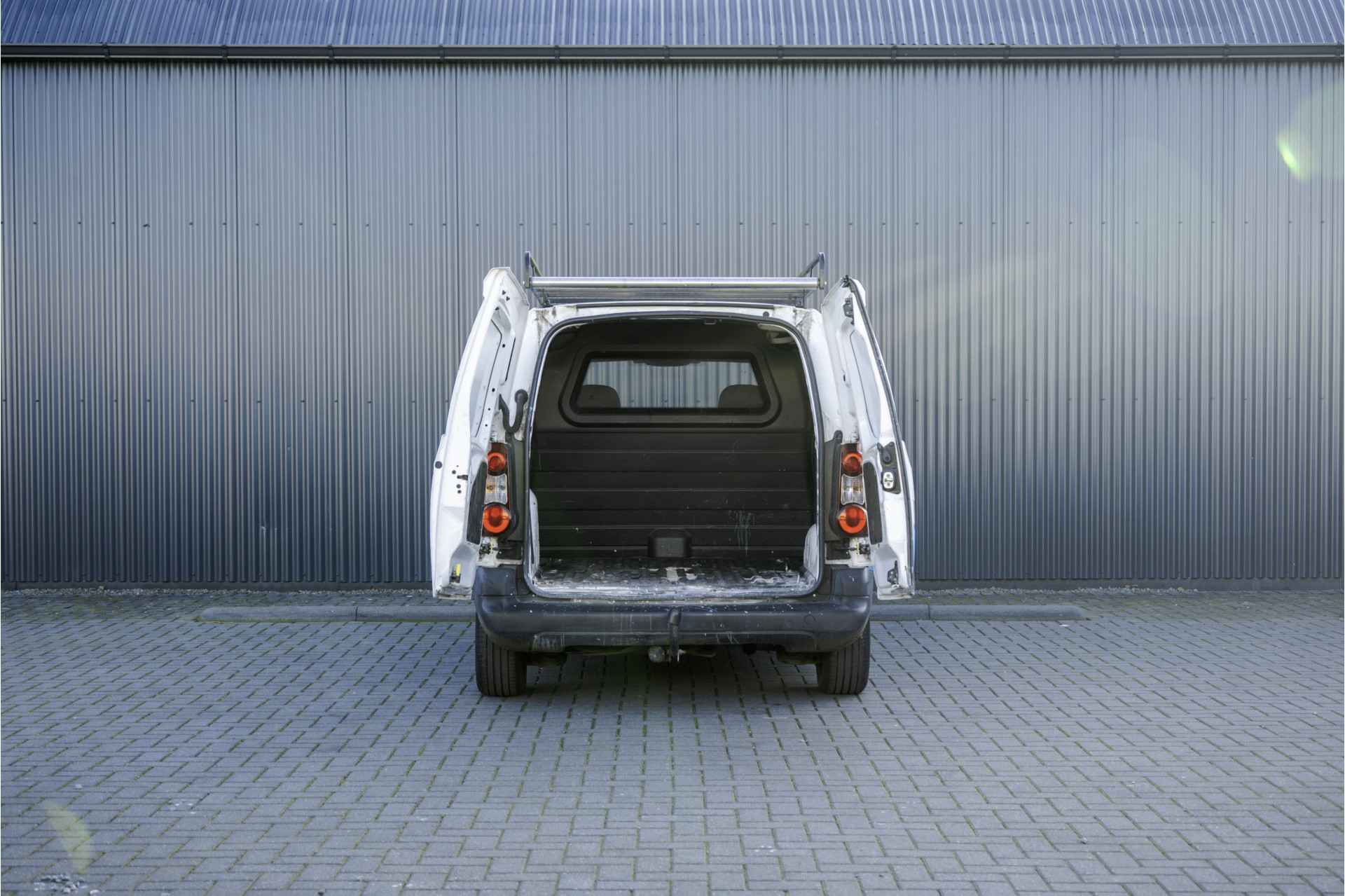 Deze Peugeot Partner is uitgevoerd met o.a. airco, schuifdeur en een trekhaak. De auto is voorheen van een schildersbedrijf geweest dat ook te zien is in de laadruimte.