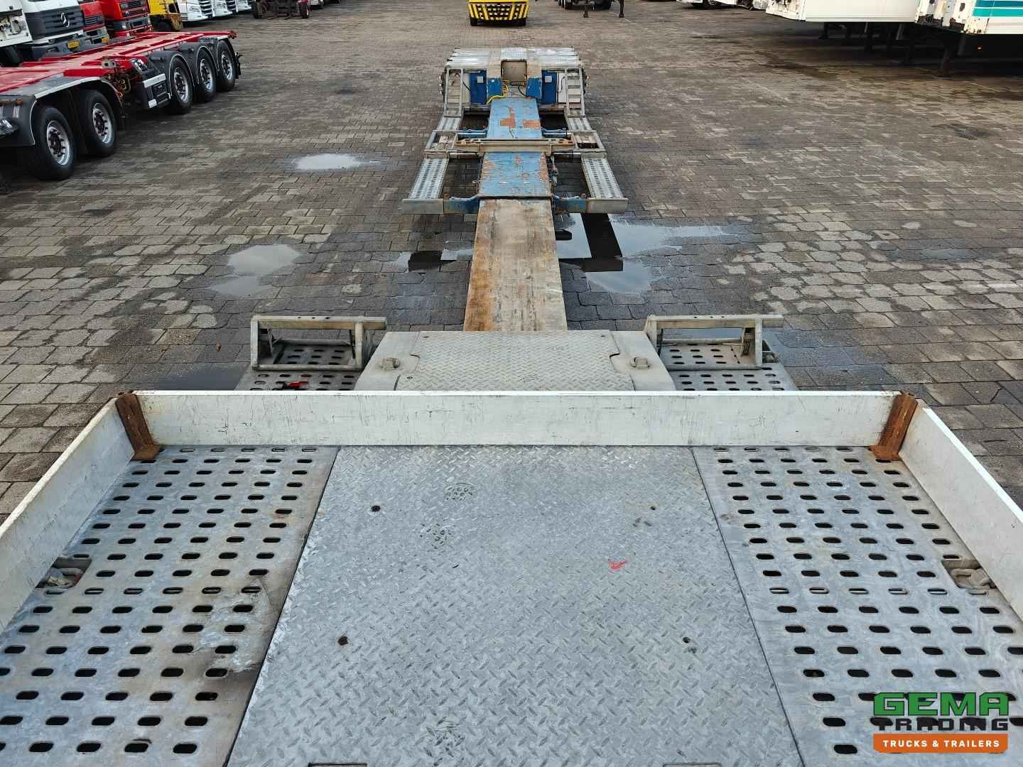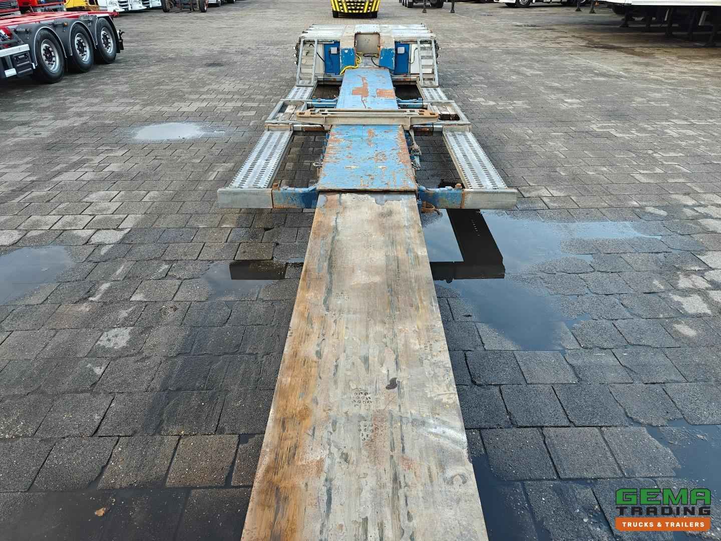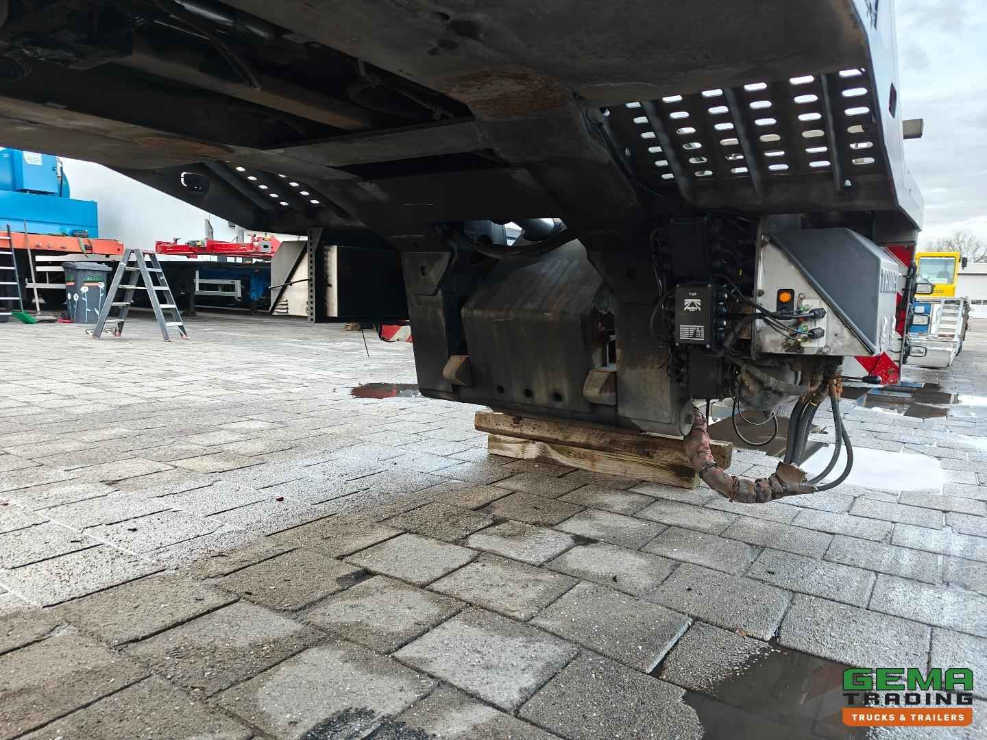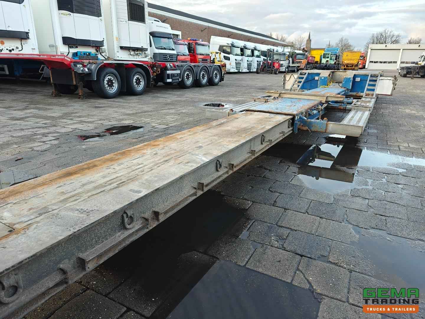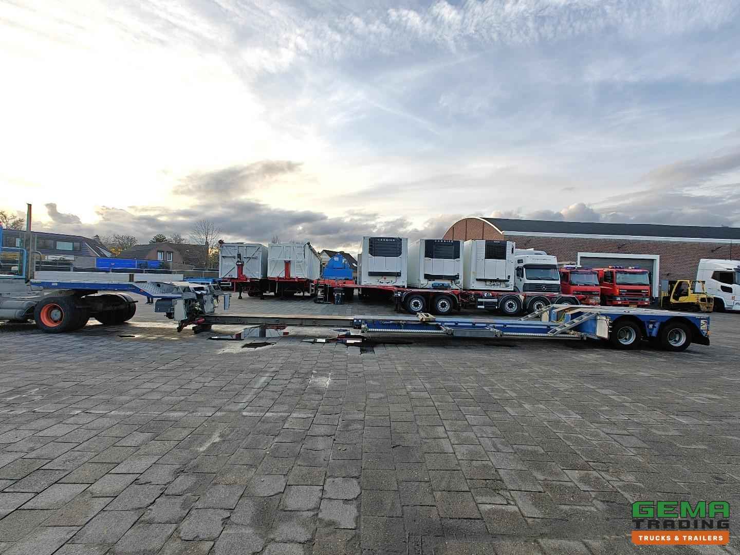 Opbouw Bouwjaar: 2016 W09S42251GGR27399 2 Assen Gigant 2 Assen hydraulisch gestuurd (Tridec) Draadloze Afstandsbediening Luchtvering Dubbellucht Trommelremmen Afm. Laagbed: 610cm lang Laag bed 480cm uitschuifbaar Lengte nek: 380cm Breedte nek: 249cm Laadvloer hoogte 55cm Totale lengte uitgeschoven: 1800cm Breedte : 255cm - 300cm Afneembare nek Eigen hydrauliek unit (NATO) Breedte borden Goten voor rijplaten Gereedschapskisten Roest vrij Nederlandse registratie