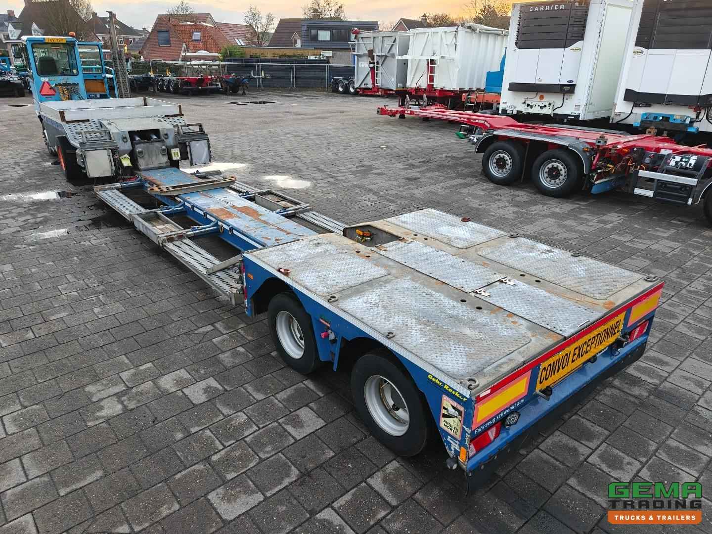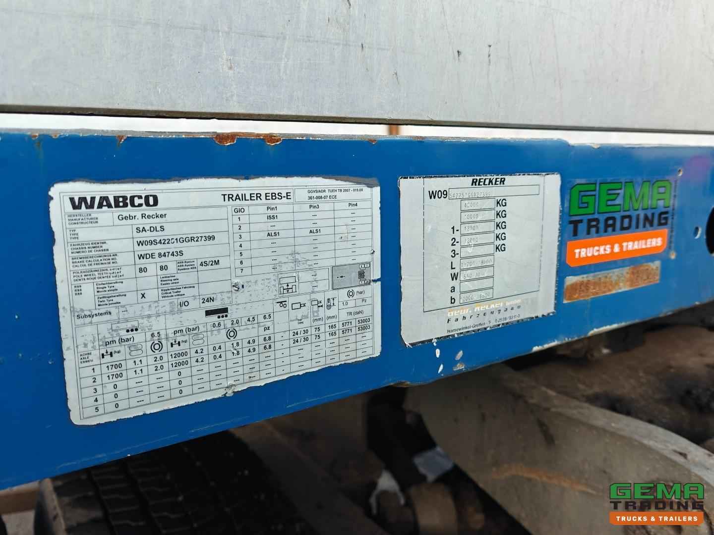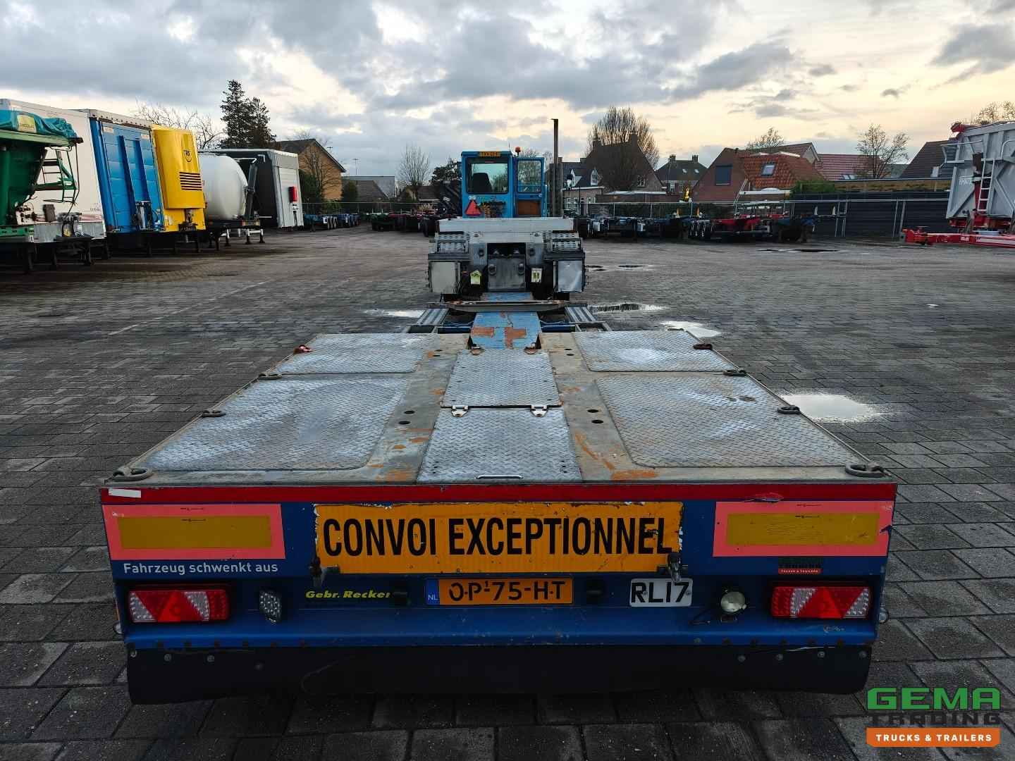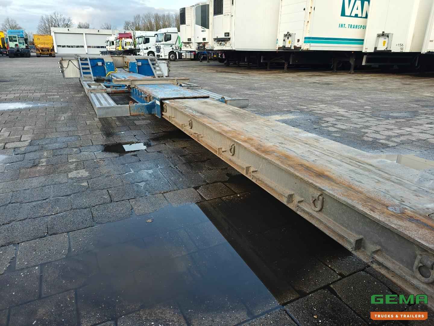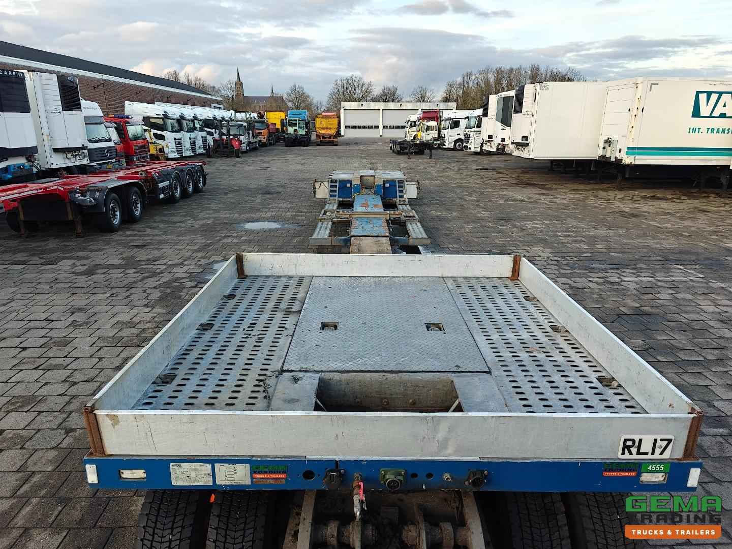 Opbouw Bouwjaar: 2016 W09S42251GGR27399 2 Assen Gigant 2 Assen hydraulisch gestuurd (Tridec) Draadloze Afstandsbediening Luchtvering Dubbellucht Trommelremmen Afm. Laagbed: 610cm lang Laag bed 480cm uitschuifbaar Lengte nek: 380cm Breedte nek: 249cm Laadvloer hoogte 55cm Totale lengte uitgeschoven: 1800cm Breedte : 255cm - 300cm Afneembare nek Eigen hydrauliek unit (NATO) Breedte borden Goten voor rijplaten Gereedschapskisten Roest vrij Nederlandse registratie