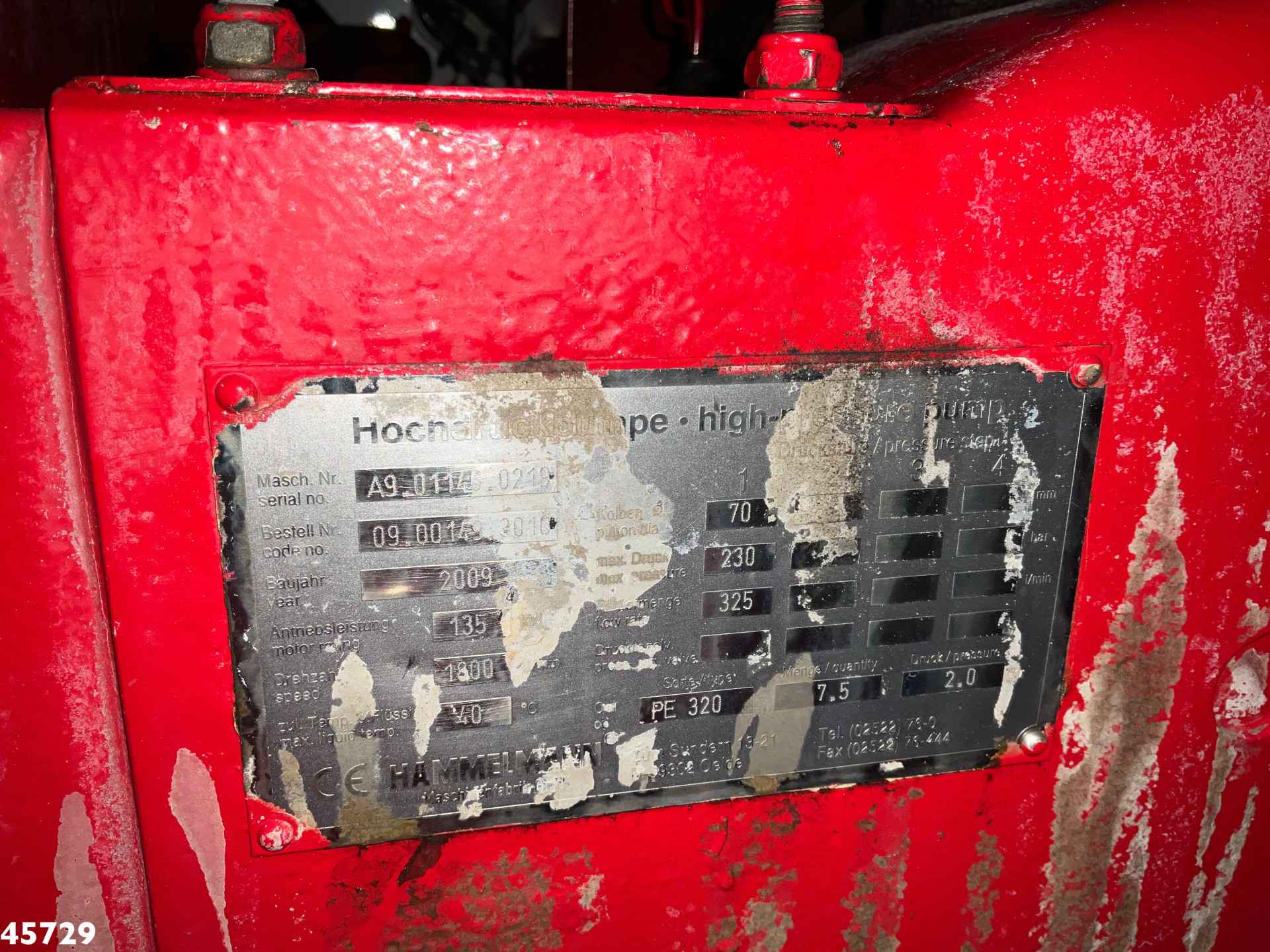 - Hammelmann hogedrukpomp (type: A9.01145.0219)