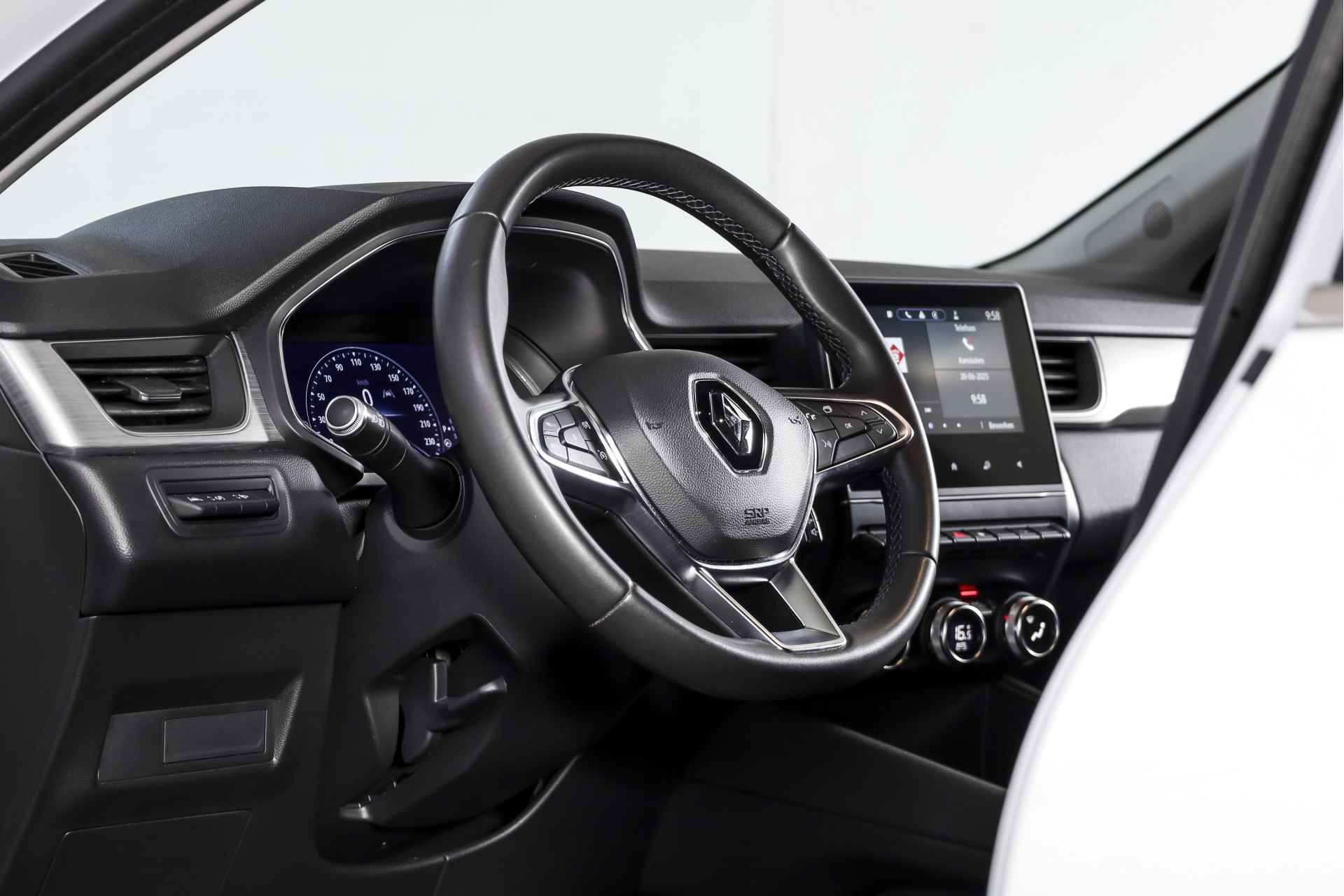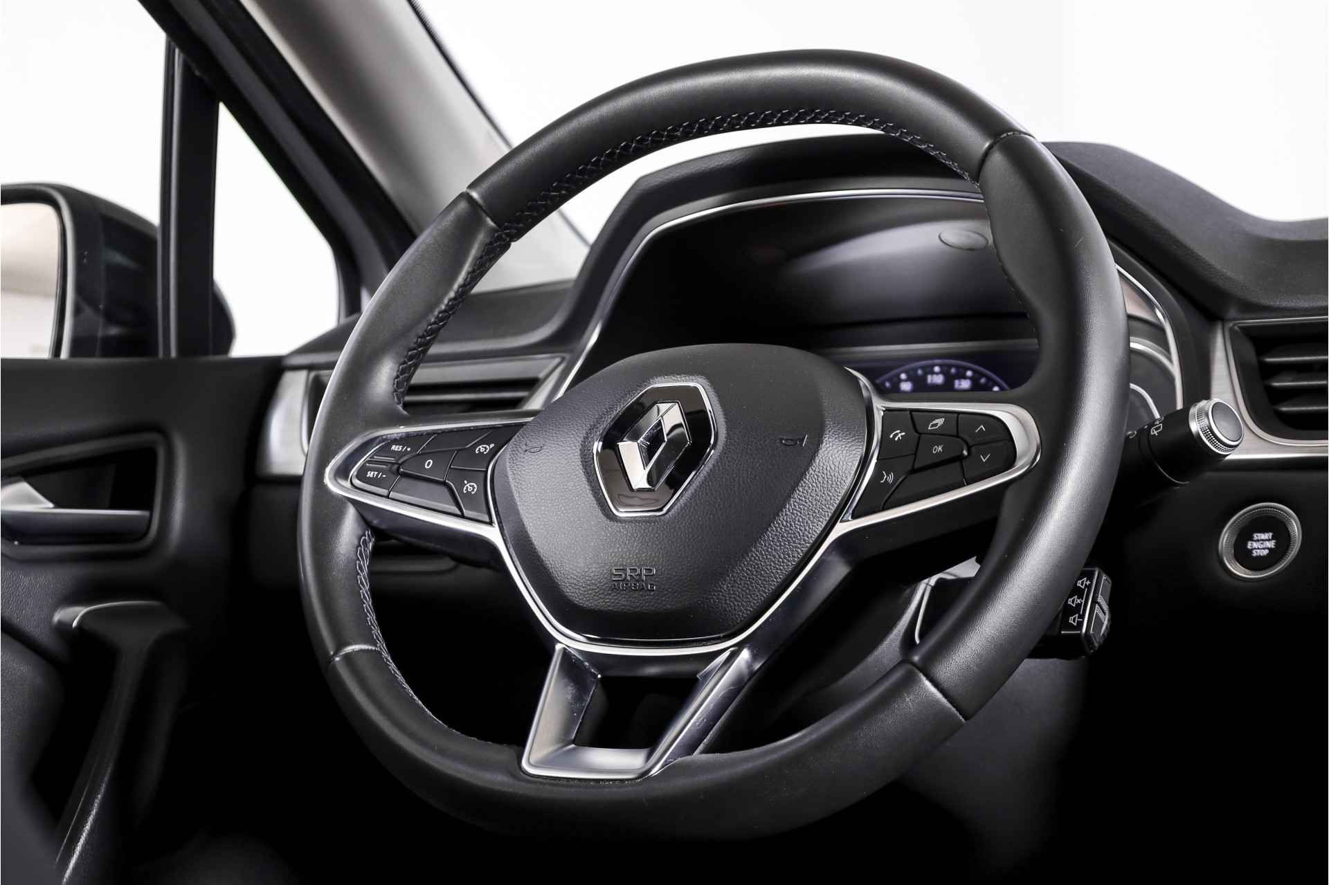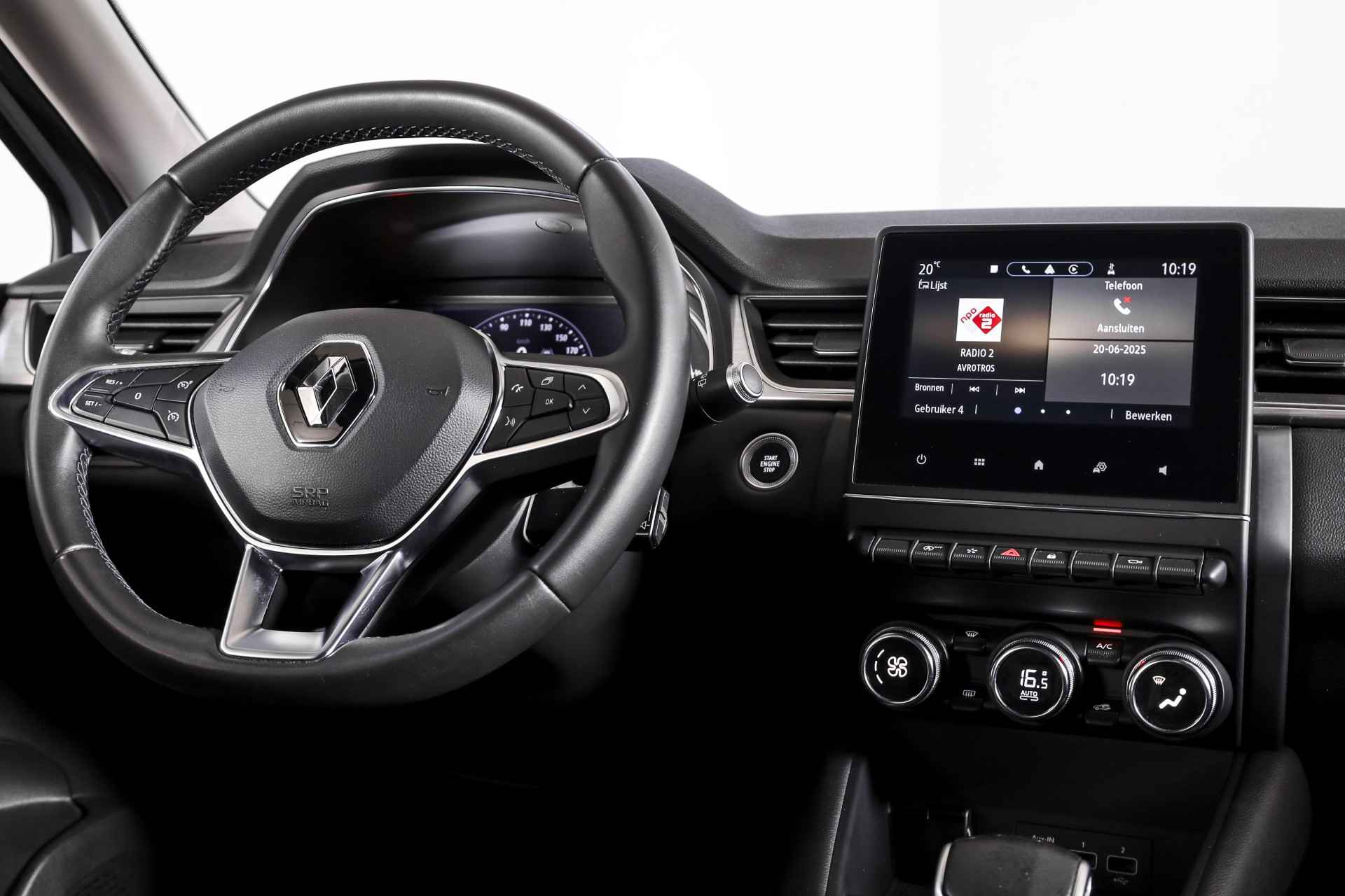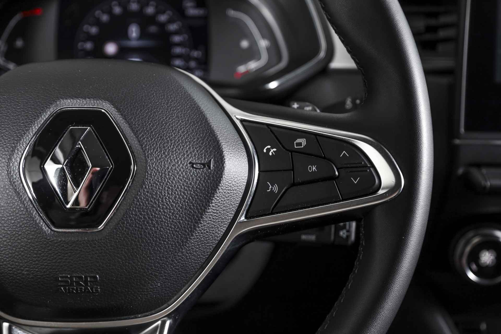 Met de 360 graden camera, verzorgd door vier camera's, wordt rijden in drukke steden of het navigeren in nauwe ruimtes een koud kunstje. Veilig en comfortabel rijden wordt nog eens versterkt door Connected Services, zodat u diverse vitale functies van de auto altijd kunt checken in de app. U kunt tijdens de rit uw ogen steeds op de weg houden, want het audiosysteem (met dab!) kunt u bedienen vanaf het stuur. Bij de luxe van deze auto hoort ook electronic climate control. Soms heeft u meer parkeerruimte dan u denkt. Maar soms ook niet. De parkeersensoren vertellen precies hoeveel. Ook is de Renault uitgerust met: regensensor, cruise control, keyless entry, automatisch dimmende binnenspiegel, lederen stuur en boordcomputer.