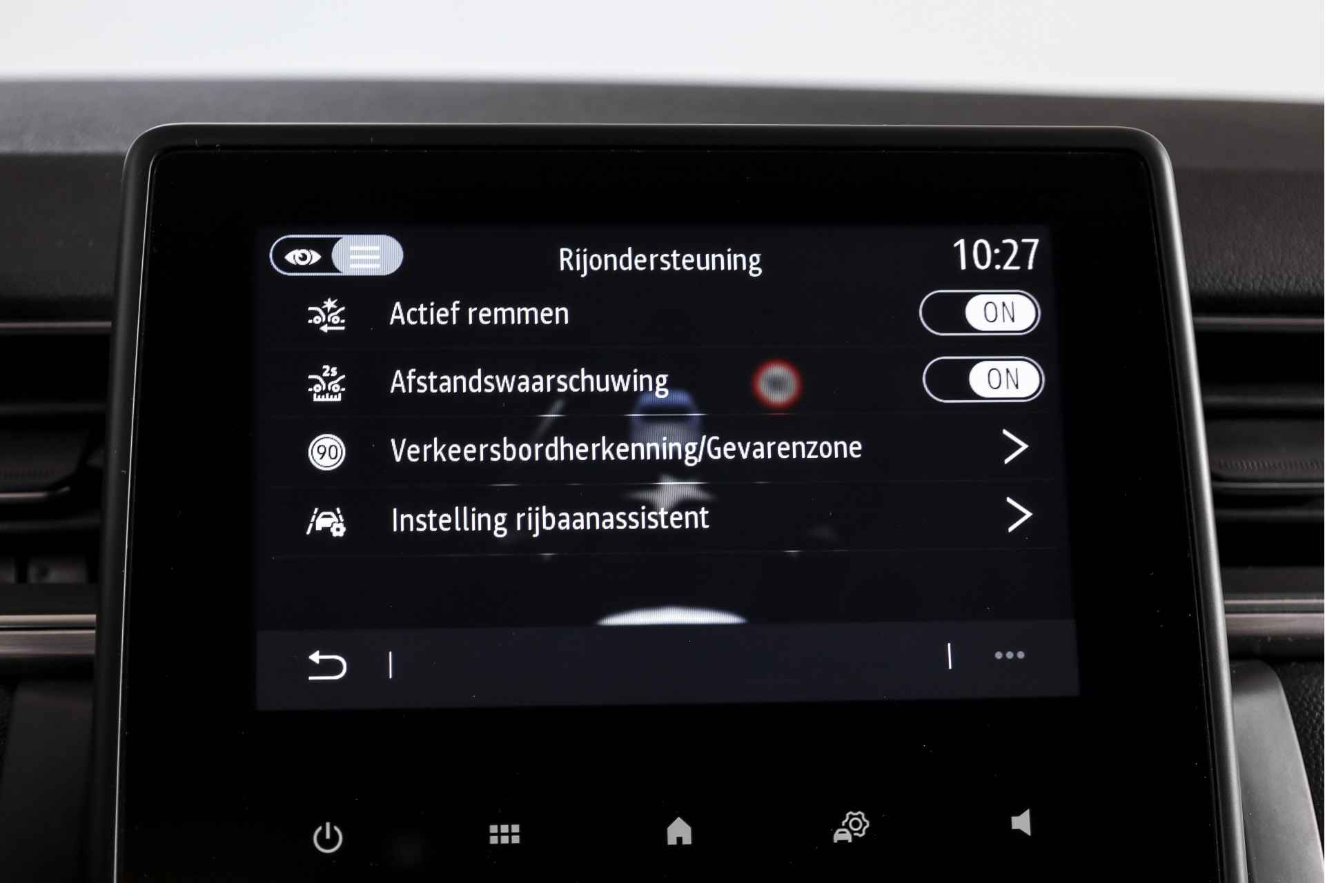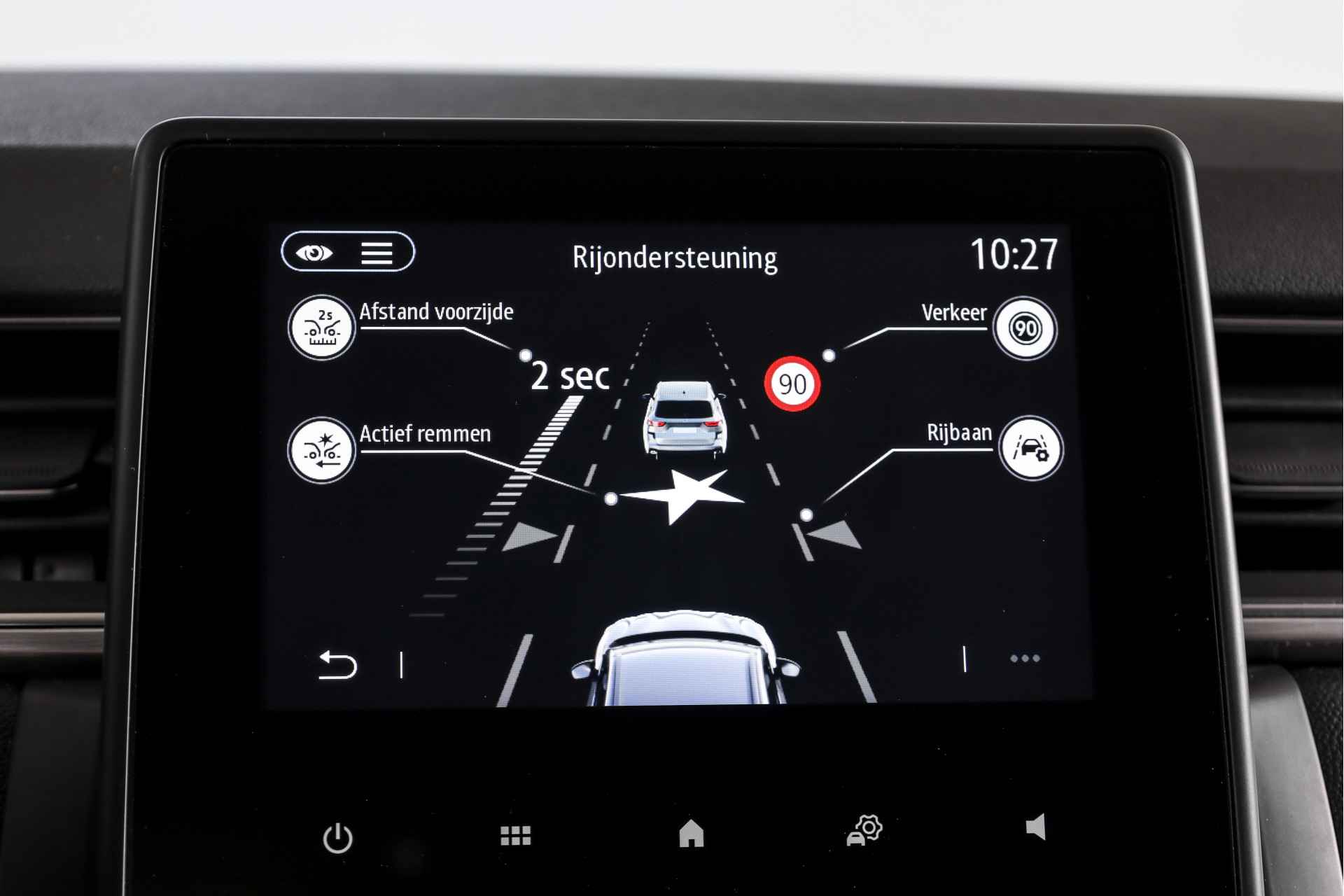 Met de nieuwste technologieën aan boord is deze Renault in staat om zelf te reageren op potentieel gevaarlijke situaties op de weg. De actuele snelheidslimiet, een inhaalverbod en andere verkeersborden; de verkeersborddetectie ondersteunt u tijdens elke rit. Onbedoeld buiten de rijstrook raken wordt voorkomen door het Lane-keeping systeem. De sensor van het forward collision warning-systeem registreert permanent de afstand tot voorliggers en grijpt in als een botsing dreigt. Ook helpen het hill hold functie, brake assist en bandenspanningcontrolesysteem, uw rit tot een veilige rit te maken.