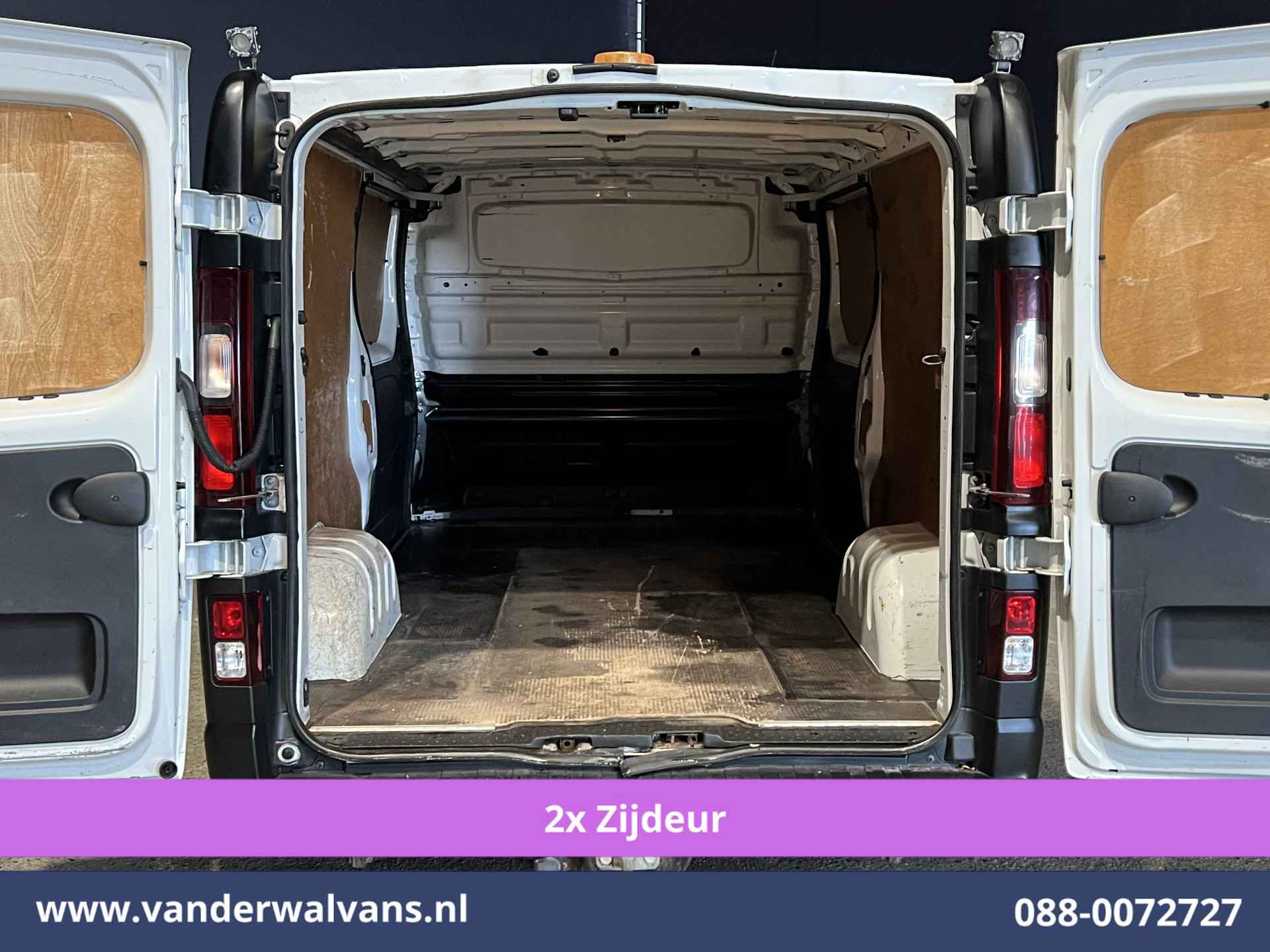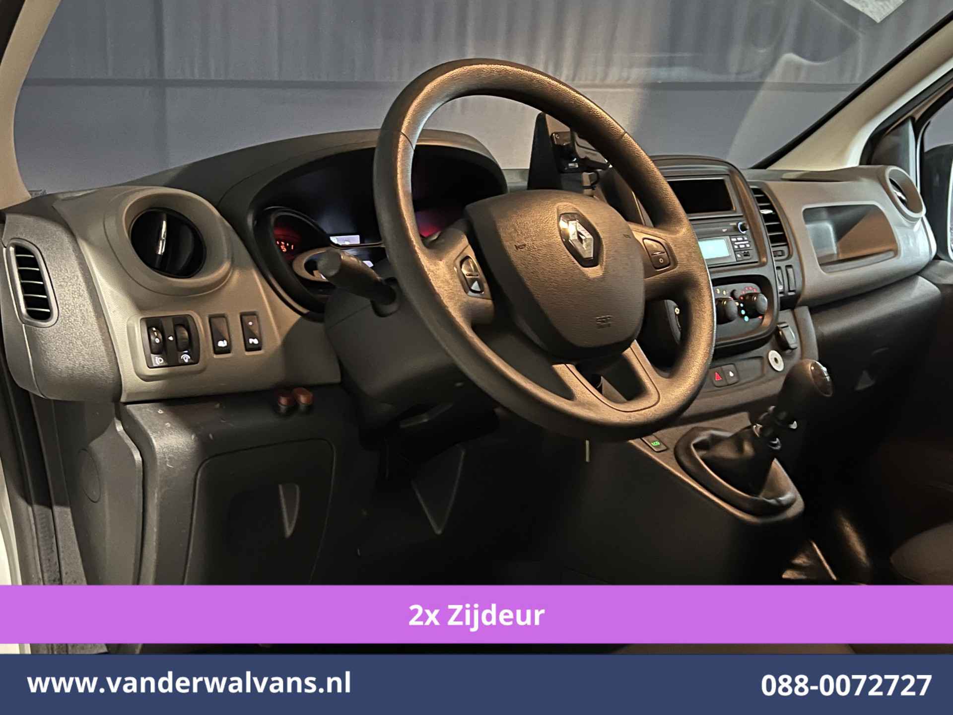 126pk sterke Trafic L2H1 Euro6 met airconditioning, dubbele schuifdeur en trekhaak. Geheel dealer onderhouden en tevens voorzien van cruisecontrol, parkeersensoren, camera, bijrijdersbank en bluetooth telefoonvoorbereiding.