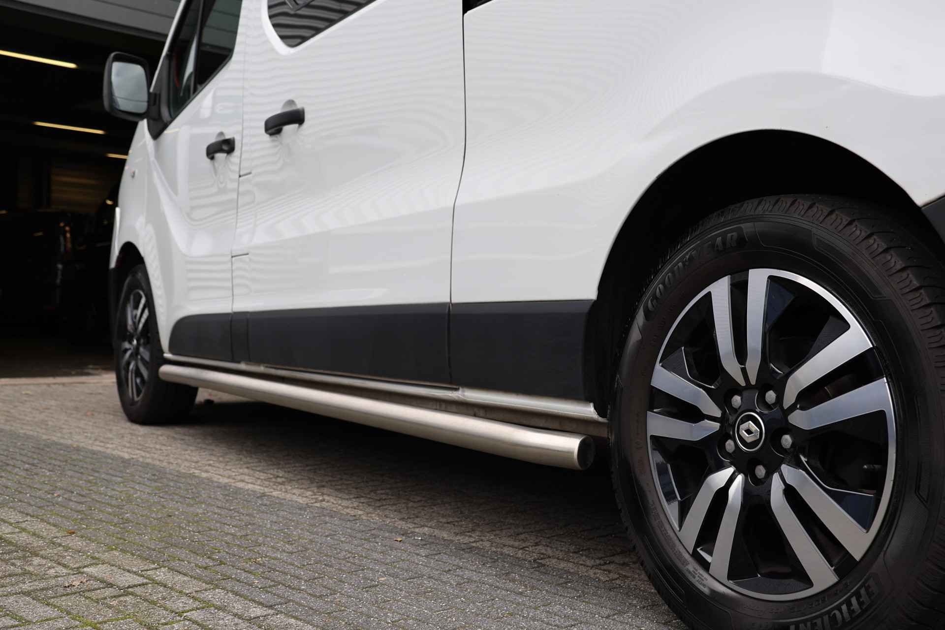 Omdat rijden een plezier mag zijn, staat deze Renault Trafic enthousiast te glimmen in de showroom. Technisch in topconditie, strak in de lak... echt een droomauto! De aandrijving komt voor rekening van een dieselmotor en een automatische transmissie. Aan alles is gedacht als het gaat om de combinatie gemak en veiligheid. Bijvoorbeeld het in- en uitstappen via de schuifdeur met z'n ruime opening. Tot de voorzieningen van deze auto behoren 17 inch lichtmetalen velgen, LED koplampen en verstelbare lendensteunen.