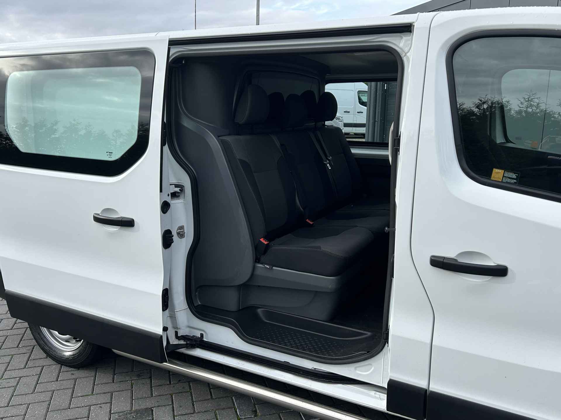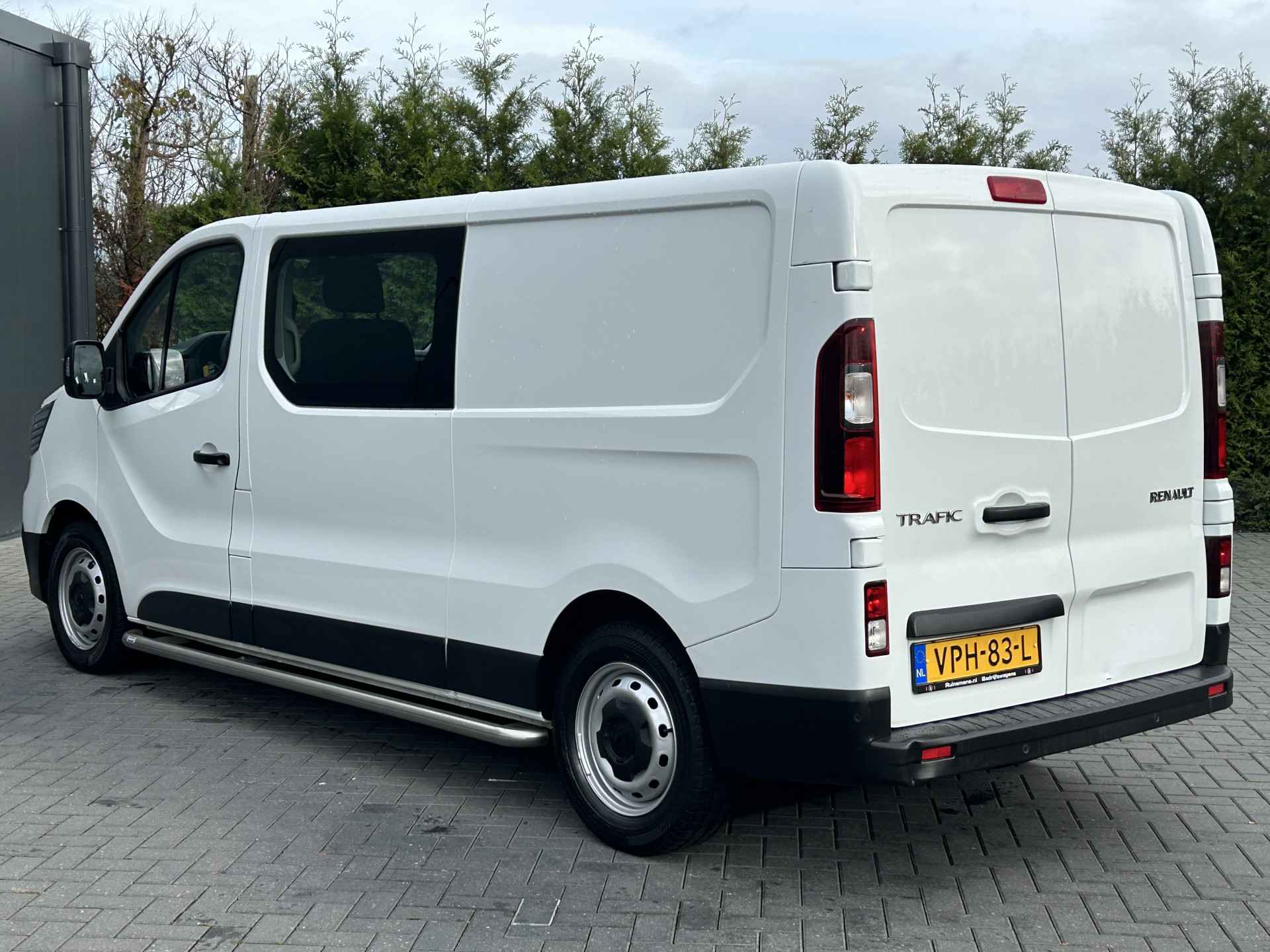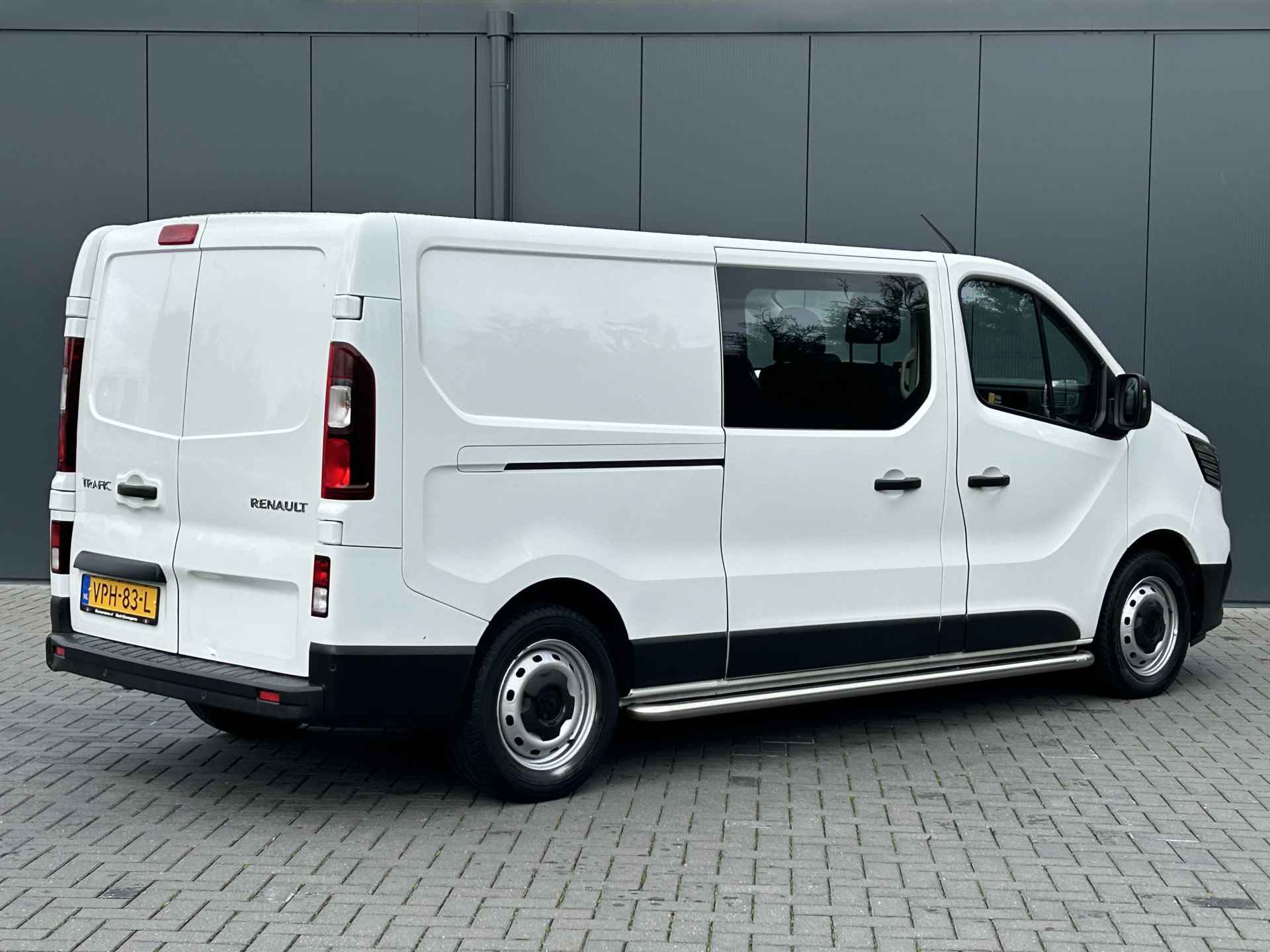 Renault Trafic 2.0 dCi 111 PK. L2H1 uitvoering met 6 persoons dubbele cabine, Airco, Cruise control, Navigatiesysteem, Bluetooth en Bijrijdersbank. Te koop bij Ruinemans bedrijfswagens Eesveen (Steenwijk)