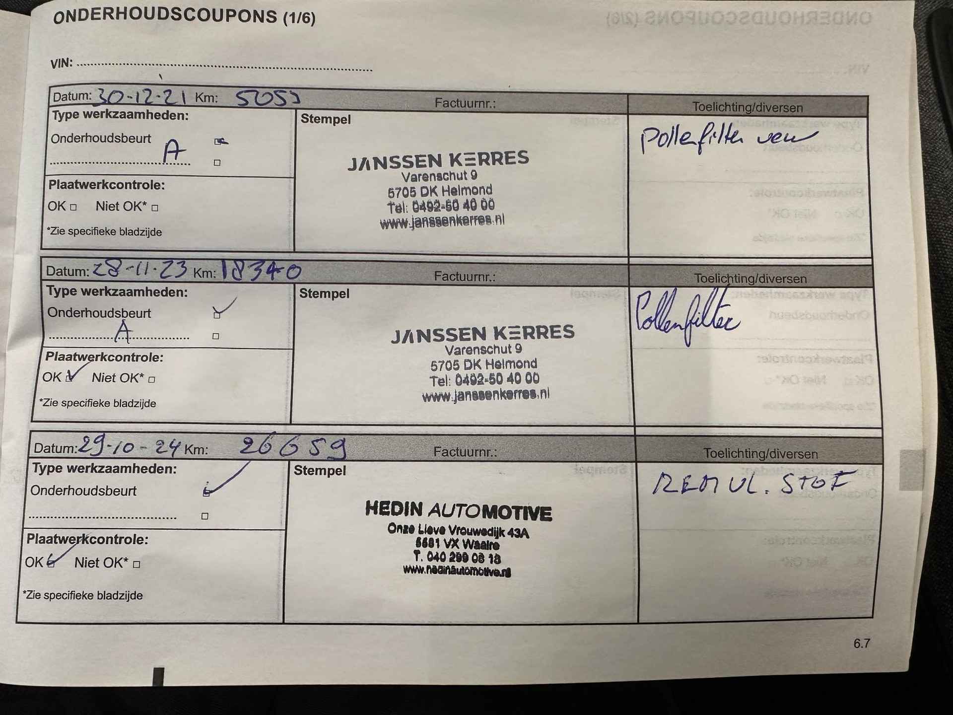 - Controleren vloeistofniveaus, indien nodig op niveau brengen - Kosten tenaamstelling - Vrijwaringsbewijs van de (mogelijke) inruilauto