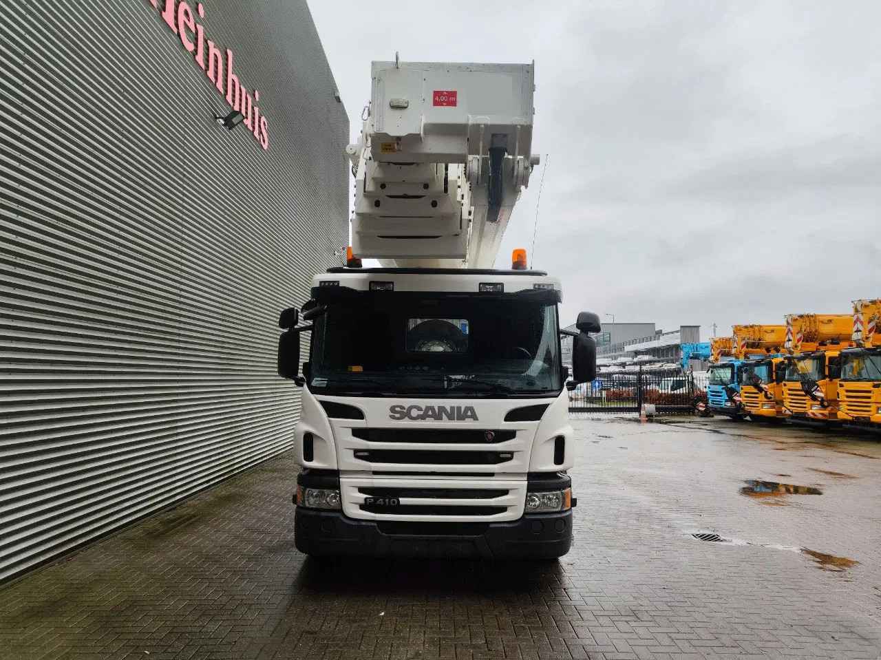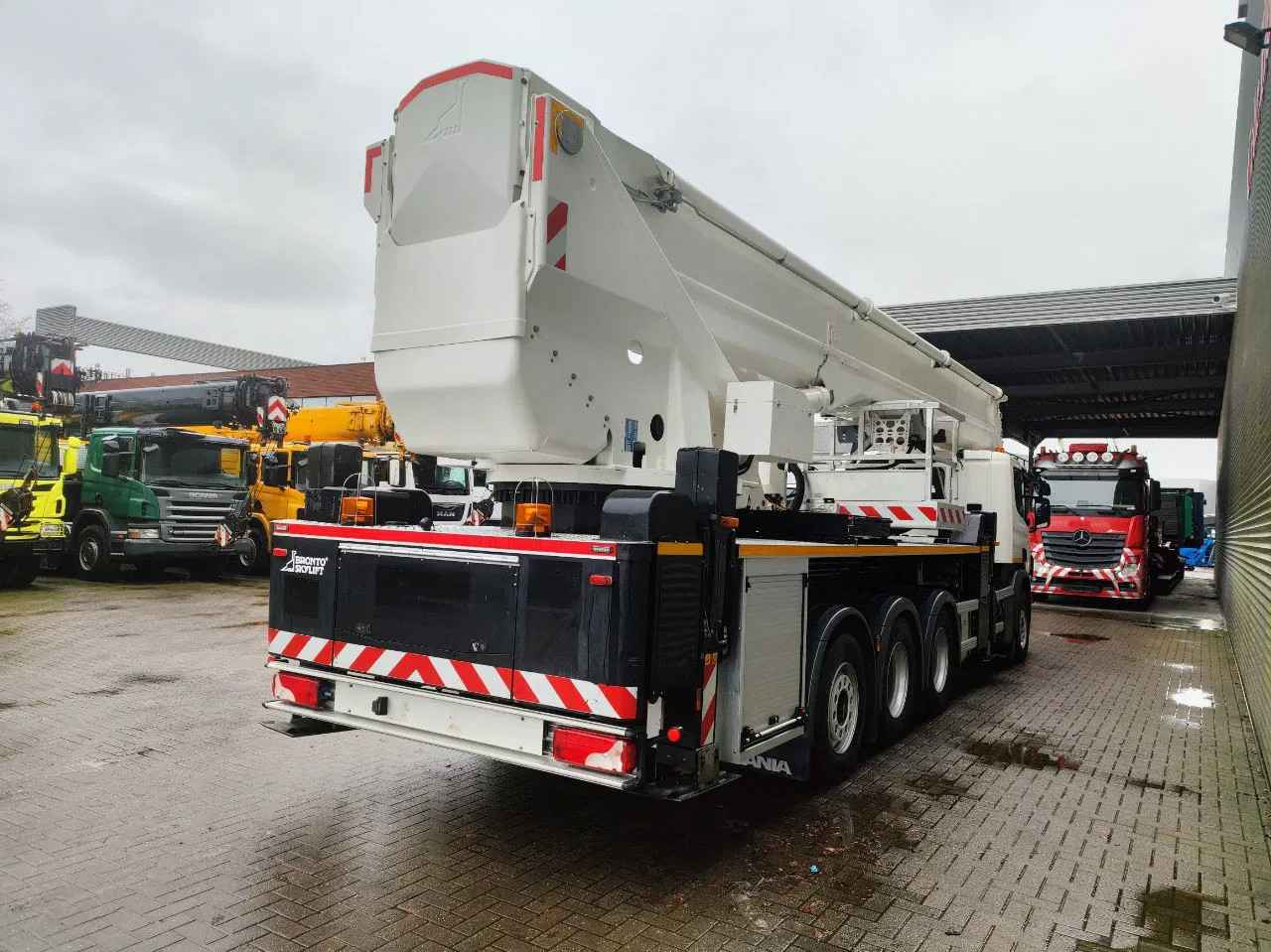 Scania P410 8x4 Tridem. Year: 2017. Milage: 81.014 km. Automatic. Max weight: 37.000 kg. Axle load: 1: 9000 kg. 2: 9900 kg. 3: 9900 kg. 4: 8200 kg. Cabin type: CP19L sleeper cabin 1 bed. Radio CD. Digital tacho. Airconditioning. Nightheater. Camera. 4th axle steering axle. Multifunctional steering wheel. Electrical operated windows and mirrors. Euro 6 Ad Blue. On the back airsuspension. Wheelbase: 1-2: 4200 mm. 1-3: 5550 mm. 1-4: 6900 mm. Tyres: 1: 385/55R22,5 70%. 2: 315/70R22,5 80%. 3: 315/70R22,5 70%. 4: 385/55R22,5 80%. Bronto Skylift S70XDT. Year: 2016. Hours: 3108. Hours RPM: 651. Max capacity basket: 700 kg / 8 persons + 60 kg. Max permitted tilt: 0.3 degree. Max lateral force: 400 N. Rotated basket. Electrical function and air in basket. 4 point outriggers. Radio Remote Control. Max working height: 70 meter. Max outreach: 36 meter. 2 Pieces! Topcondition! ID NR: 4. The General Terms and Conditions of Heinhuis are applicable to all adverts, offers and quotations by Heinhuis, all agreements entered into by Heinhuis and the negotiations preceding them. By any form of response you accept the applicability of the General Terms and Conditions of Heinhuis and you declare that you have taken note of these General Terms and Conditions. Our prices are export netto prices.